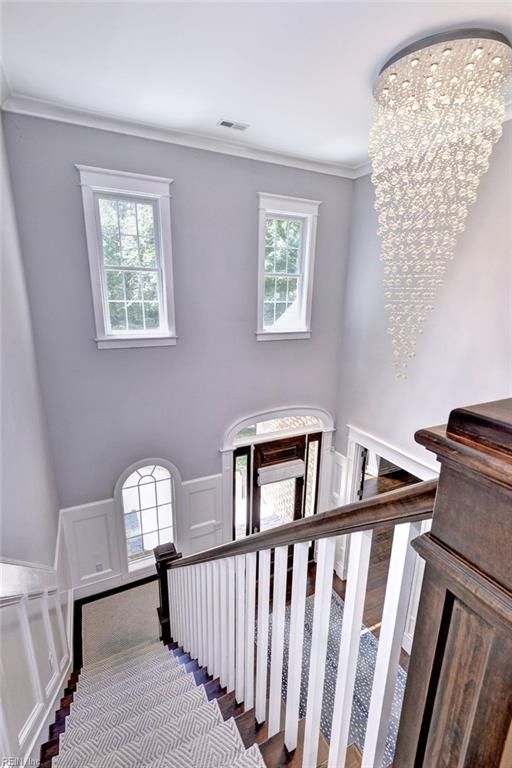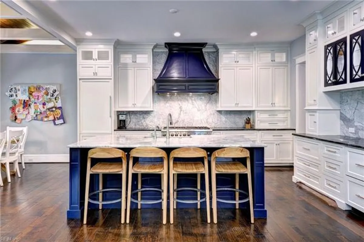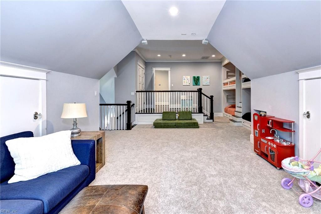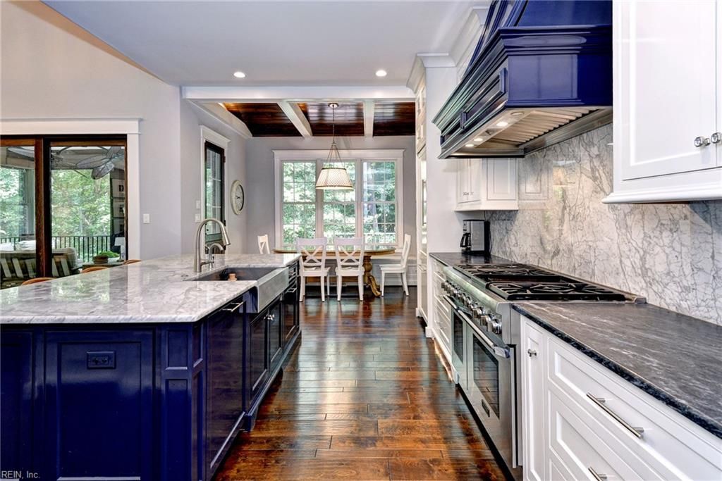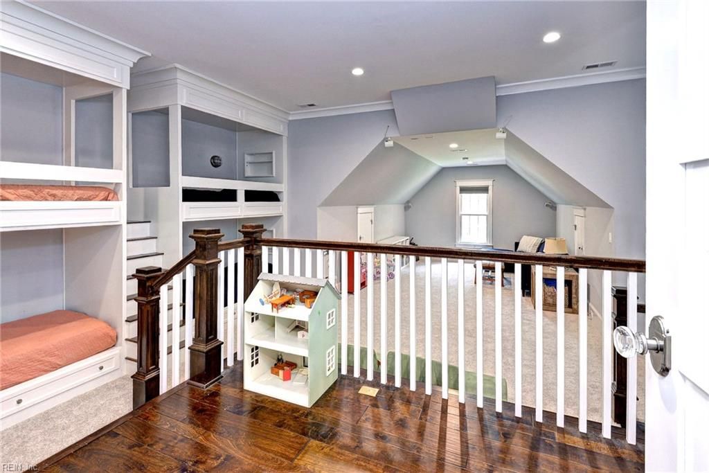 A remarkable property with a splendid interior, a private cul-de sac setting, and an unfinished basement awaits its new owner. The home features elegant 8-foot interior doors, intricate details, and gorgeous hardwood floors. The 1st floor office, featuring a cozy see-through fireplace to the dining room creates a welcoming environment for both work and relaxation. Straight ahead lies the superb great room and the amazing kitchen, with high-end luxury appliances, striking custom-painted cabinets, and elegant honed marble countertops, all complemented by a delightful casual dining space. Next, step into the three-season screened porch, where a wood-burning fireplace enhances the cozy retreat. The 1st floor primary suite offers a luxurious getaway, while the 2nd floor includes 3 en-suite bedrooms. Additional highlights include a bonus room that functions as a 5th bedroom with 4 built-in bunk beds, and a dedicated hobby/exercise room on the 3rd level. Located near golf, beach, and marina