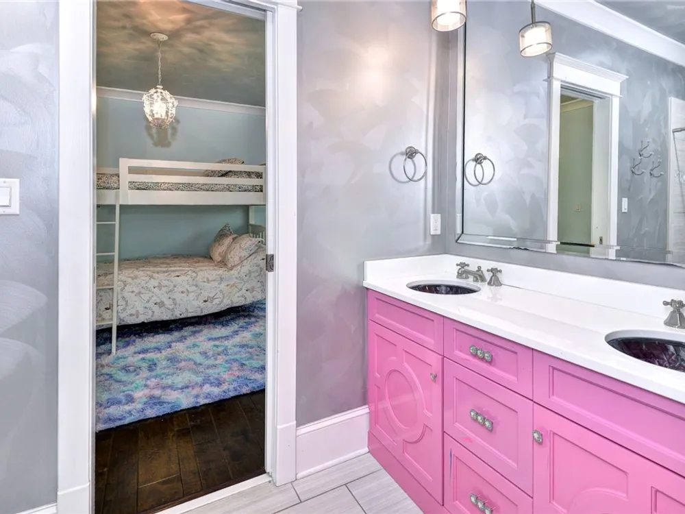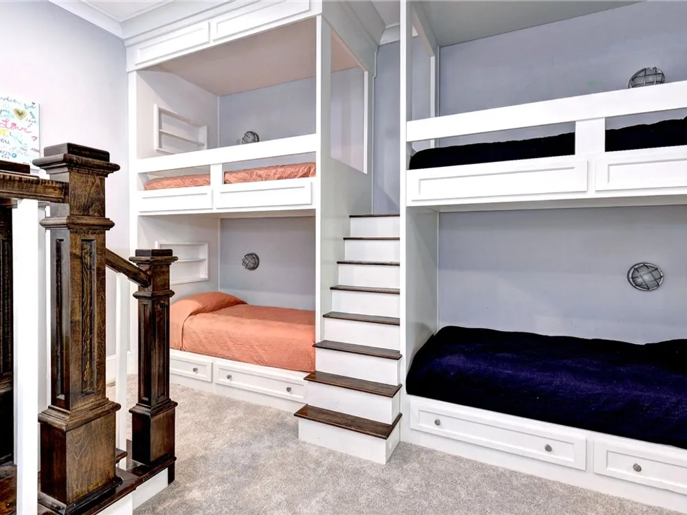 Exceptional design and craftsmanship meet prime location in this stunning property! A grand two-story foyer welcomes guests, showcasing exquisite millwork and an effortless open layout. Throughout the home, you’ll find 8-foot interior doors, intricate millwork, and beautiful hardwood floors. The 1st floor office, complete with a see-through fireplace shared with the dining room, creates an inviting atmosphere. Additionally, a 2nd wood-burning fireplace adds charm to the picturesque three-season room. The kitchen is a true masterpiece, featuring top-of-the-line luxury appliances, eye-catching custom-painted cabinets, honed marble countertops, and a cozy casual dining area. The impressive 1st floor primary suite is designed for comfort, complemented by three additional en-suite bedrooms on the second floor. Additional highlights include a spacious bonus room/ bedroom #5 with four built-in bunk beds, a 3rd level hobby/exercise room, and an expansive unfinished lower level, with rough in plumbing for a bath. Conveniently located near the golf course, beach, and the marina, this home offers an unmatched lifestyle experience.