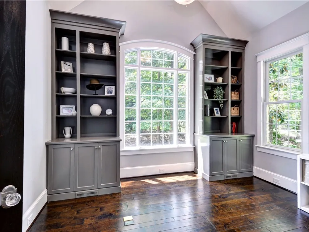 - Attic Access, Beamed Ceilings, Bookcases, Built-in Features, Butler Pantry, Bay Window, Tray Ceiling(s), Ceiling Fan(s), Separate/Formal Dining Room, Double Vanity, Eat-in Kitchen, French Door(s)/Atrium Door(s), Granite Counters, High Ceilings, Kitchen Island, Pantry, Recessed Lighting, Solid Surface Counters, Walk-In Closet(s), Central Vacuum