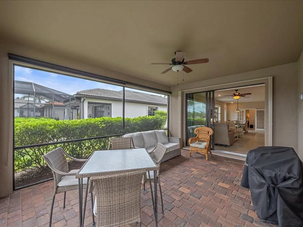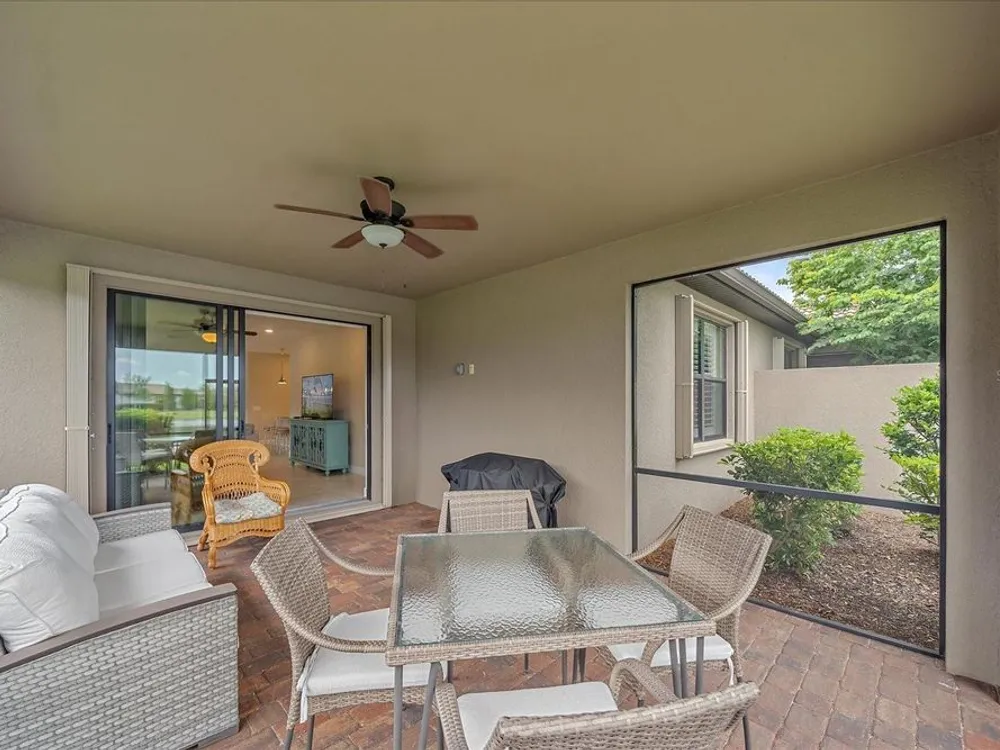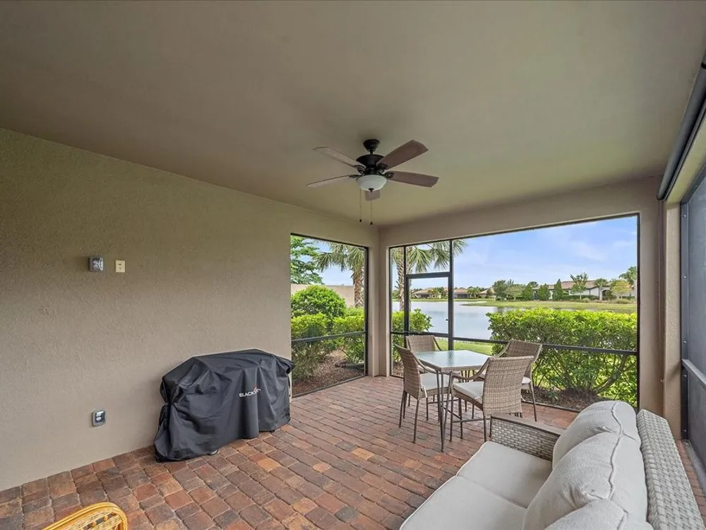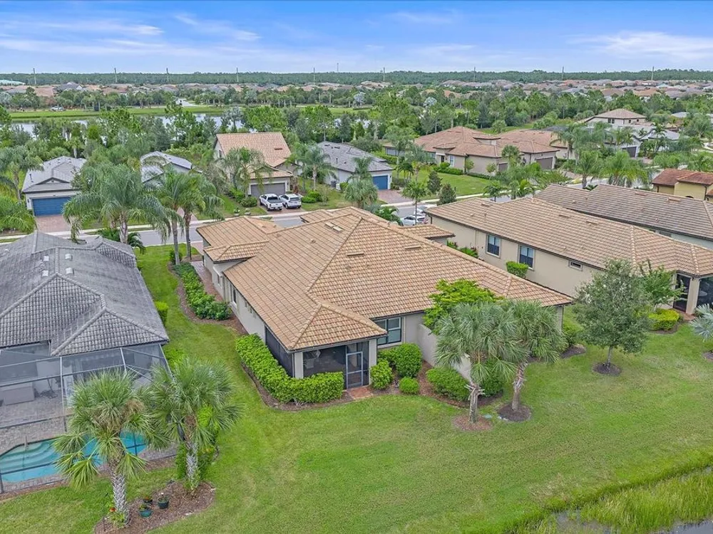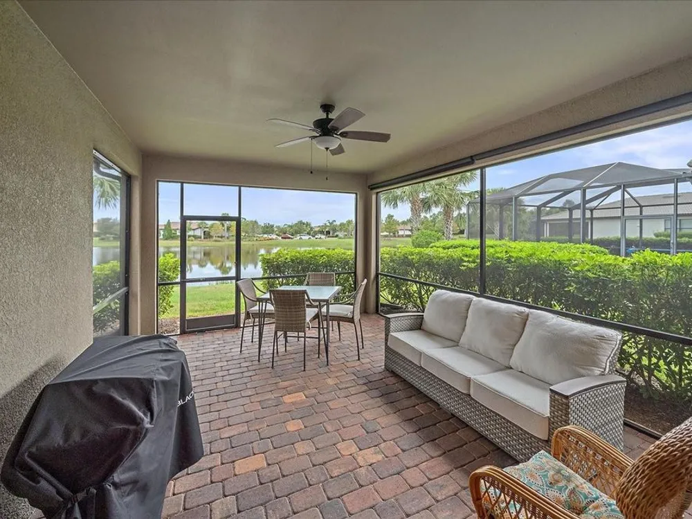 Under contract-accepting backup offers. WELCOME HOME to comfort, style, and Florida living done right! Built in 2018 and lovingly maintained, this home effortlessly combines relaxed everyday living with thoughtful design, creating a space where every day feels like a little getaway. From the moment you step inside, the OPEN LAYOUT feels airy and inviting, with natural light filling the spaces that flow seamlessly from kitchen to living area. It’s the kind of setup that works just as well for a lively gathering as it does for a quiet night in. Step out to the spacious screened lanai, where mornings start with coffee and sunsets end with a LAKE VIEW that never gets old. With 2 BEDROOMS PLUS A FLEXIBLE DEN, you’ve got space for guests, a home office, or your favorite hobby corner. Details matter here, and you’ll notice them: PERMANENT HURRICANE SHUTTERS added in 2023 for security and peace of mind, freshly sealed, upgraded brick pavers, and a garage floor with a sparkling Deco Creek epoxy finish. Pride of ownership is clear! This home is all ready for you to move in and start enjoying. Del Webb at Lakewood Ranch is a gated 55+ community designed for people who want more than just a home; they want a lifestyle. Here, every day feels like a vacation with resort-style amenities, social activities, and plenty of opportunities to stay active or simply relax. The homes are thoughtfully crafted with low-maintenance living in mind, offering modern features, flexible layouts, and energy efficiency that make life easier. Surrounded by lush landscaping, sparkling lakes, and scenic walking trails, it’s a community that feels peaceful yet perfectly connected. Plus, you’re just minutes from shopping, dining, beaches, and the vibrant arts scene in Sarasota and Bradenton. LIVE ON VACATION NOW!