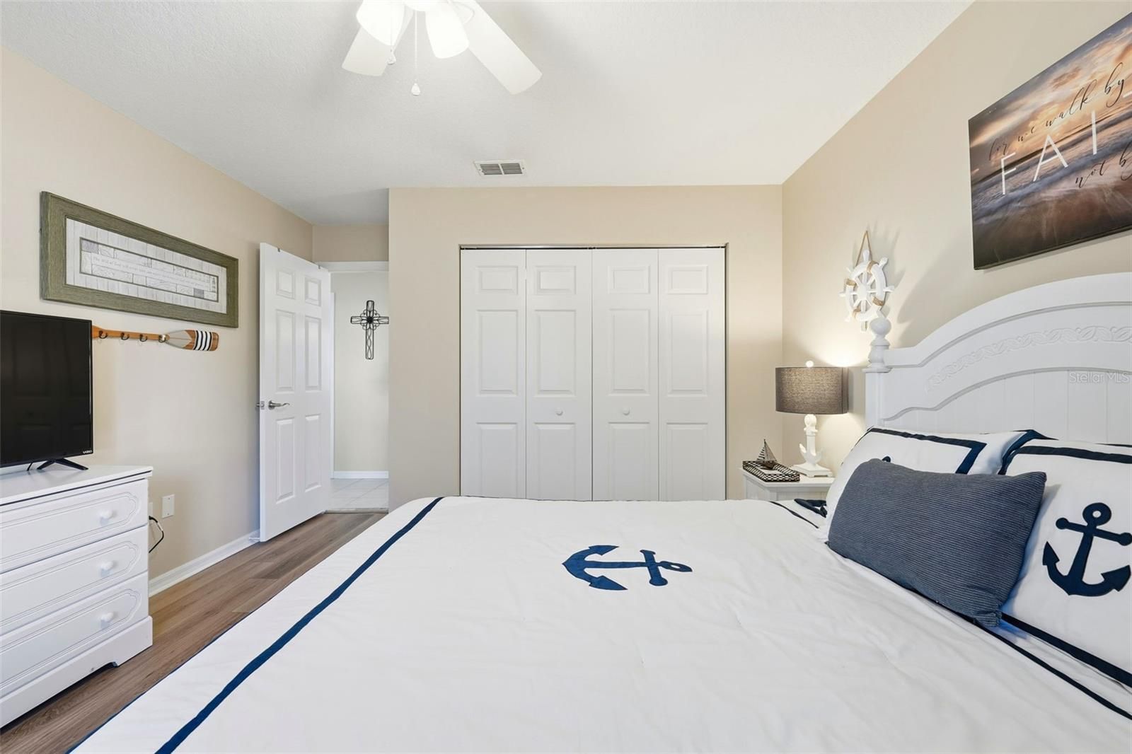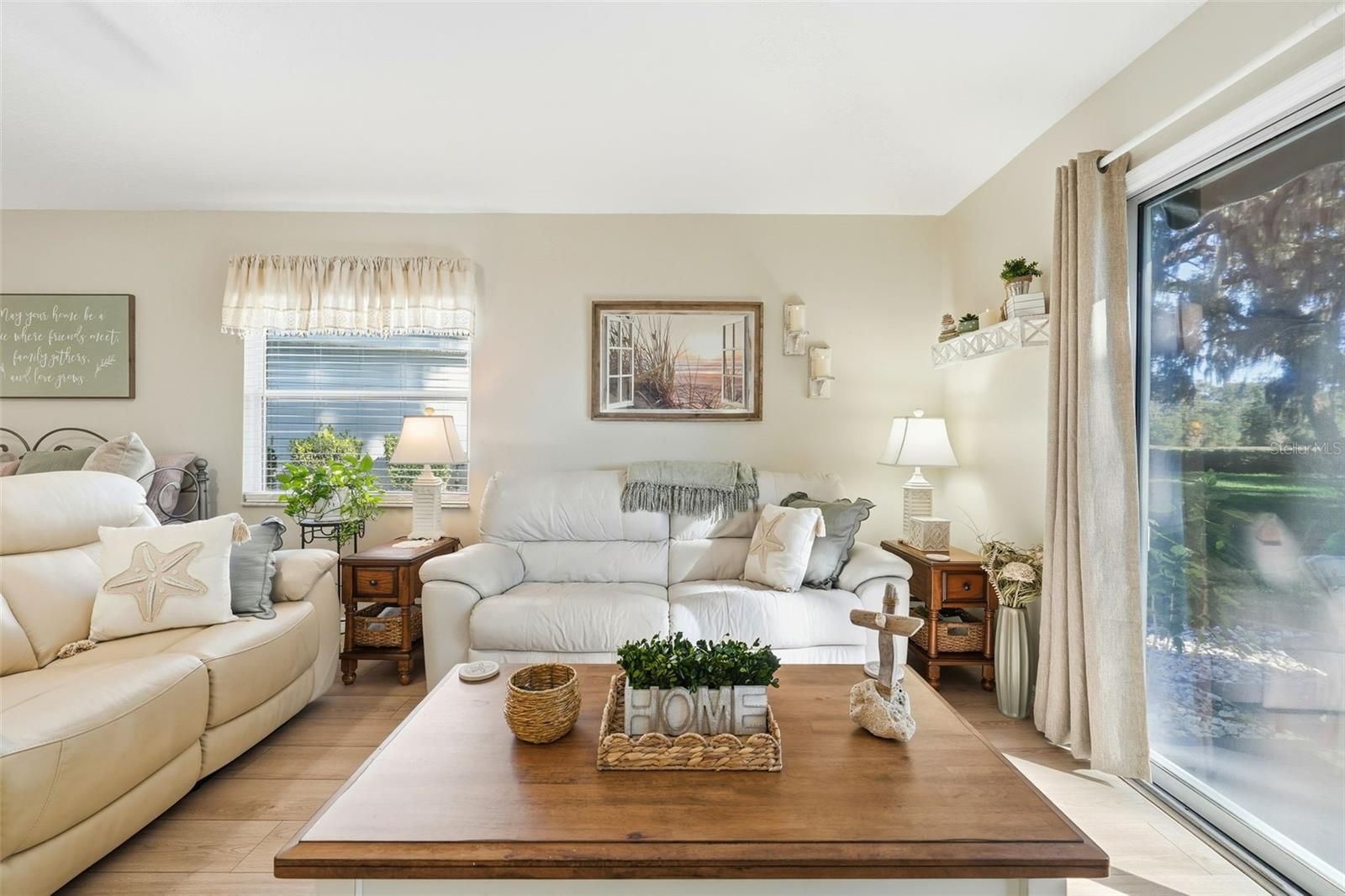 Welcome to your well-maintained villa with a beautiful golf course view in the back yard. Home is located in the friendly, gated 55+ community of Spruce Creek South. This charming 2-bedroom, 2-bath home comes with an attached garage and has had a NEW ROOF and WATER HEATER installed in 2024. This home is move-in ready and waiting to welcome you home. In 2025, this villa got a fresh makeover: new interior paint, stylish luxury vinyl plank floors, modern 2" window blinds, ceiling fans and updated fixtures throught--plus many more thoughtful touches. Located conveniently near the center of the community, with easy access to the community center and all its activities. Spruce creek South is all about active living! Enjoy pickleball and tennis courts, shuffleboard, pool, and fitness center. For an additional fee there is an 18 hole golf course available. Plus, golf carts are welcome, making it easy to get to nearby shopping, medical offices, and dining. This a deed restricted community, monthly maintenance/amenities fee is required, no HOA. Agent-owned.