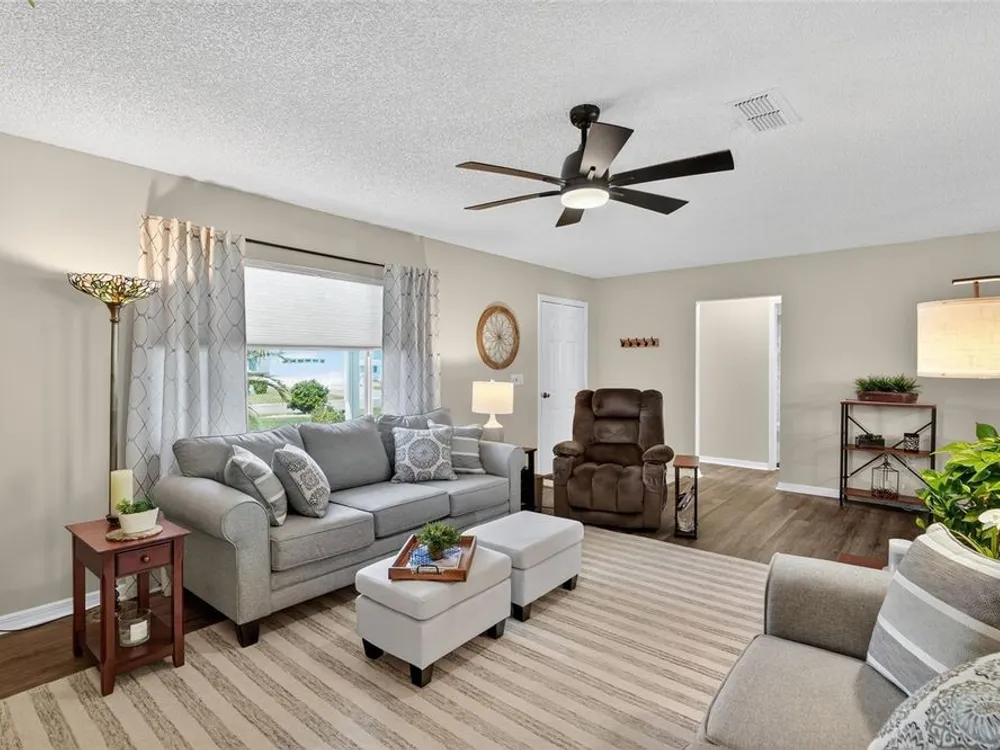 WELCOME TO SPRUCE CREEK SOUTH!! A TRULY GATED COMMUNITY. THIS BEAUTIFULLY LANDSCAPED WELL MAINTAINED 3BR, 2BA HOME LOCATED NEAR THE VILLAGES, SHOPPING, RESTAURANTS AND MEDICAL FACILITIES. 12 MINUTES TO SPANISH SPRINGS TOWN SQUARE. NOTICE THE LUXURY VINYL PLANK FLOORING IN LIVING, DINING, KITCHEN AND LAUNDRY ROOM (INSIDE LAUNDRY). BEDROOMS ARE CARPETED. SCREENED ENCLOSED 12X20 LANAI. 20X22 GARAGE IS CLEAN AND HAS PAINTED FLOOR. AC 2011. ROOF 2013. W/H 2023. SELLER IS OFFERING A 1-YEAR OLD REPUBLIC HOME PROTECTION PLAN. CALL TO SEE THIS BEAUTIFUL HOME TODAY.
