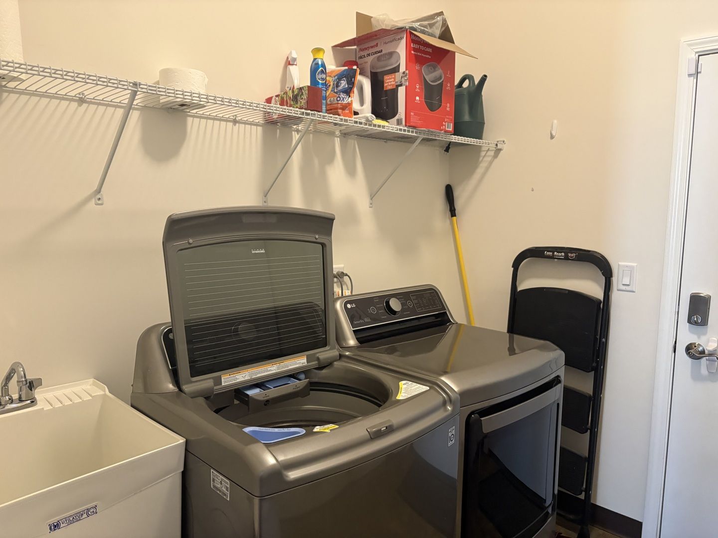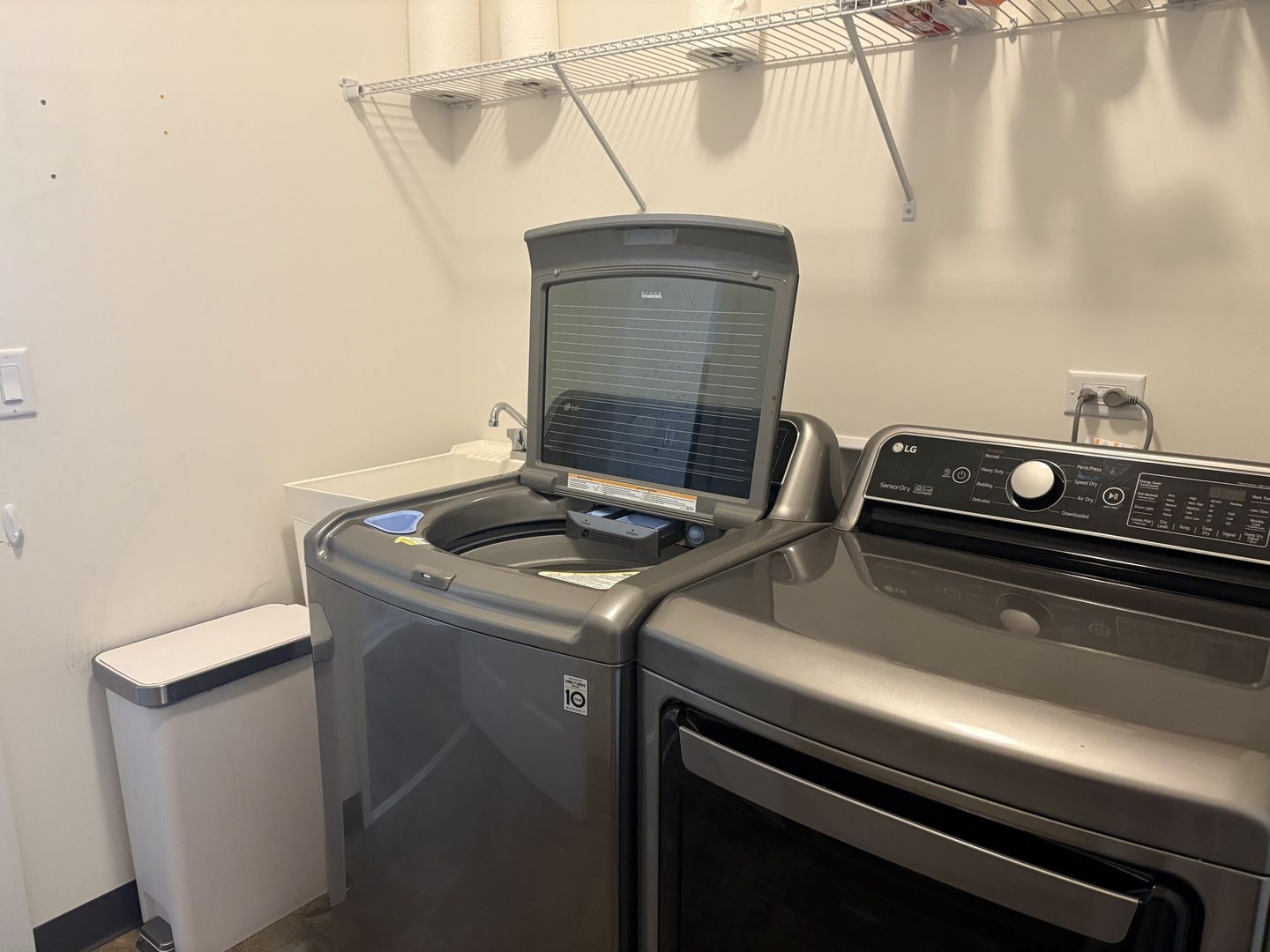 - Range, Microwave, Dishwasher, Refrigerator, Washer, Dryer, Disposal, Stainless Steel Appliance(s)