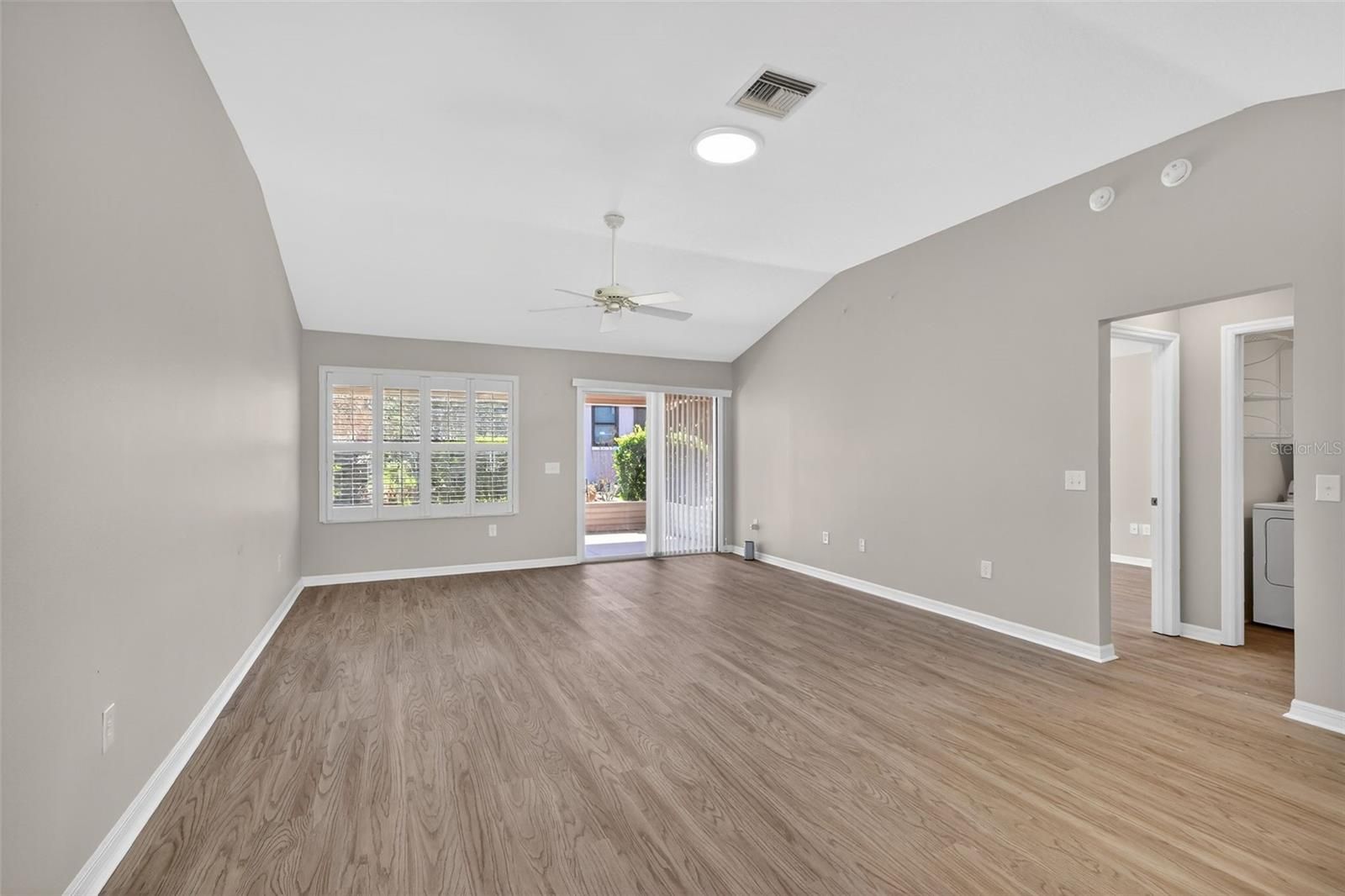 - Ceiling Fan(s), Eat-in Kitchen, High Ceilings, Living/Dining Room, Open Floorplan, Solid Surface Counters, Split Bedrooms, Vaulted Ceiling(s), Walk-In Closet(s), Window Treatments