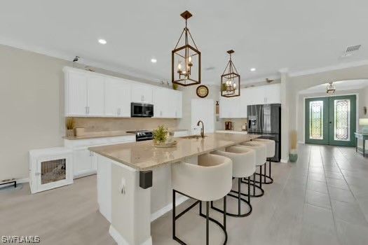 - Attic Access, Breakfast Bar, Built-in Features, Tray Ceiling(s), Closet Cabinetry, Dual Sinks, Entrance Foyer, Eat-in Kitchen, French Door(s)/Atrium Door(s), High Ceilings, Living/Dining Room, Custom Mirrors, Main Level Primary, Pantry, Pull Down Attic Stairs, Walk-In Pantry, Walk-In Closet(s), Wired for Sound, Window Treatments, High Speed Internet, Home Office