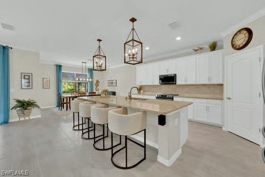 This beautifully upgraded SUMMERVILLE MODEL by Lennar offers an ideal blend of PRIVATE PRESERVE VIEWS and RESORT-STYLE LIVING inside THE PLACE AT CORKSCREW. Set on an EXTRA-DEEP HOMESITE with NO HOMES BEHIND YOU, this single-story home features 2,445 SQFT, 3 BEDROOMS PLUS DEN, 3 FULL BATHROOMS, and thoughtfully designed spaces that combine elegance and comfort. The LONG DRIVEWAY accommodates up to 9 VEHICLES, plus a 3-CAR GARAGE. Glass DOUBLE-ENTRY DOORS open to a bright foyer with a CUSTOM BUILT-IN MIRROR. The GREAT ROOM includes CROWN MOLDING, a 10-FOOT TRAY CEILING, PREMIUM LIGHTING, and a CUSTOM BUILT-IN FEATURE WALL. The upgraded KITCHEN features SAMSUNG STAINLESS STEEL APPLIANCES, MARBLE BACKSPLASH, UPGRADED HARDWARE, and WOOD SHELVING IN THE PANTRY. An OVERSIZED ISLAND overlooks the living and dining areas, perfect for entertaining family and friends or enjoying quiet evenings at home. The PRIMARY SUITE offers a TRAY CEILING, CROWN MOLDING, and peaceful PRESERVE VIEWS. The ENSUITE BATHROOM includes a FRAMELESS GLASS SHOWER WITH BUILT-IN BENCH, SOAKING TUB, DUAL VANITIES, and DUAL WALK-IN CLOSETS WITH CUSTOM SHELVING. Outdoor living shines with a SCREENED LANAI, POOL AND SPA WITH WATERFALL SPILLOVER, FULLY FENCED YARD, BUILT-IN DOG DOOR, and CLEANED AND SEALED PAVERS on the lanai and driveway, creating a relaxing private retreat. The EASTERN WOODED PRESERVE VIEW delivers unmatched privacy. The FIRST GUEST BEDROOM features BRAND-NEW CARPET WITH PREMIUM PAD and is near a FULL GUEST BATHROOM. The DEN includes LAMINATE FLOORING and a CUSTOM BUILT-IN DESK. The SECOND GUEST SUITE offers a PRIVATE ENSUITE BATHROOM, ideal for visitors or multigenerational living. All bedrooms feature NEWER CARPET WITH THE HIGHEST-GRADE PAD. The LAUNDRY ROOM includes LG WASHER AND DRYER, UPPER CABINETS, and a LAUNDRY SINK. The 3-CAR GARAGE features OVERHEAD STORAGE RACKS, MINI-SPLIT A/C UNIT, GARAGE DOOR INSULATION, BLOWN-IN ATTIC INSULATION, a FINISHED ATTIC FLOOR WITH PULL-DOWN STAIRS, and a HUSKY WORKBENCH AND CABINETS that remain with the home. Additional upgrades include PORTABLE GENERATOR HOOKUP, WHOLE-HOUSE SURGE PROTECTION, DEDICATED POOL EQUIPMENT SURGE PROTECTION, RING DOORBELL, KEYLESS ENTRY, SMART THERMOSTAT, GOOGLE NEST, and REVERSE OSMOSIS IN THE LAUNDRY ROOM. The community offers a LAGOON-STYLE POOL WITH WATERFALLS, 100-FOOT WATERSLIDE, SPLASH PAD, FITNESS CENTER, CAFE, RESTAURANT, BAR, TENNIS, PICKLEBALL, BOCCE, BASKETBALL, VOLLEYBALL, PLAYGROUND, and DOG PARK, providing endless options for relaxation and recreation. Convenient to Publix, Miromar Outlets, Gulf Coast Town Center, RSW Airport, and Southwest Florida’s beaches. The sellers are open to NEGOTIATING THE LIVING ROOM SECTIONAL AND DINING ROOM FURNITURE for an easier move-in. A beautifully finished Summerville with a rare private preserve setting—ready for its next owner.