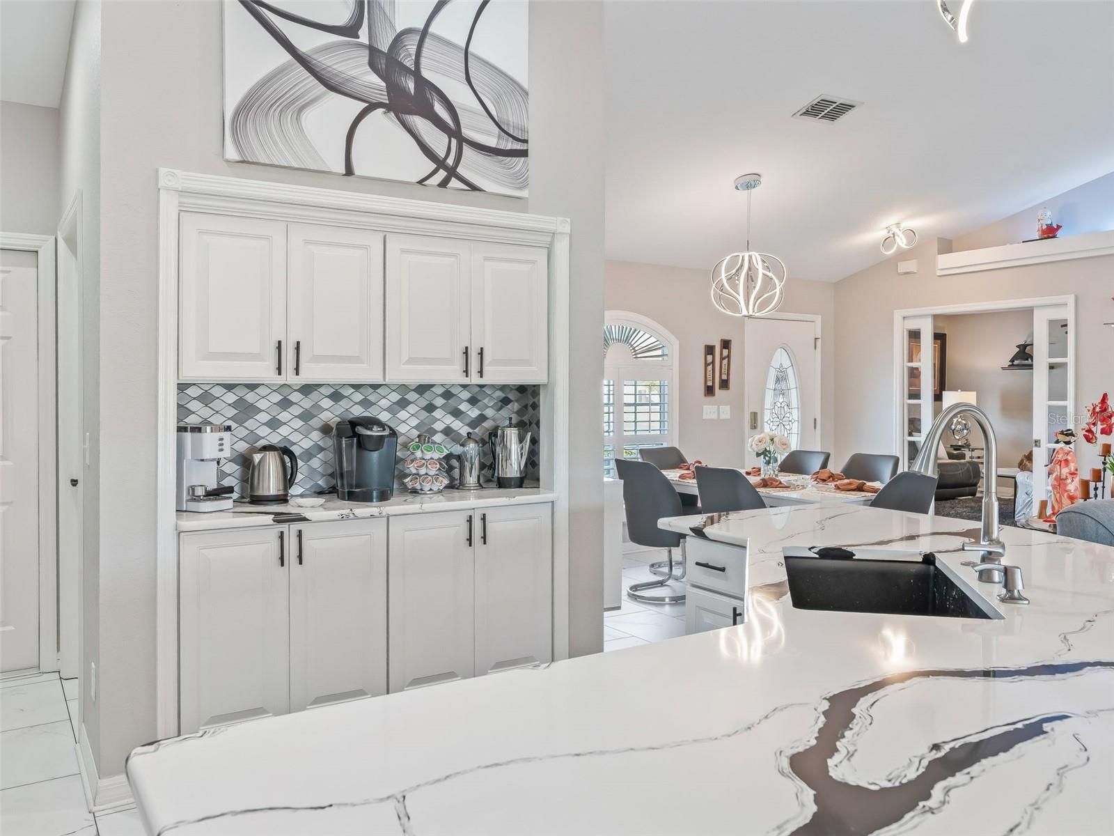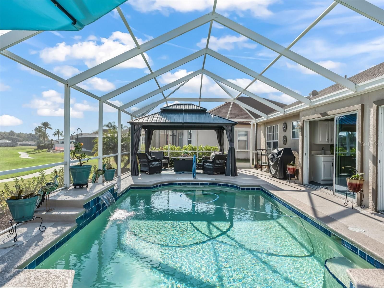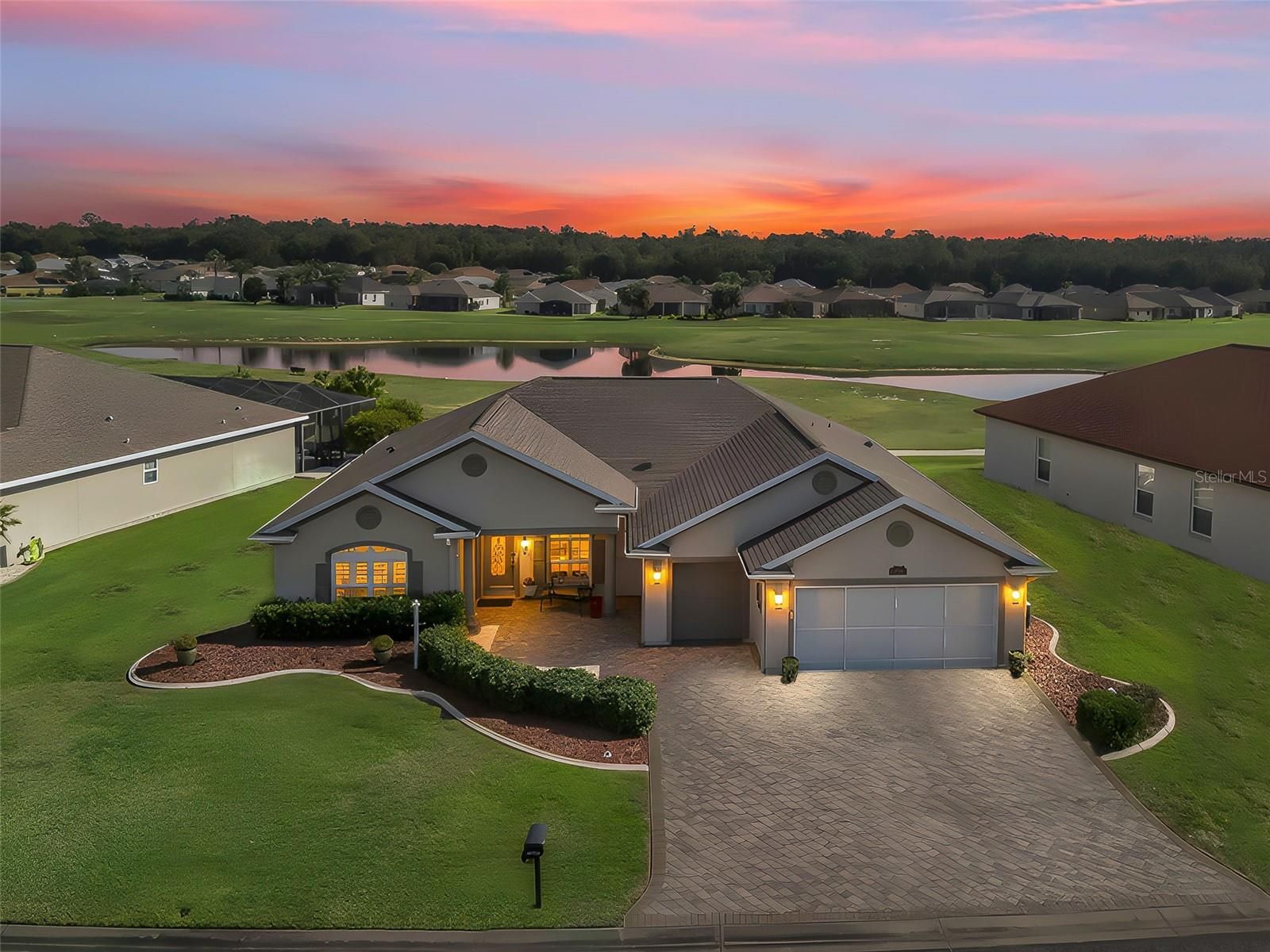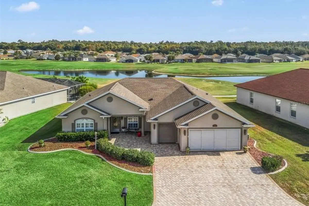 Stonecrest is a 55+ gated golf course community with all the amenities and 4 pools (one indoor), and just a Bridge Away By Golf Cart To The Villages! Come See this Stunning Water Front POOL HOME! 3/3 + Den updated Cedar model with a 2 Car + Golf Cart Garage, ROOF 2022, Vaulted Ceilings, Plantation Shutters, Pool Heater 2022, Pool Pump 2024, No Carpet, No Rear Neighbors, New Lighting & Ceiling Fans, Open Concept, and Split Floor Plan! This Spectacular Home offers Tremendous curb appeal featuring Low Maintenance Professional Tropical Landscaping, Paver Driveway & Walkway, and Covered Front Entrance with an Elegant Leaded Glass Door. This Home Has It All! Exceptional Outdoor Living Space featuring Water Views, a Heated Inground Pool with Water Feature, Enclosed Lanai with Birdcage, Professionally installed Gazebo with a Metal Roof and Accent Lighting, Enhancing the Outdoor Living Experience! You will Love This Open Concept Floor Plan which is Spacious, Light and Bright, just perfect for Entertaining Friends and Family! The Open Updated Kitchen showcases Quartz Countertops, White Wood Cabinetry with Accent Lighting, Stainless Appliances, Generous Breakfast Bar with a Designer Pendant Light Fixture, Pantry Closet, Coffee Bar, an Eat -In Area with a Designer Chandelier, and Stackable Sliders to the Lanai! A Gorgeous Designer Chandelier Adorns the spacious Dining Area which flows to the Huge Great Room featuring Vaulted ceilings with LED top lights, and flows to the Spacious Living area which opens to the 24 x 11 Enclosed Lanai. The Split Floor Plan offers maximum Privacy for both the Owners and their Guest, with the Primary suite commanding one side of the home while the guest bedrooms and guest bathrooms are located on the opposite side of the home. The Luxurious Primary suite boasts a Custom California Walk in Closet, and a New Remodeled En Suite Bathroom showcasing a Huge Tiled Walk in Shower, Private Water Closet, and a Two Sink Vanity featuring Stunning Vessel sinks! The two additional bedrooms feature nice size built in closets. Guest bedroom 2 offers an En suite bathroom with a stunning Tiled Walk in shower, providing your guests with Convenience, and Privacy! Guest bedroom 3 provides a Built in Murphy bed, and is conveniently situated next to the additional guest bath room, which offers Private access to the Lanai, and Pool area. The Enclosed Lanai showcases a Mini Split, Dry Bar, and Insulated Sliding doors providing an Exceptional Additional Living Space, and opens to Your Own Private Oasis! This Gorgeous Tropical Backyard Paradise can be yours! Call now for a private showing. The pool is maintained weekly by "Backyard Pools", HVAC 2016 with UV light for germ eradication. Stonecrest is a 55+ gated golf course community with all the amenities, pools, pickleball courts, softball, 18 hole championship golf course, Broad Stripes Golf & Social Club and over 80 different clubs to join! As a private gated golf course community, you can expect a high level of privacy and security. Overall, this home offers a combination of Exceptional Outdoor Space, Luxurious Features, a Fantastic Location, and a Secure Community Setting. A WONDERFUL LIFESTYLE AWAITS YOU IN STONECREST!