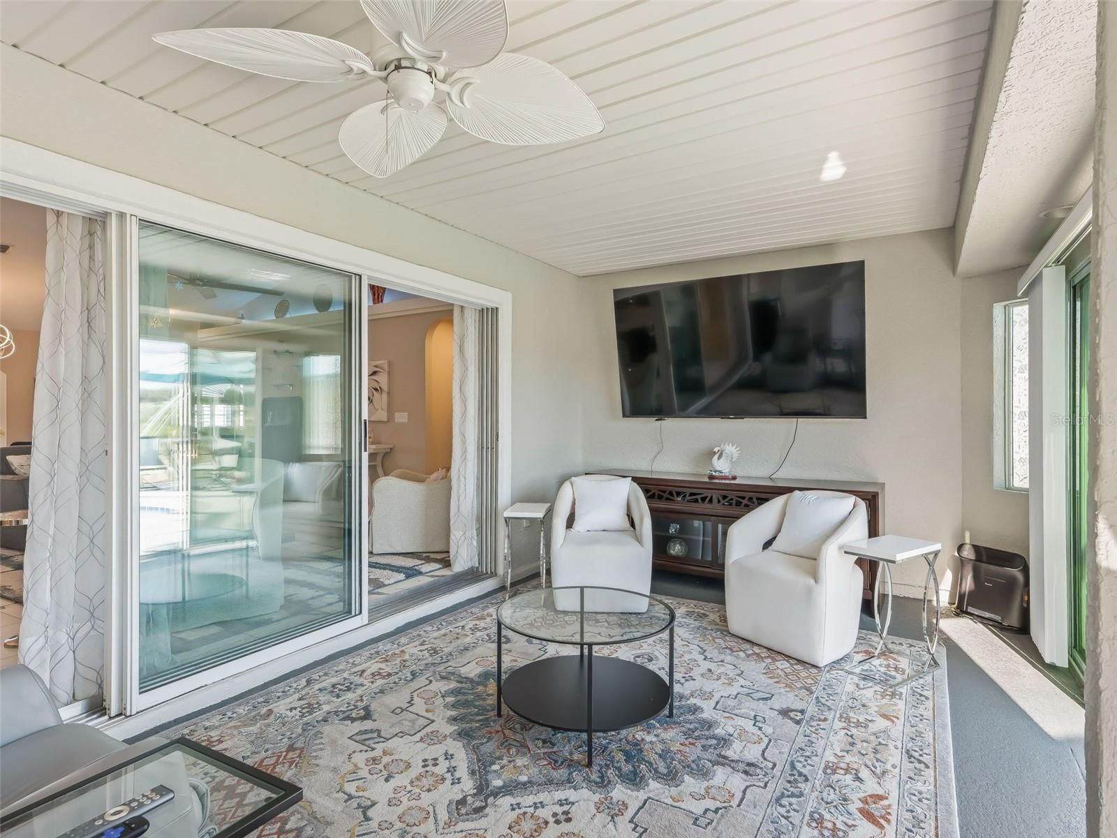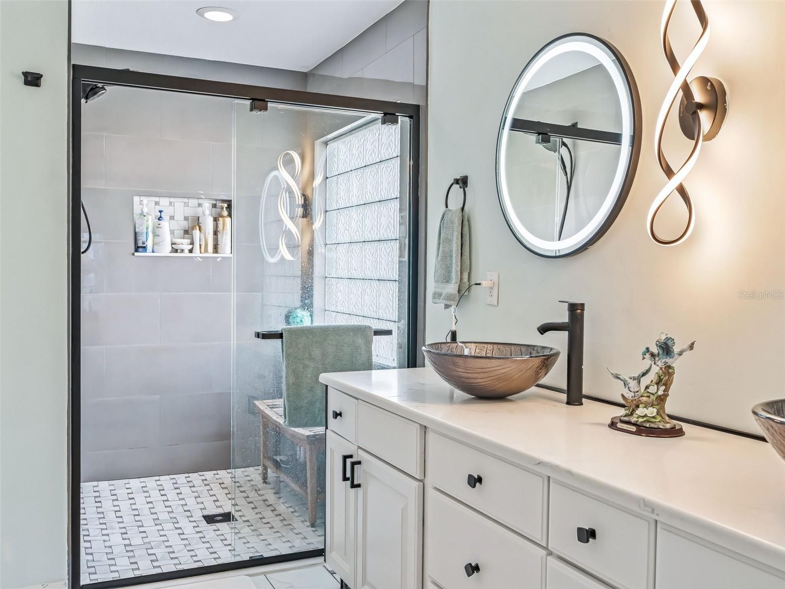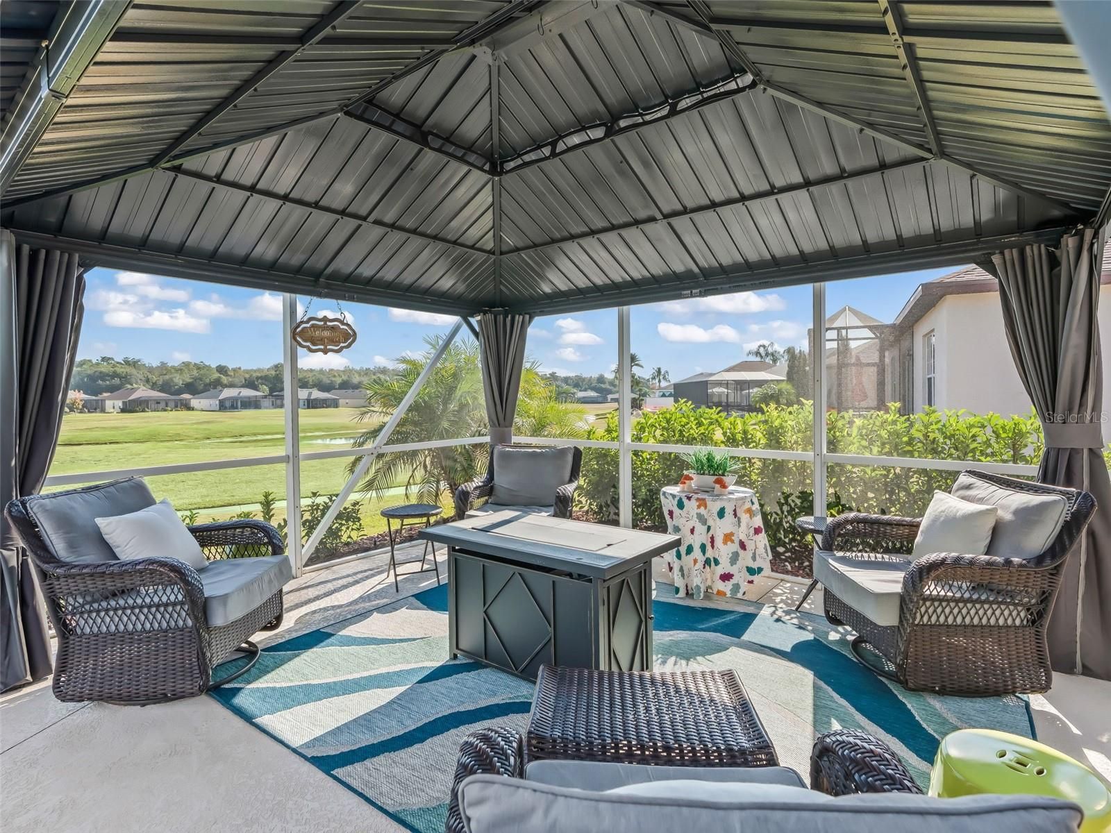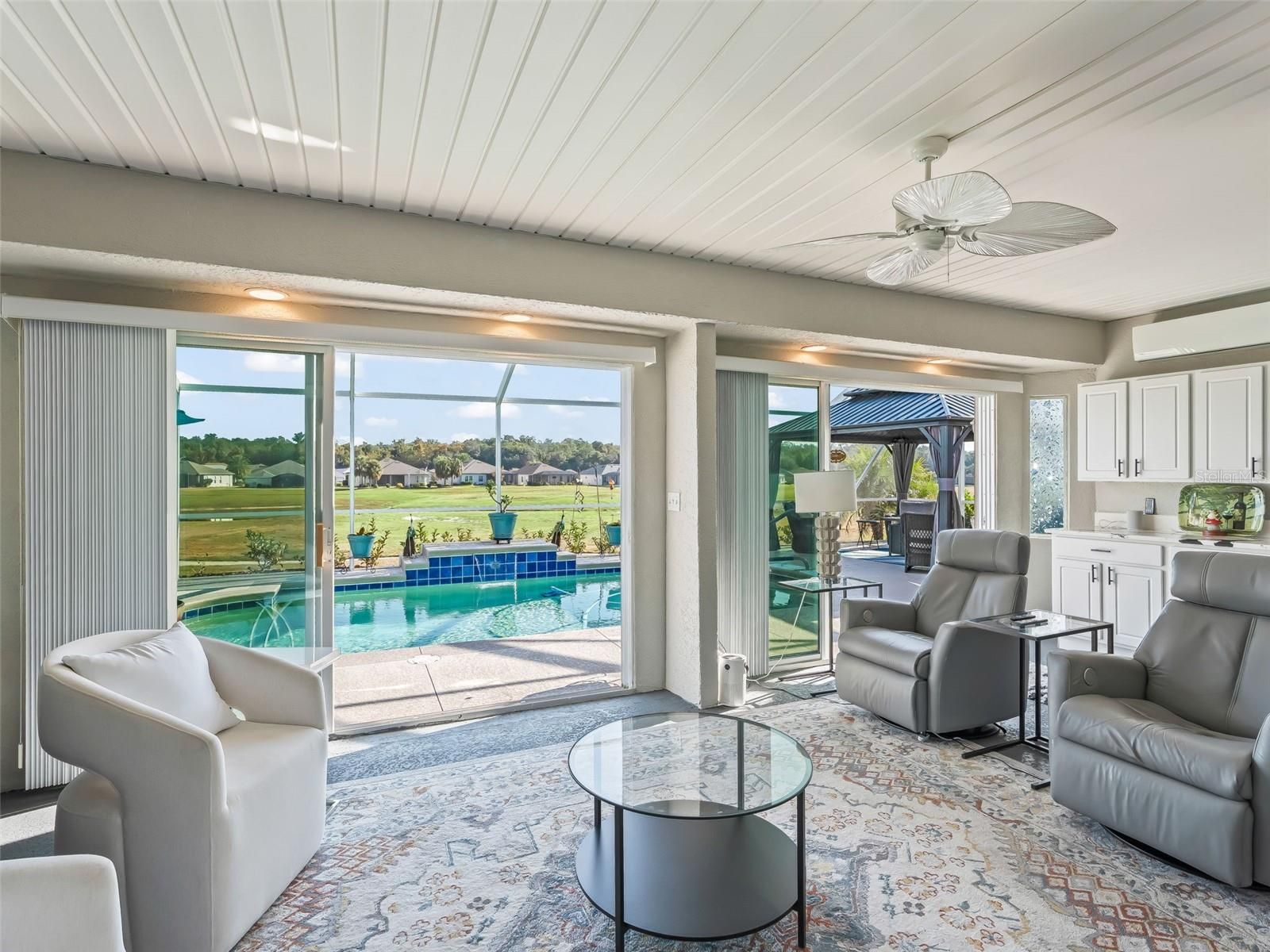 Stonecrest is a 55+ gated golf course community with all the amenities and 4 pools (one indoor), and just a Bridge Away By Golf Cart To The Villages! Come See this Stunning Water Front POOL HOME! 3/3 + Den updated Cedar model with a 2 Car + Golf Cart Garage, ROOF 2022, Vaulted Ceilings, Plantation Shutters, Pool Heater 2022, Pool Pump 2024, No Carpet, No Rear Neighbors, New Lighting & Ceiling Fans, Open Concept, and Split Floor Plan! This Spectacular Home offers Tremendous curb appeal featuring Low Maintenance Professional Tropical Landscaping, Paver Driveway & Walkway, and Covered Front Entrance with an Elegant Leaded Glass Door. This Home Has It All! Exceptional Outdoor Living Space featuring Water Views, a Heated Inground Pool with Water Feature, Enclosed Lanai with Birdcage, Professionally installed Gazebo with a Metal Roof and Accent Lighting, Enhancing the Outdoor Living Experience! You will Love This Open Concept Floor Plan which is Spacious, Light and Bright, just perfect for Entertaining Friends and Family! The Open Updated Kitchen showcases Quartz Countertops, White Wood Cabinetry with Accent Lighting, Stainless Appliances, Generous Breakfast Bar with a Designer Pendant Light Fixture, Pantry Closet, Coffee Bar, an Eat -In Area with a Designer Chandelier, and Stackable Sliders to the Lanai! A Gorgeous Designer Chandelier Adorns the spacious Dining Area which flows to the Huge Great Room featuring Vaulted ceilings with LED top lights, and flows to the Spacious Living area which opens to the 24 x 11 Enclosed Lanai. The Split Floor Plan offers maximum Privacy for both the Owners and their Guest, with the Primary suite commanding one side of the home while the guest bedrooms and guest bathrooms are located on the opposite side of the home. The Luxurious Primary suite boasts a Custom California Walk in Closet, and a New Remodeled En Suite Bathroom showcasing a Huge Tiled Walk in Shower, Private Water Closet, and a Two Sink Vanity featuring Stunning Vessel sinks! The two additional bedrooms feature nice size built in closets. Guest bedroom 2 offers an En suite bathroom with a stunning Tiled Walk in shower, providing your guests with Convenience, and Privacy! Guest bedroom 3 provides a Built in Murphy bed, and is conveniently situated next to the additional guest bath room, which offers Private access to the Lanai, and Pool area. The Enclosed Lanai showcases a Mini Split, Dry Bar, and Insulated Sliding doors providing an Exceptional Additional Living Space, and opens to Your Own Private Oasis! This Gorgeous Tropical Backyard Paradise can be yours! Call now for a private showing. The pool is maintained weekly by "Backyard Pools", HVAC 2016 with UV light for germ eradication. Stonecrest is a 55+ gated golf course community with all the amenities, pools, pickleball courts, softball, 18 hole championship golf course, Broad Stripes Golf & Social Club and over 80 different clubs to join! As a private gated golf course community, you can expect a high level of privacy and security. Overall, this home offers a combination of Exceptional Outdoor Space, Luxurious Features, a Fantastic Location, and a Secure Community Setting. A WONDERFUL LIFESTYLE AWAITS YOU IN STONECREST!
