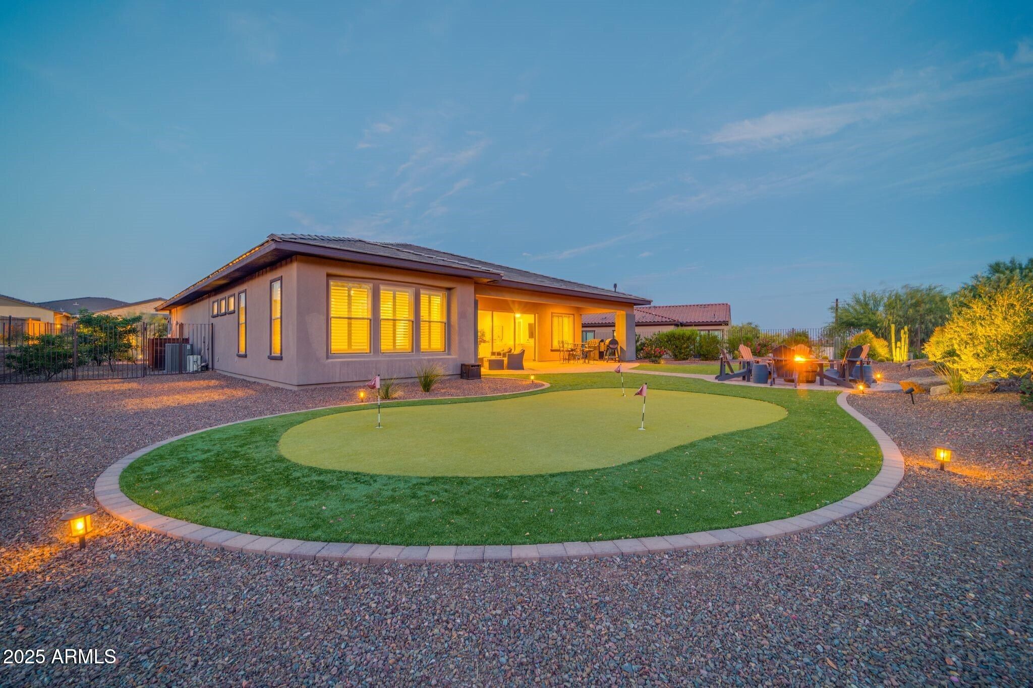 WELCOME TO THIS BEAUTIFUL CONTEMPORARY CORDOBA MODEL HOME AT TRILOGY VERDE RIVER GOLF RESORT COMMUNITY. This popular floor plan was designed with an open concept living space great for entertaining guests and lounging comfortably. Home features an expansive kitchen with upgraded Monogram appliances, quartz counters, stunning white cabinets and a separate dining space; it's a culinary delight. Walk out of the 20ft sliding glass doors to the covered patio with an outdoor TV set up and backyard finished with a firepit table & a professional putting green for golf enthusiasts. Complete with 2 bedrooms, 2.5 baths, a separate office w/ French doors & smart space with 2 built-in desks for maximum flexibility. If you're looking for the AZ luxury lifestyle, this is it!