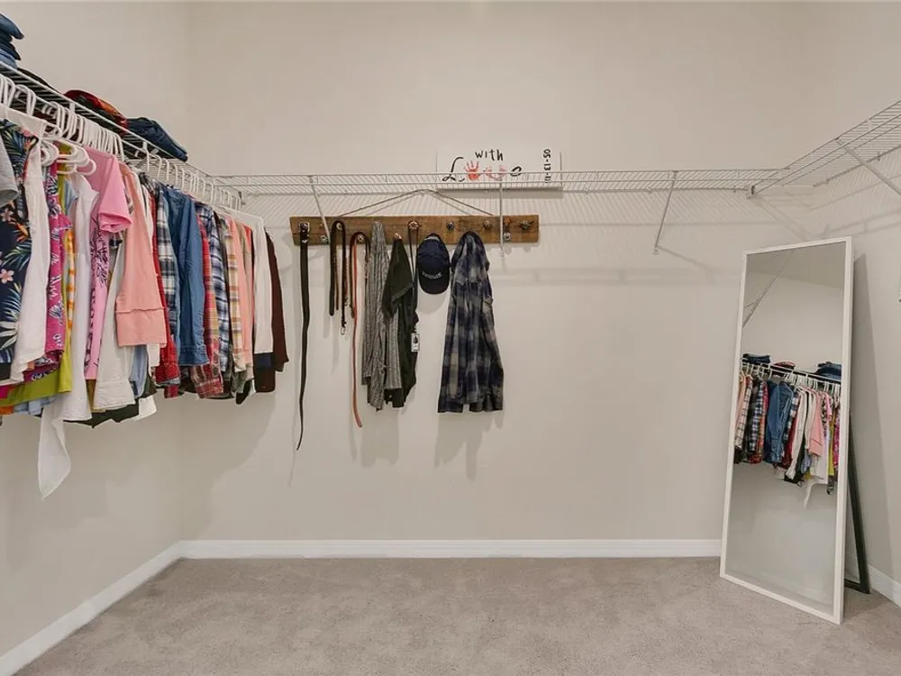 - High Ceilings, Kitchen/Family Room Combo, Open Floorplan, Main Level Primary, Smart Home, Stone Counters, Walk-In Closet(s), Window Treatments