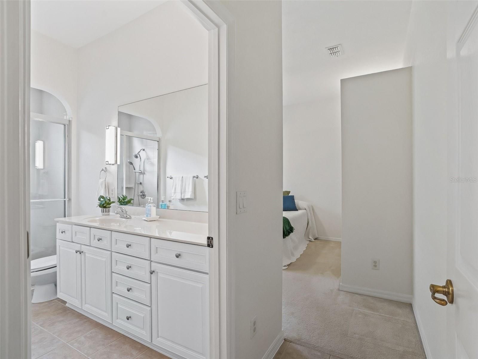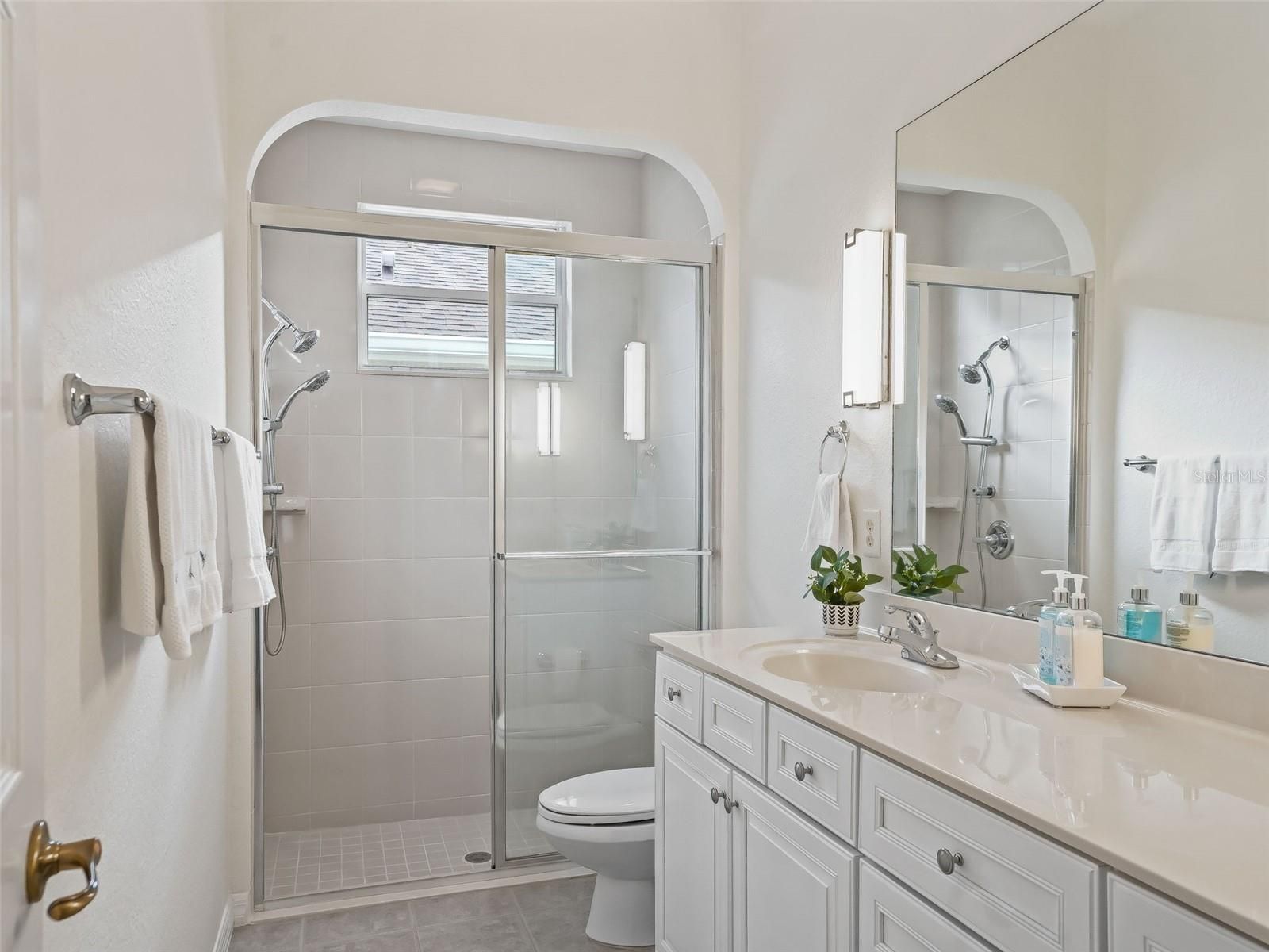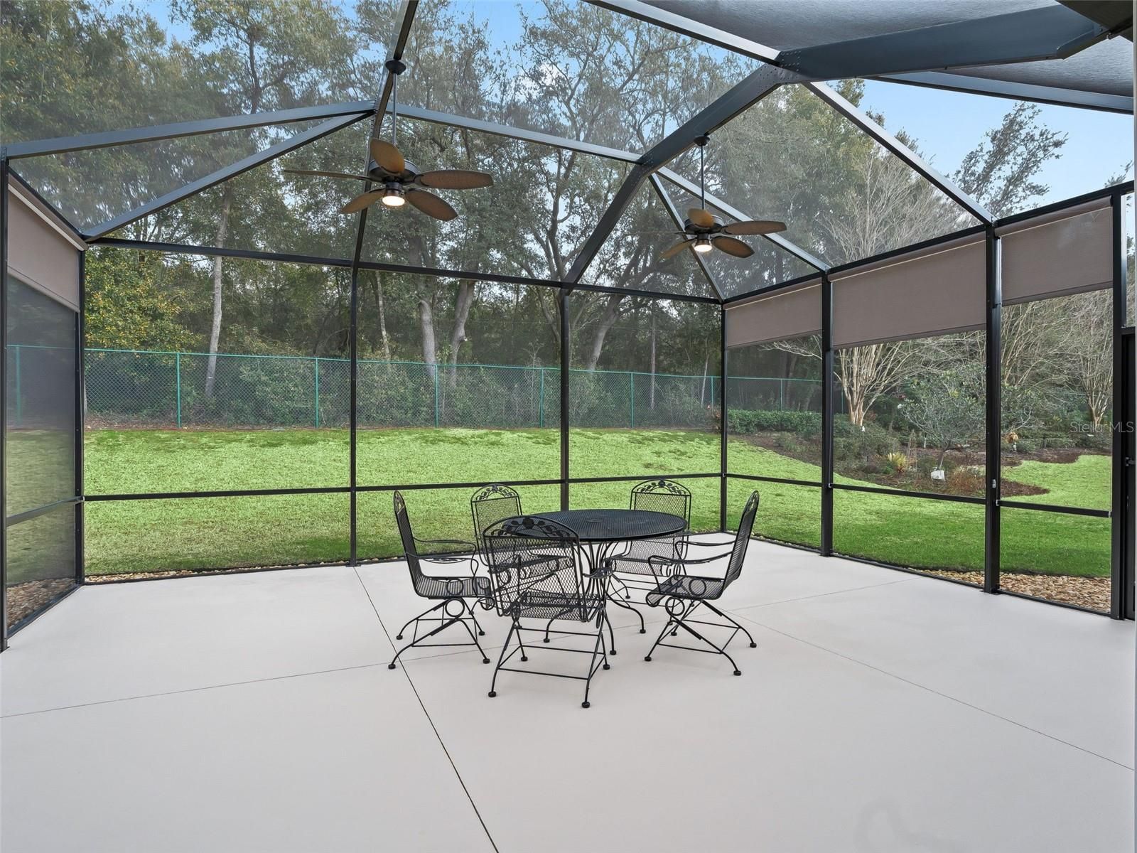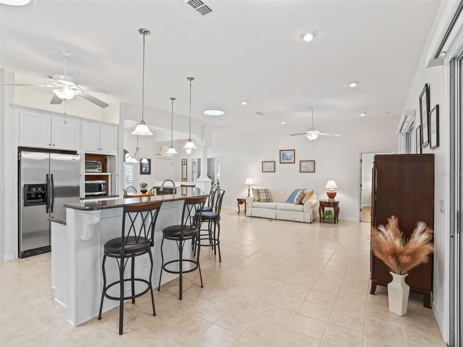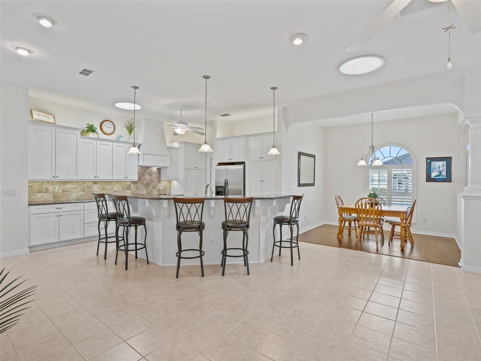 Stonecrest is a 55+ gated golf course community with all the amenities and 4 pools (one indoor), and just a Bridge Away By Golf Cart To The Villages! Exceptional 3/3 + Den Cedar model with a 2 Car + Golf Cart Garage, ROOF 2020, HVAC 2020, Soaring 10ft ceilings, Open and Split Floor Plan, and No Rear Neighbors! This home presents Tremendous Curb Appeal featuring Meticulously Maintained Professional Landscaping, Painted Concrete Driveway and Walkway, and an Elegant Front Porch! The Open Concept Floor Plan is Spacious, and Flooded with Natural Light, offering the Perfect Gathering space for family, and friends! The Split Floor Plan provides maximum Privacy for both the Owners and their Guest, with the Primary suite commanding one side of the home while the guest bedrooms and guest bathrooms are located on the opposite side of the home. The Luxurious Primary suite offers a Huge Walk In Closet, and an En Suite bathroom. The En Suite Bathroom features a Double Sink Vanity, Bidet, Tiled Walk In Shower, and a Nice Size Soaking Tub! The two additional bedrooms feature nice size built in closets. Guest bedroom 2 offers an En suite bathroom with a Tiled Walk In Shower, and good size Vanity, providing your guests with Convenience, and Privacy! Guest bathroom 3 is conveniently situated next to the additional guest bedroom, providing ample space for your guests. The Impressive Gourmet Kitchen showcases Granite countertops, Tumble Tile Backsplash, Sold Wood Cabinets with Pullouts, Stainless Appliances, a Double Pantry Closet, Generous Breakfast Bar with Upgraded Pendant Light Fixtures, and Eat in Area with Access to the Enclosed Lanai. The kitchen flows seamlessly to the Living area, which offers an Exceptional Space for Enjoying Comfortable Living, and Entertaining! Gorgeous Laminate Flooring, and an Upgraded Light Fixture Adorn the Dining area accented by Plantation shutters, and opens to the Huge 16 x 18 Living area which offers access to the 24 x 10 Lanai! Enjoy Exceptional Outdoor Living on the 23 x 20 Birdcage Enclosed Back Patio, with warm Tropical Breezes, Beautiful Sunsets, and Backyard BBQ's! There is Plenty of Room for Storage in the 28 x 21 2 Car + Golf Cart Garage! Call Cindy Now for Your Private Showing! Stonecrest is a 55+ gated golf course community with all the amenities, pools, pickleball courts, softball, 18 hole championship golf course, Broad Stripes Golf & Social Club and over 80 different clubs to join! As a private gated golf course community, you can expect a high level of privacy and security. Overall, this home offers a combination of Tremendous Outdoor Space, Luxurious Features, a Fantastic Location, and a Secure Community Setting. A WONDERFUL LIFESTYLE AWAITS YOU IN STONECREST! Plenty of privacy, with No Rear Neighbors, and Privacy landscape, which provide a lovely park like setting for your backyard BBQ's !