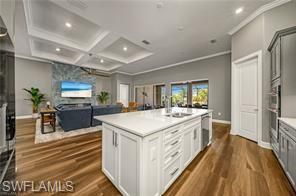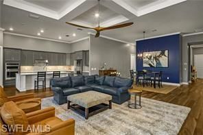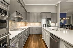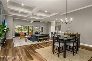 Welcome to this beautifully upgraded custom pool home, where thoughtful design meets everyday comfort. This 3-bedroom plus den, 3-bathroom residence is set on a peaceful scenic lot and offers breathtaking views from the expansive lanai. The outdoor living area creates the perfect setting for relaxing evenings, entertaining guests, and taking in stunning sunset skies. From the moment you arrive, the home impresses with its polished appearance and exceptional curb appeal. A 12-car paver driveway leads to the 3-car garage, offering ample parking, storage, and convenience. Inside, the spacious great room features a coffered ceiling that adds depth and elegance, while large windows fill the home with natural light and showcase the pool and tranquil views beyond. The gourmet kitchen is a true focal point, complete with under-cabinet lighting, 42-inch cabinetry, quartz countertops, a wall oven, and high-end KitchenAid appliances. Whether preparing meals for family or hosting guests, this kitchen is designed for both beauty and function. The adjacent dining area flows seamlessly into the main living space, creating an ideal layout for everyday living and entertaining. The primary suite is privately tucked away and offers a peaceful retreat. A tray ceiling adds a refined touch, while wide windows frame the serene outdoor setting. The ensuite bath is spacious and stylish, featuring a clean, modern design and convenient access to the walk-in closet. Two additional bedrooms are well positioned for guest comfort, each with easy access to their own full bathroom. The den provides flexible space for a home office, hobby room, or reading lounge. Step outside and discover what makes this home truly special. The expansive lanai is designed for effortless Florida living, featuring a saltwater pool, outdoor kitchen, and generous space for dining, lounging, and entertaining. The peaceful views create a relaxing backdrop you will enjoy every day. Located in The Place at Corkscrew, residents enjoy access to an extraordinary collection of resort-style amenities. Spend the day at the stunning pool with its 100-foot waterslide, expansive spa, splash pad, and firepit, or enjoy dining and drinks at the Barefoot Bar & Grill, Bourbon Bar, and poolside martini bar. The community also offers a fitness center with movement studio, tennis, pickleball, basketball, sand volleyball, a playground, and a dog park.