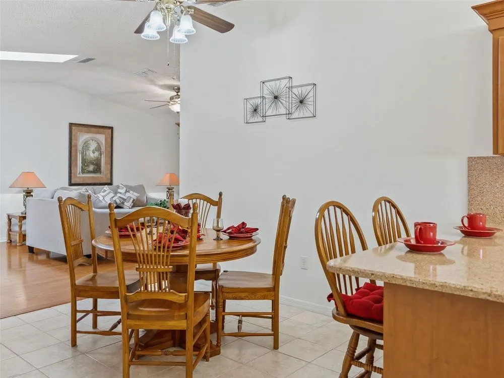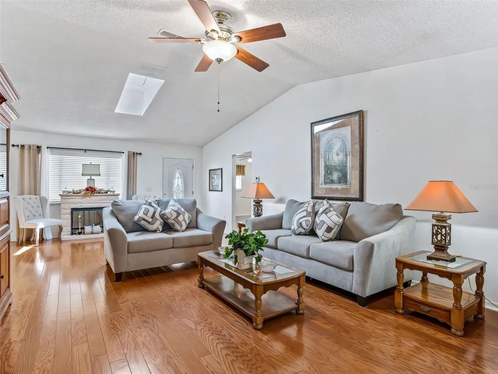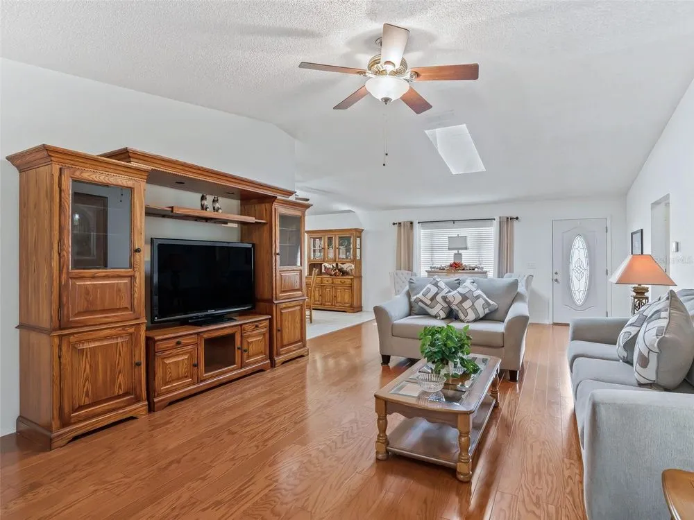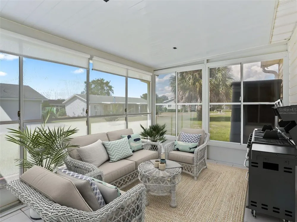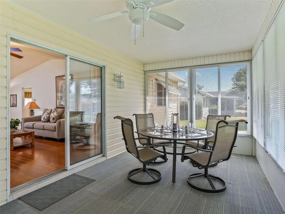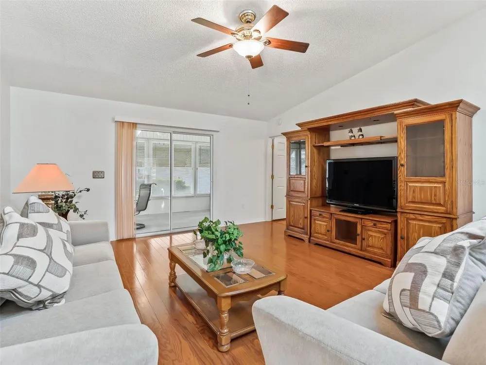 One or more photo(s) has been virtually staged. A home filled with charm, in a community full of life! Welcome to this charming three-bedroom, two-bathroom home that blends comfort, style, and peace of mind with thoughtful updates throughout.The spacious family/living room showcases beautiful hardwood floors, creating a warm and inviting setting for gatherings and relaxation. The lovely primary bedroom features hardwood flooring, an en-suite bath, and a large walk-in closet, offering both comfort and convenience. A nicely sized second bedroom, also with hardwood floors and a generous closet, provides the perfect guest space. The third bedroom is versatile, ideal for a home office, hobby room, or additional accommodations.The kitchen is designed with both function and charm in mind, offering abundant wood cabinetry, granite countertops, an under-mount double sink, and newer appliances that make cooking and entertaining a breeze. Just off the main living area, the screened, air-conditioned lanai/porch, serves as a delightful family game room and gathering space, perfect for casual entertaining.This home also features a newer ROOF 2023 and AIR CONDITIONER, 2021, giving you the comfort of knowing the big-ticket items have already been taken care of. Life at Spruce Creek South is as vibrant as it is relaxing. The 25,000-square-foot clubhouse is the heart of the community, featuring a fitness center, hobby and game rooms, billiards, a library, and a grand ballroom for social events. Outdoors, residents can enjoy volleyball, bocce ball, pickle-ball, basketball, and tennis, or take in the community’s 18-hole golf course with its sweeping views. Afterward, unwind in the heated pool and spa.For those who enjoy friendly competition, the community offers traveling teams in softball and horseshoes, along with over thirty clubs and activities, including dance, water aerobics, bridge, table tennis, bowling, and more. Walking and biking trails weave through the neighborhood, perfect for enjoying Florida’s beautiful weather. Convenience is never far away, with shops, grocery stores, banks, restaurants, and medical facilities all within a short golf cart ride. Residents also have easy access to Walmart, Aldi, Lowe’s, and the back gate of The Villages just across Highway 441/27.This is more than a home — it’s a lifestyle of comfort, activity, and community.