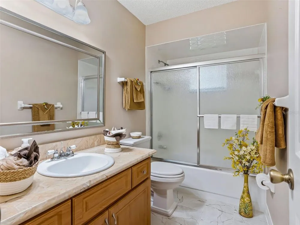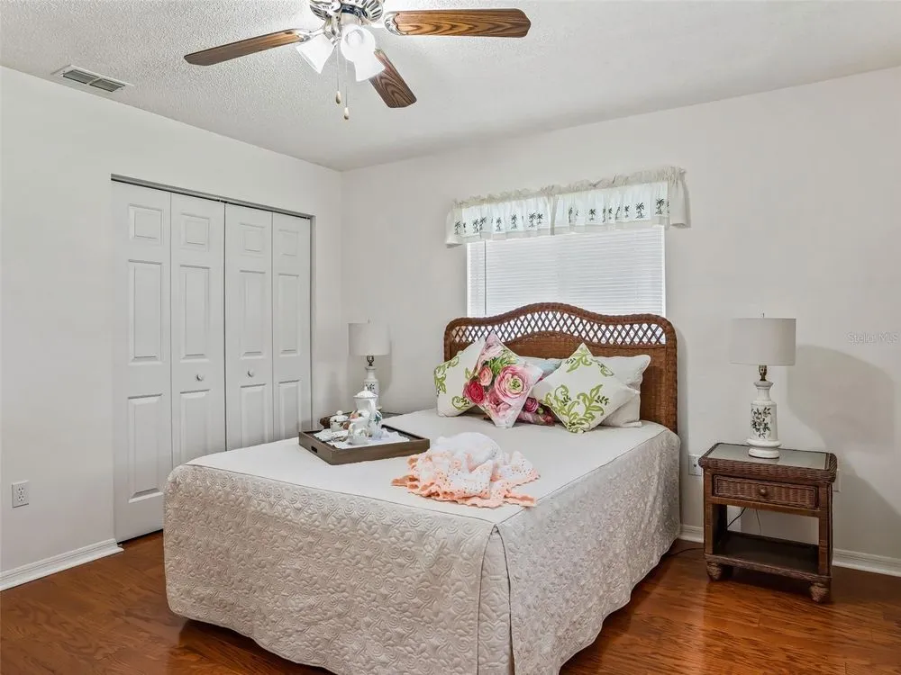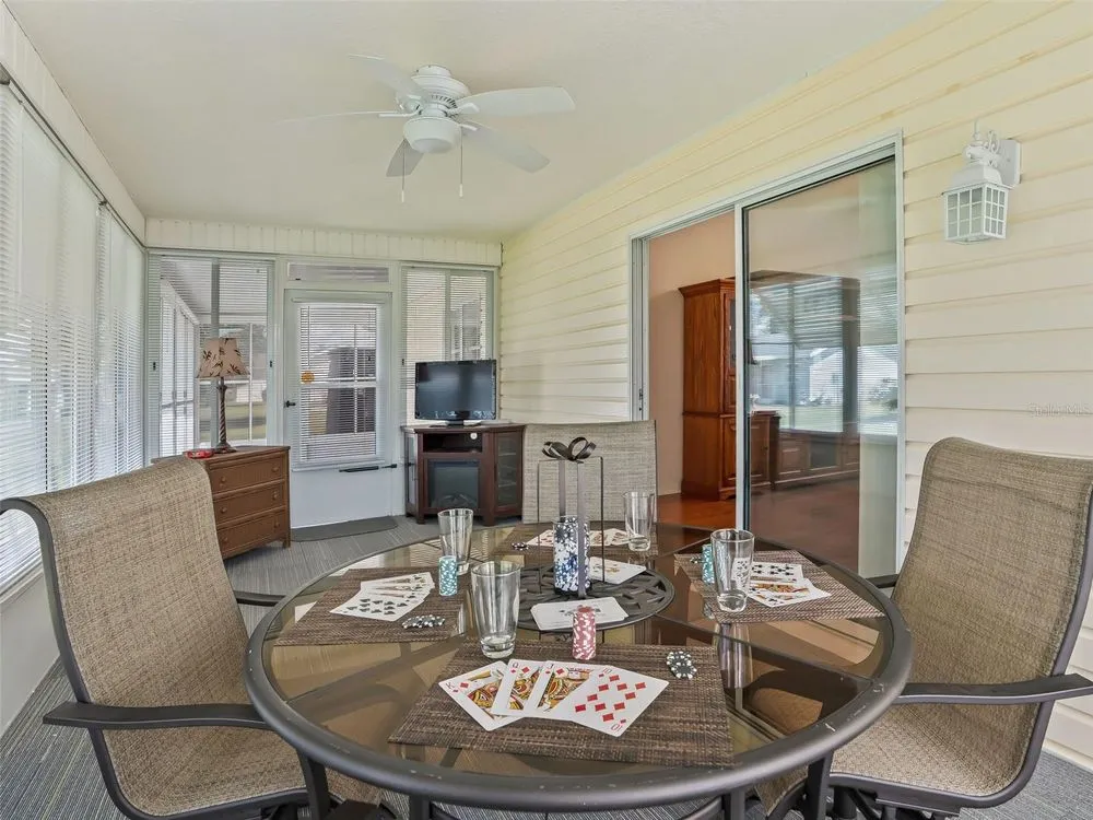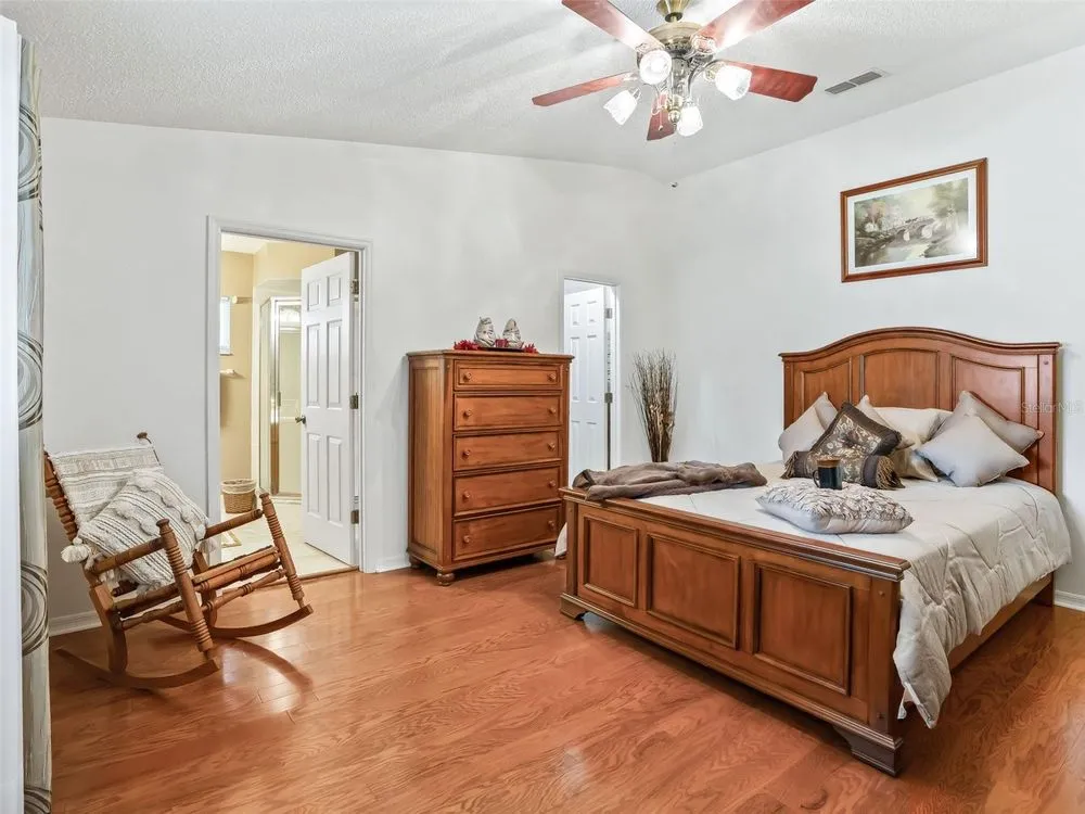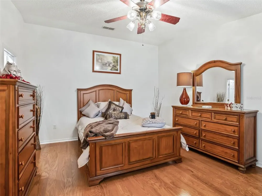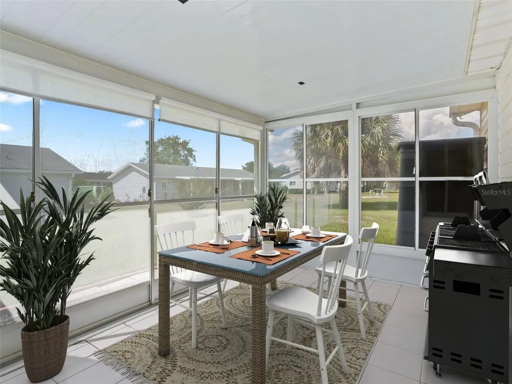 One or more photo(s) has been virtually staged. A home filled with charm, in a community full of life! Welcome to this charming three-bedroom, two-bathroom home that blends comfort, style, and peace of mind with thoughtful updates throughout.The spacious family/living room showcases beautiful hardwood floors, creating a warm and inviting setting for gatherings and relaxation. The lovely primary bedroom features hardwood flooring, an en-suite bath, and a large walk-in closet, offering both comfort and convenience. A nicely sized second bedroom, also with hardwood floors and a generous closet, provides the perfect guest space. The third bedroom is versatile, ideal for a home office, hobby room, or additional accommodations.The kitchen is designed with both function and charm in mind, offering abundant wood cabinetry, granite countertops, an under-mount double sink, and newer appliances that make cooking and entertaining a breeze. Just off the main living area, the screened, air-conditioned lanai/porch, serves as a delightful family game room and gathering space, perfect for casual entertaining.This home also features a newer ROOF 2023 and AIR CONDITIONER, 2021, giving you the comfort of knowing the big-ticket items have already been taken care of. Life at Spruce Creek South is as vibrant as it is relaxing. The 25,000-square-foot clubhouse is the heart of the community, featuring a fitness center, hobby and game rooms, billiards, a library, and a grand ballroom for social events. Outdoors, residents can enjoy volleyball, bocce ball, pickle-ball, basketball, and tennis, or take in the community’s 18-hole golf course with its sweeping views. Afterward, unwind in the heated pool and spa.For those who enjoy friendly competition, the community offers traveling teams in softball and horseshoes, along with over thirty clubs and activities, including dance, water aerobics, bridge, table tennis, bowling, and more. Walking and biking trails weave through the neighborhood, perfect for enjoying Florida’s beautiful weather. Convenience is never far away, with shops, grocery stores, banks, restaurants, and medical facilities all within a short golf cart ride. Residents also have easy access to Walmart, Aldi, Lowe’s, and the back gate of The Villages just across Highway 441/27.This is more than a home — it’s a lifestyle of comfort, activity, and community.