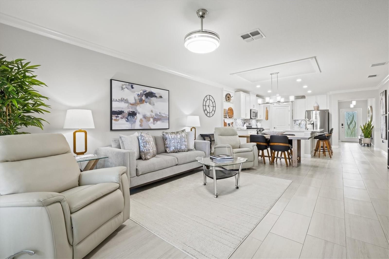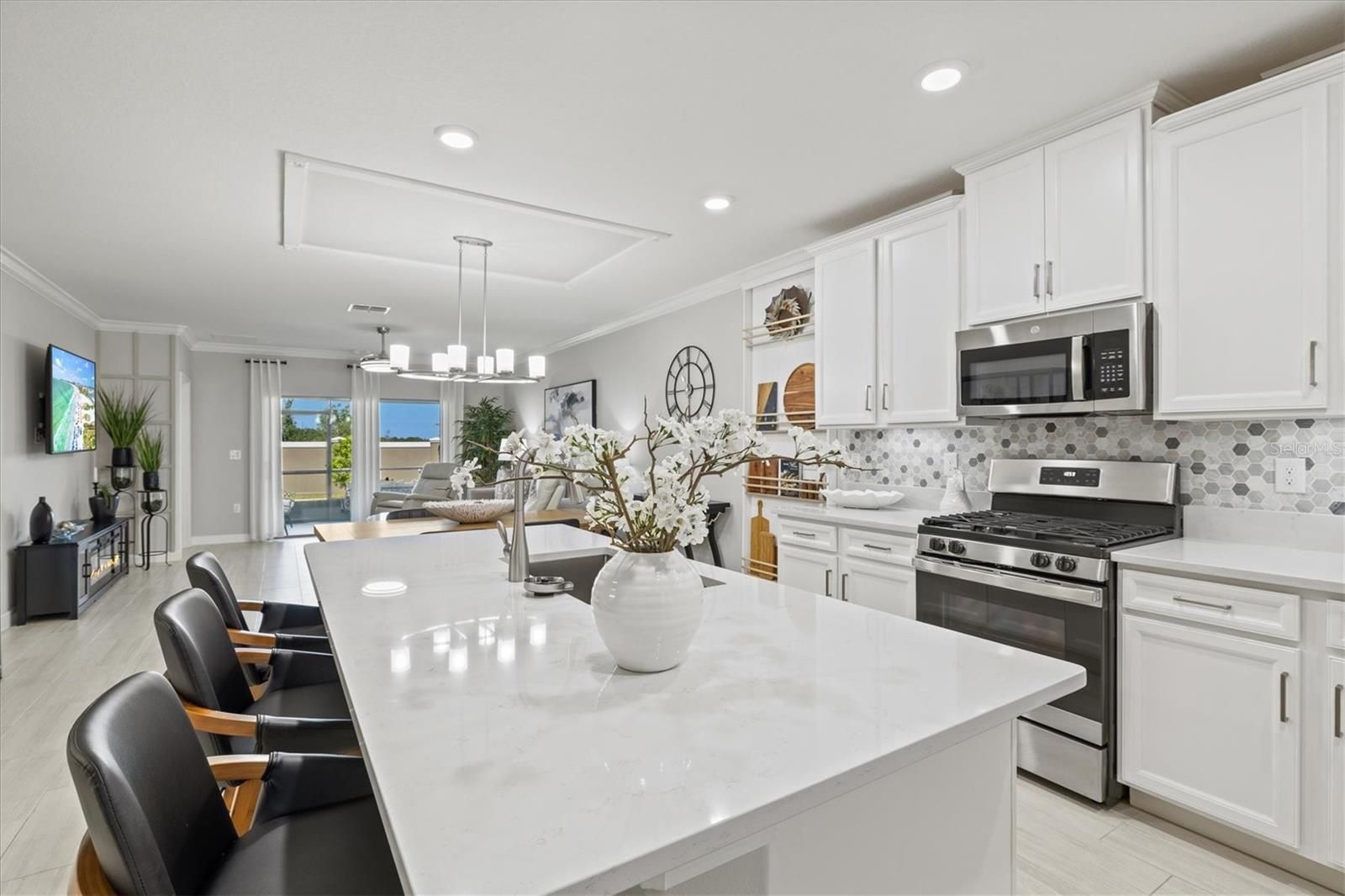 Live Like You’re on Vacation Every Day in This Stunning 55+ Villa! Welcome to the lifestyle you’ve been dreaming of! Located in the exclusive gated, golf cart-friendly community of Medley at Southshore Bay, this beautifully maintained 2-bedroom, 2-bathroom villa offers an exceptional blend of comfort, elegance, and maintenance-free living. Residents of this vibrant 55+ neighborhood enjoy resort-style amenities, including access to a breathtaking 5-acre crystal-clear lagoon—perfect for swimming, kayaking, paddle boarding, or simply relaxing at the swim-up bar. The private clubhouse is a social and recreational hub, offering a resort-style pool, pickle ball and bocce ball courts, grand ballroom, billiards room, state-of-the-art fitness center, and an inviting café and bar. A full calendar of social events ensures there's always something fun to do and new friends to meet. What’s Included in the HOA Dues? The monthly HOA fee covers: • Cable TV • High-speed internet • Lawn care • Irrigation • Exterior maintenance • Roof replacement This means you can embrace a truly worry-free, lock-and-leave lifestyle. Inside, the home is in pristine condition, reflecting the sellers’ pride of ownership and attention to detail. The open-concept layout flows effortlessly from the spacious living and dining area into a beautifully designed kitchen with: • White staggered cabinetry • Quartz countertops with soft grey veining • Octagon-tile backsplash • Walk-in pantry • Built-in display niche (perfect for charcuterie boards!) • Pendant lighting over the island • Deep stainless-steel sink with cup rinser • Sleek stainless steel appliances The primary suite is a peaceful retreat with a ceiling fan, large walk-in closet, and spa-inspired bath with dual vanities, a private water closet, and a fully tiled walk-in shower with glass enclosure. A second spacious bedroom and nearby full bath with a tiled tub/shower combo provide comfort and privacy for guests. Additional highlights include: • Dedicated laundry room with upper cabinetry • High-end finishes throughout • Maintenance-free exterior Whether you're seeking a full-time residence or a seasonal escape, this villa is ideal for those wanting low-maintenance living and high-quality amenities in one of Florida’s premier 55+ destinations. Don’t miss your chance to live the lagoon life. Schedule your private tour today and experience the perfect blend of relaxation, community, and luxury.