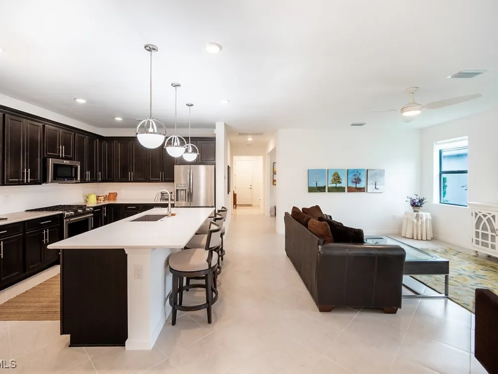 BEST TURN-KEY DEAL IN THE NEIGHBORHOOD! Tastefully appointed home in vibrant 55+ community for sale by snowbirds who are staying up north. This beautiful and gently-used 3 bedroom with den / 2 bath home of solid masonry construction was built in 2023 in a no-flood zone. The popular Mystique model smart home is pre-wired and tech ready. Open concept, it’s light and airy with 100k in upgrades. Gourmet kitchen with natural gas, spacious bedrooms, fully tiled, expanded lanai, great storage, extended garage. Unlike new builds sold bare, the home boasts contemporary furnishings, ceiling fans, lighting, window treatments, coordinated area rugs and much more. HOME WARRANTY INCLUDED. Oak Creek is a gated community with a staffed entranceway. The home is ideally located a short walk from the community’s resort-inspired swimming pool, spa, clubhouse with fitness center, craft & game rooms, pickleball & bocce courts, and restaurant. Neighborhood activities abound, orchestrated by Oak Creek’s fulltime lifestyle director. Conveniently located a mile from I-75, Oak Creek is a short drive to shopping, restaurants, beaches and excellent medical care. Please call for private showing.