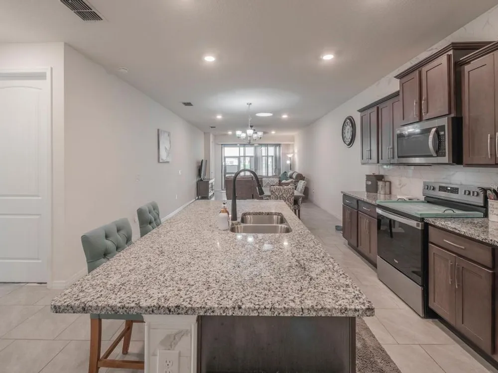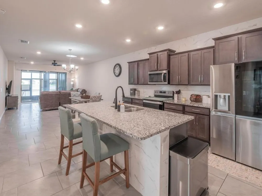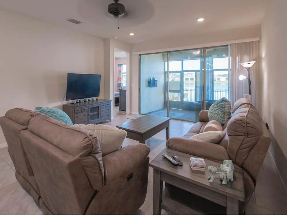 Resort-Style Living with Serene Pond Views in the 55+ Palms at Serenoa! Welcome home to this beautifully maintained 2-bedroom, 2-bath Cambridge model villa by DR Horton, offering 1,627 sq. ft. of thoughtfully designed living space in the gated, active community of The Palms at Serenoa. Enjoy peaceful pond views and low-maintenance living in this move-in ready furnished home featuring an open-concept layout, ideal for entertaining and everyday comfort. The spacious living and dining areas flow seamlessly into a modern kitchen equipped with granite countertops, stainless steel appliances, upgraded cabinetry, and a large island with breakfast bar seating. The private primary suite offers a quiet retreat with double walk-in closets and an en suite bath featuring a dual-sink vanity and walk-in shower. A second bedroom and full bath provide comfortable accommodations for guests. Need extra space? The flex room at the front of the home is perfect for a home office, hobby room, or study. Step outside to the covered patio with enclosed screen room—the perfect spot to unwind and take in the scenic water views. Additional features include tile flooring throughout main living areas and lawn care included with HOA fees, making upkeep a breeze. Residents of The Palms at Serenoa enjoy resort-style amenities including a zero-entry pool, clubhouse, fitness center, pickleball courts, and a dog park. All of this just minutes from shopping, dining, and convenient access to major roadways and Orlando’s world-famous theme parks. Don’t miss your chance to own this exceptional villa—schedule your private tour today!