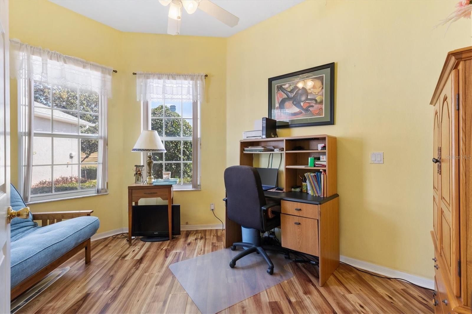 Located in the Beautiful 55+ Gated Golf Community of STONECREST, with all the amenities, adjacent to THE VILLAGES, Florida, this charming 2 Bedroom plus DEN, 2 Bath home offers the perfect blend of comfort, convenience, and carefree living with TILE Flooring throughout and exquisite LAMINATE Flooring in bedrooms. ROOF (2015). Relax on your screened LANAI overlooking the water, where you can enjoy breathtaking sunsets and watch golfers in the distance across the lake, a peaceful and picturesque setting to end each day. This home is situated in an area where the POA MAINTAINS the grounds, allowing you to truly enjoy every day without the worry of yard maintenance. Spend your time embracing the lifestyle instead of working in the yard. Stonecrest offers an incredible array of amenities, including four pools, one of which is an indoor Olympic-size pool, along with a spa, tennis courts, pickleball courts, softball field, bocce ball courts, and dog parks. The community is golf cart accessible to restaurants, BJ’s, banking, medical offices, shopping, and so much more, making everyday errands and outings easy and enjoyable. There’s never a dull moment unless you want one. Isn’t it time you started enjoying retirement at an affordable price? Don’t miss your opportunity to own this magical home and experience the lifestyle you deserve.