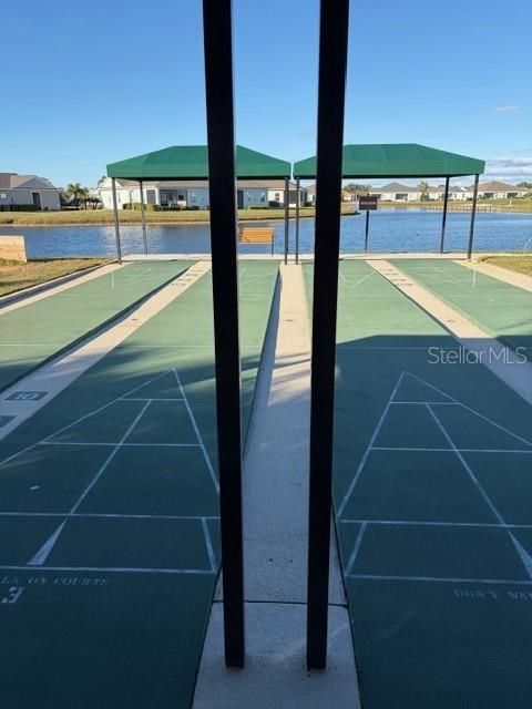 This fabulous and updated villa on the 10th hole overlooking the lake is available for you. Perfectly landscaped with shrubs in full bloom. Curbing outlines all the shrubs in the front with a beautiful island in the back with palm trees and bougainvillea's . No need to worry, flood insurance is not required as the community is not in a flood zone. The villa is graced with upgrades inside and out. Gutters surround the entire villa and the garage has sliding screens that add extra privacy as well as keeping the garage cool in the summer months. The back lanai screens are protected by motorized category five storm shutters. All windows and glass surfaces are protected with hurricane impact windows. There are no utility, cable or electrical boxes on the premises. This villa yard space is adequately separated from the next one. The garage and lanai have Epoxy floors and the garage has an added slop sink for multiple use. As you enter the high ceilings are evident. The updated kitchen has Shaker Cabinets and Granite counter tops that is accented by subway tiles as back splash. Recessed lights go from the kitchen to the hallway. The dining room has one of several light fixtures as well as the living room. Primary bedroom overlooks the lake and also has a very beautiful installed light fixture. Two huge walking closets in master bedroom lead to the master bath. It has a Roman style shower , separate rectangular sinks along with Shaker cabinets and Corian counter tops. Guest bedroom has installed light/fan combination and the guest bathroom has a shower tub combination with Shaker Cabinets, rectangular sink and Corian counter tops. The den/study is the right size . The laundry room has a linen closet, shelves and room for a small desk or table. The Lanai also has an installed fan and the electrical storm screens give security from hurricane and protection from sun and rain. The community has an assortment of activities to fit different lifestyles. Tennis, pickleball, pool , shuffleboard, bocce ball, lawn bowling, horseshoes, Billard, ping pong are just a few activities. There is also bingo, move nights, yoga, dancing lessons, a library, gym and a Huge Olympic swimming pool. In addition, ceramic classes, greeting card designs and concerts, dances, tours, trivia contests and of course an 18 hole par 3 golf course. The Lions Den restaurant is recently remodeled for dinner, lunch or drinks. A shopping plaza is just a golf cart ride away (half mile) There is a bank, pharmacy, PET supermarket, ice cream shop, nail salon and the newly opened ALDI Supermarket. Kings Gate is the place to be and there is a Lifestyle Director who is full time adding new activities for the community as needed This villa is waiting for you so you can enjoy the unique Kings Gate lifestyle