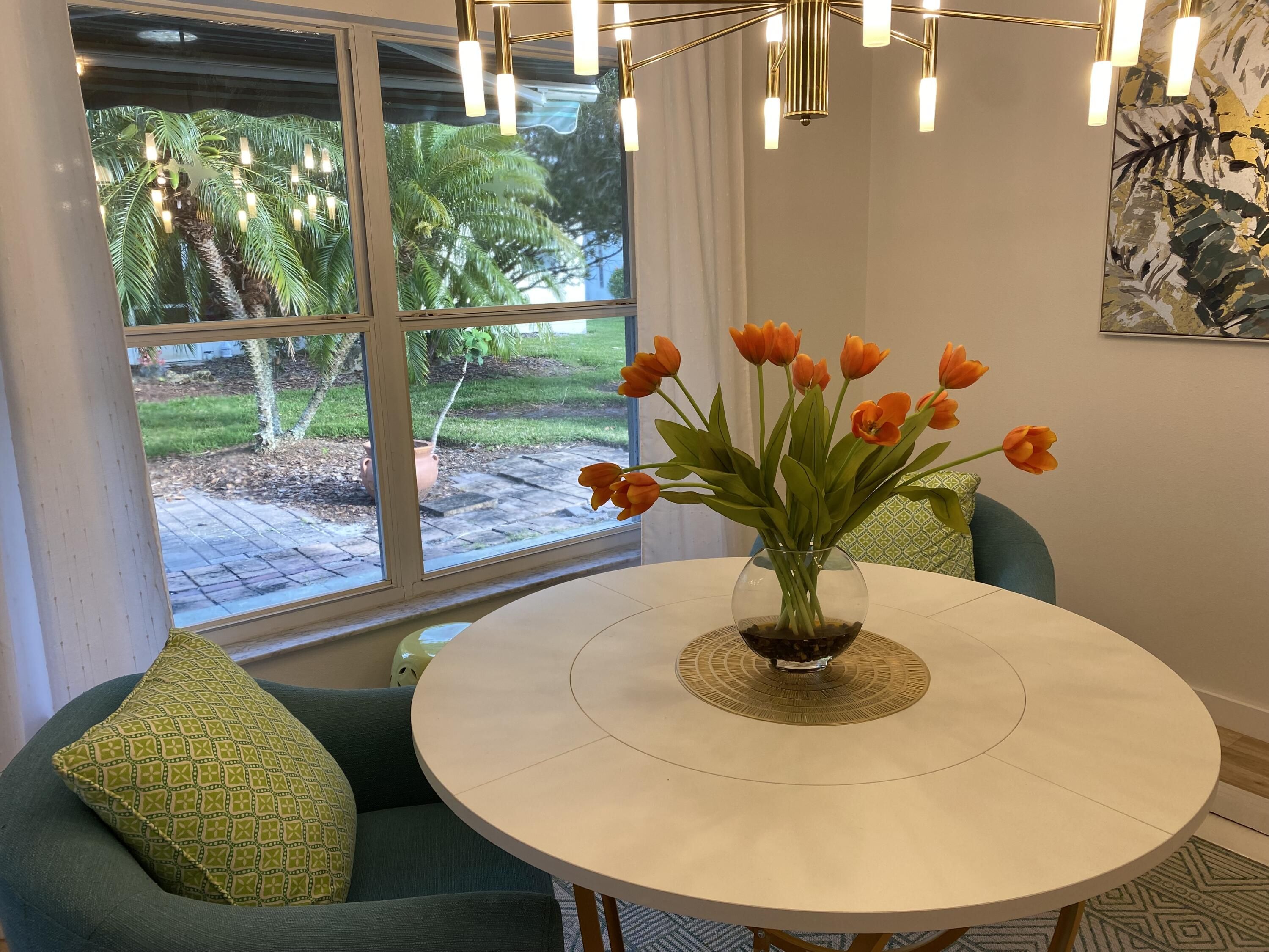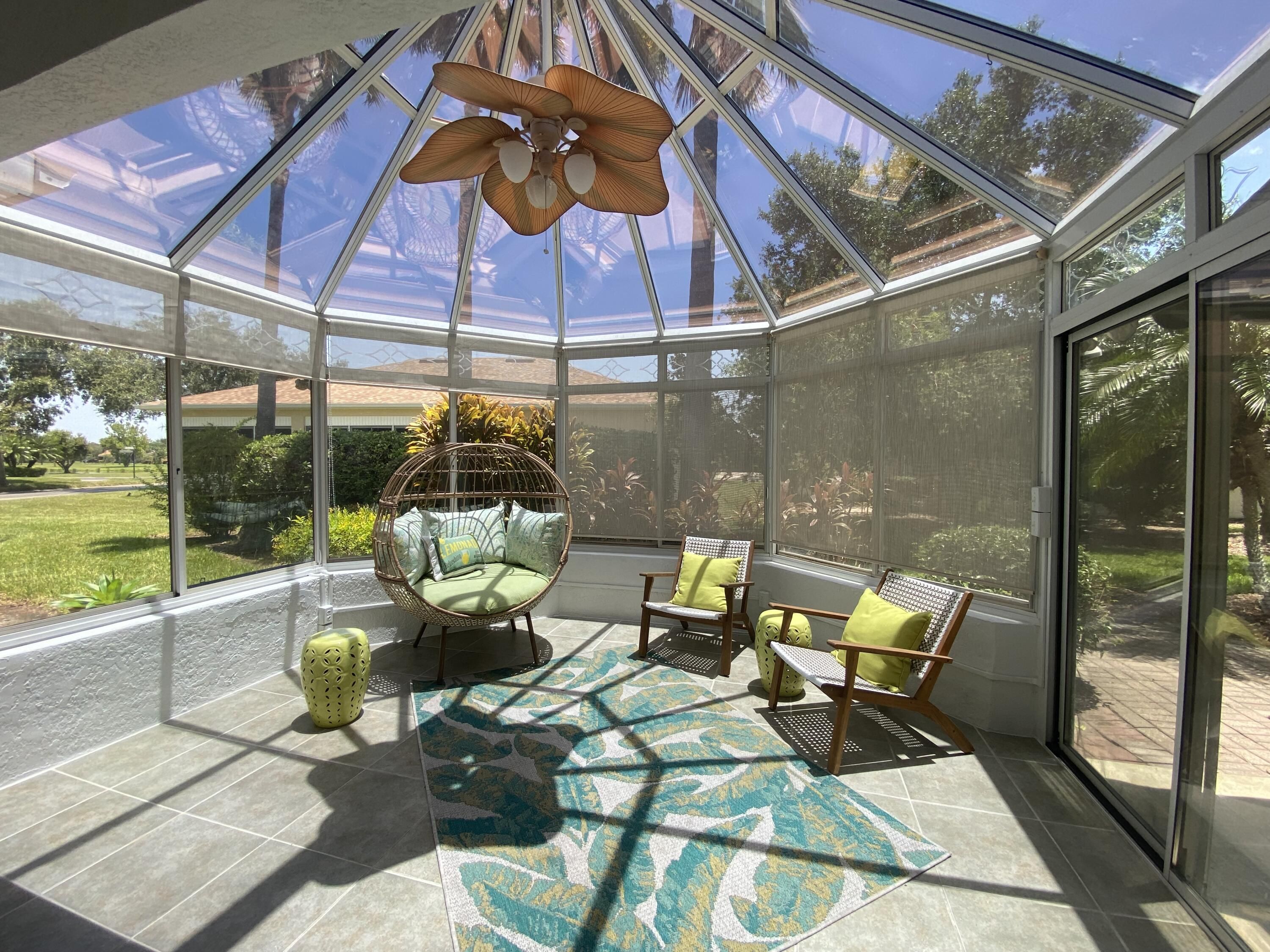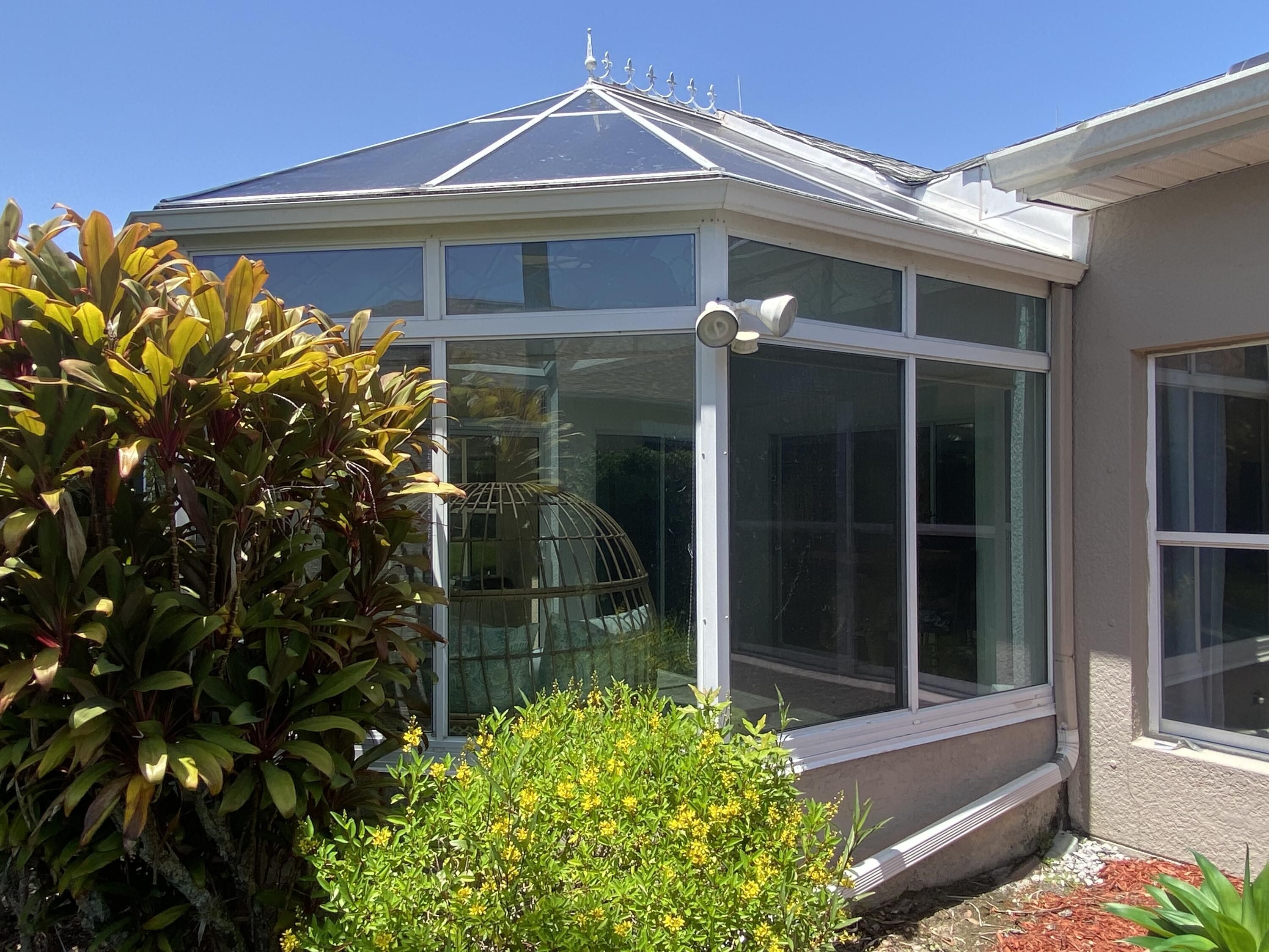 100% Designer Remodel! New flooring, cabinets, lighting, tile, paint, trim, kitchen & baths! HUGE corner lot with the nicest neighbors.Water views & moon views from the glass conservatory overlooking a 122' garden. Designer kitchen has new floating shelves & cabinets with quartz countertops & NEW appliances. The 6 person seating peninsula will be the center of this entertainer's dream home. Custom tile work. Feature walls in the den, living room and master bedroom. New garage epoxy floor.Butcher block laundry folding counter. Phantom screen on the stain glass front door & retractable canopy over the back patio. Enjoy the restaurants, gym, active life style in the golf course & nature community of gated Solivita!
