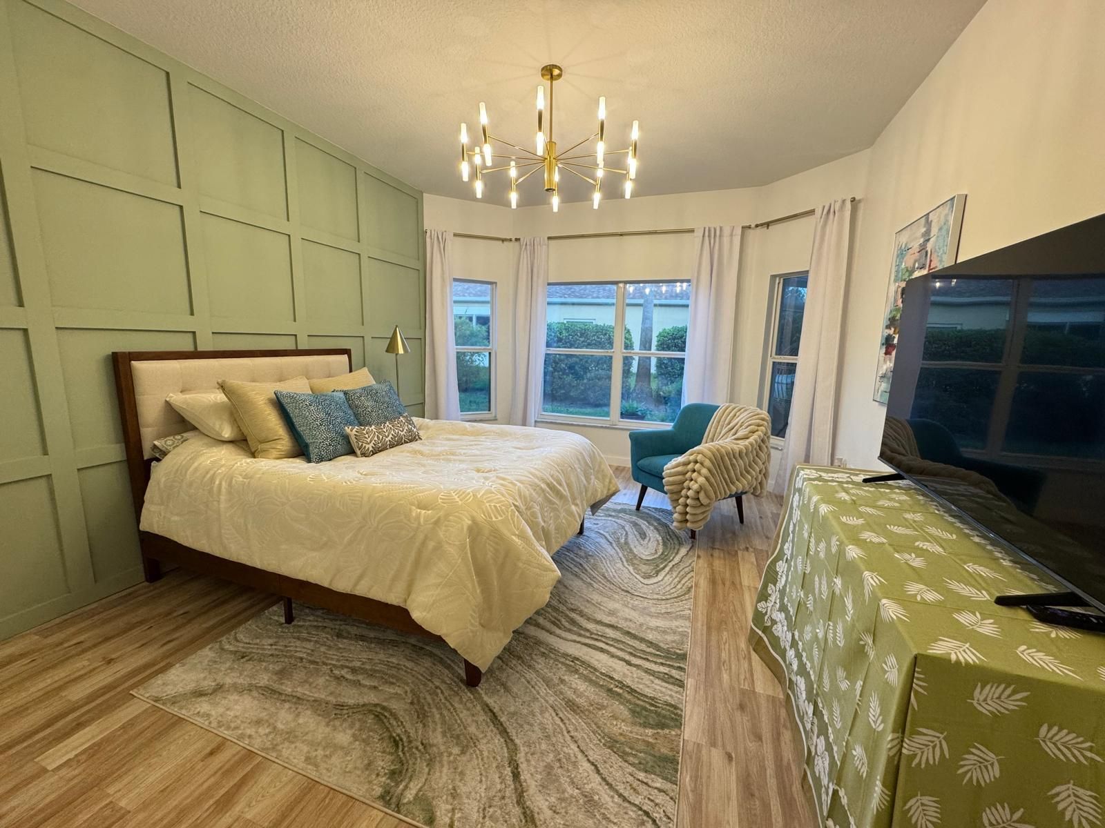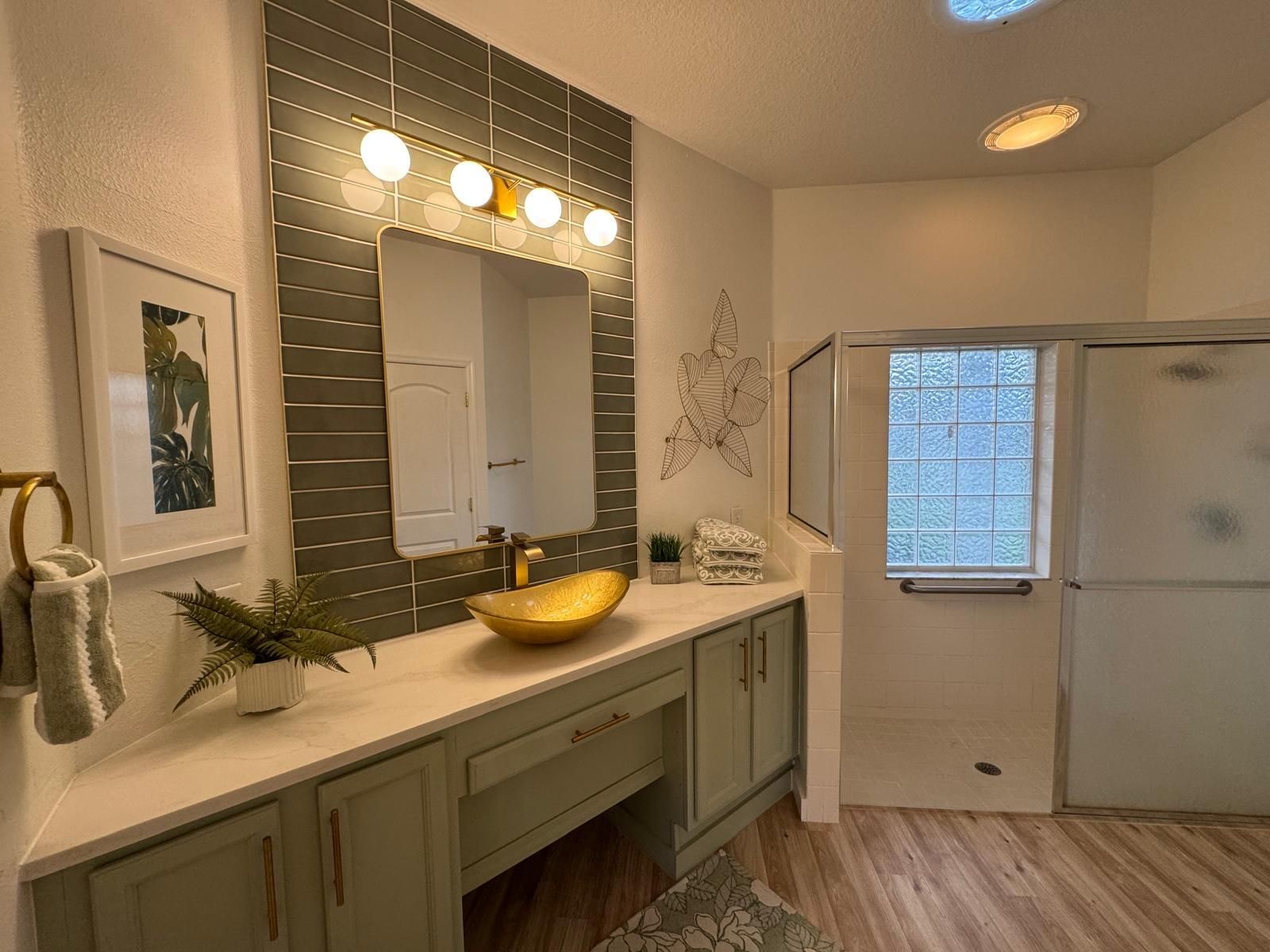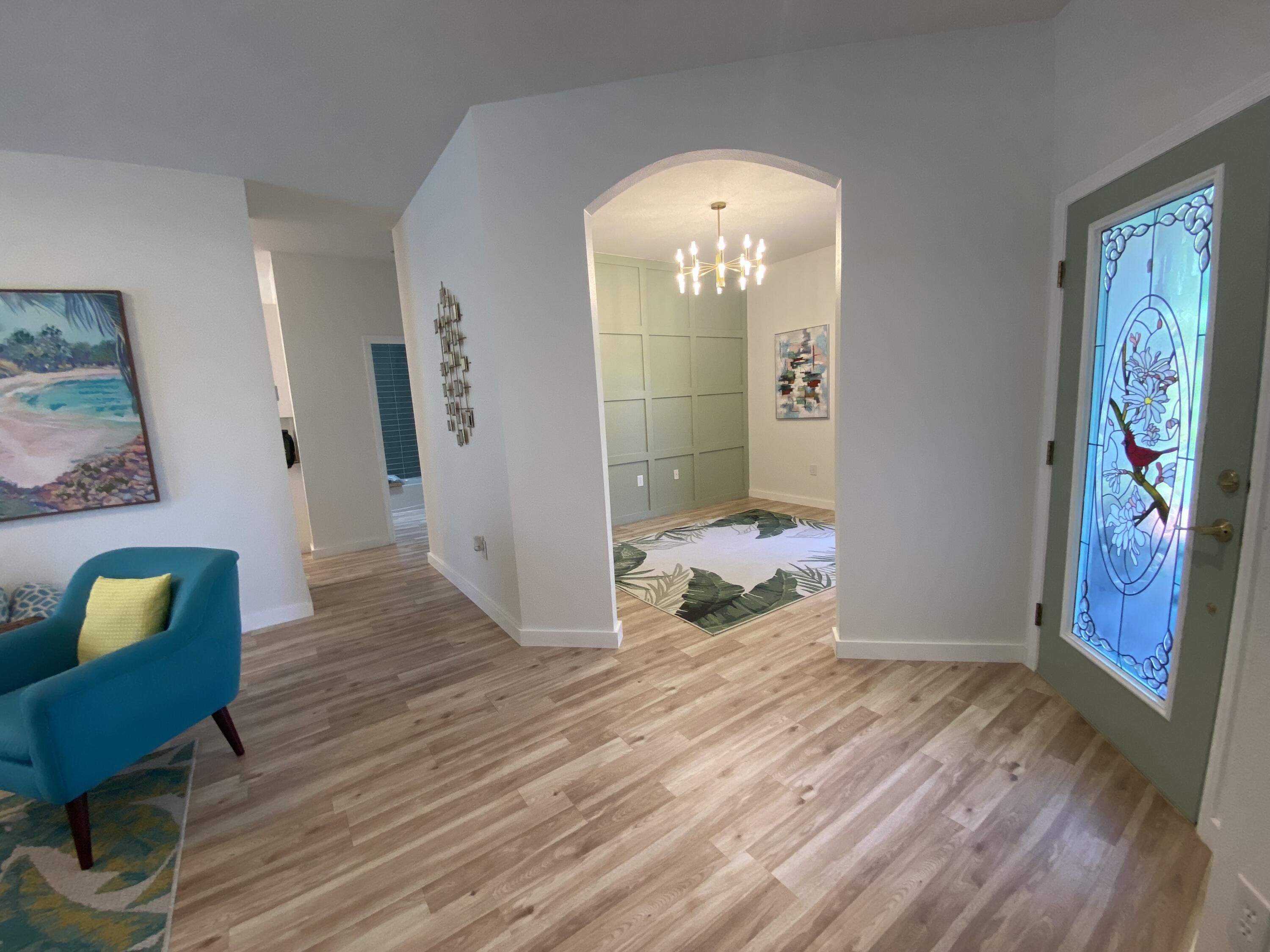 100% Designer Remodel! New flooring, cabinets, lighting, tile, paint, trim, kitchen & baths! HUGE corner lot with the nicest neighbors.Water views & moon views from the glass conservatory overlooking a 122' garden. Designer kitchen has new floating shelves & cabinets with quartz countertops & NEW appliances. The 6 person seating peninsula will be the center of this entertainer's dream home. Custom tile work. Feature walls in the den, living room and master bedroom. New garage epoxy floor.Butcher block laundry folding counter. Phantom screen on the stain glass front door & retractable canopy over the back patio. Enjoy the restaurants, gym, active life style in the golf course & nature community of gated Solivita!