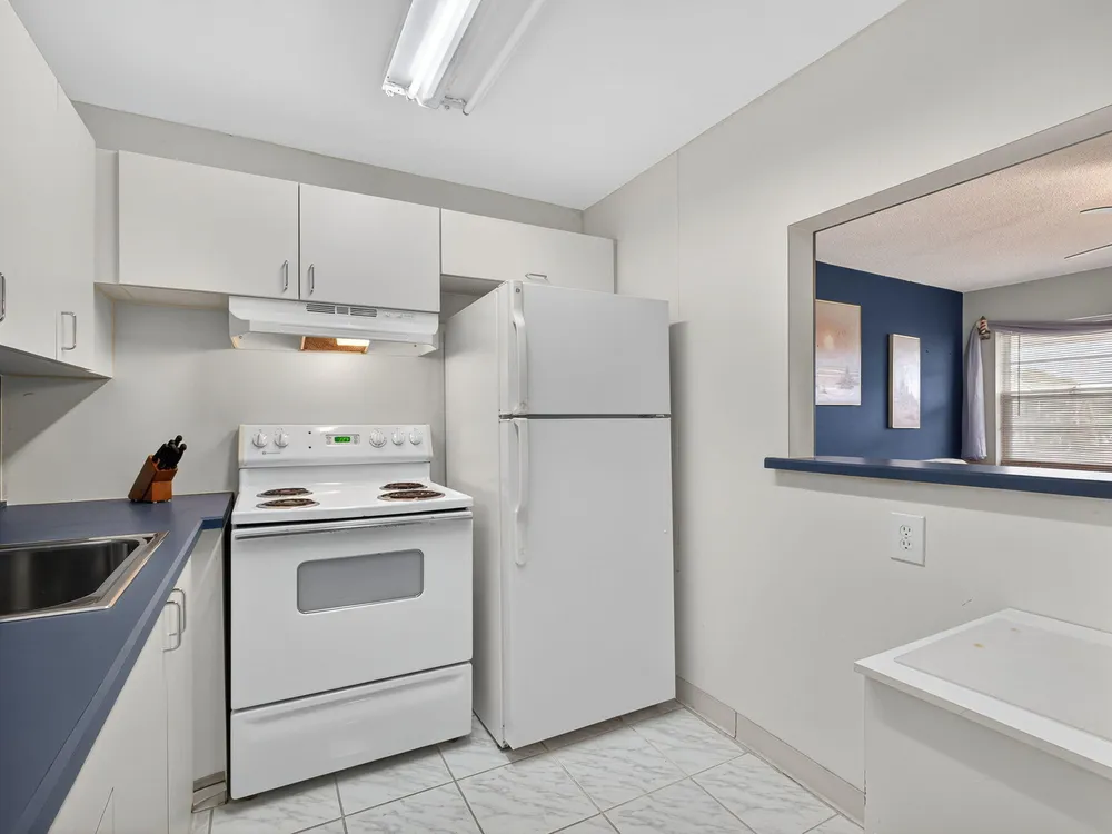 CHARMING,FURNISHED 1 BED/1 BATH CONDO ON 2ND FLOOR FEATURING CERAMIC TILE THROUGHOUT THE LIVING AREA AND A COZY CARPETED BEDROOM. THIS UNIT IS BEAUTIFULLY PAINTED IN SOOTHING LIGHT AND DARK BLUE TONES AND HAS AN UPDATED ALL WHITE KITCHEN AND MODERN BATHROOM WITH STEP IN SHOWER. IT'S WELL TAKEN CARE OF, VERY CLEAN AND INCLUDES HURRICANE SHUTTERS FOR ADDED SAFETY. WELL MANAGED AND FRIENDLY ASSOCIATION.THE ASSOCIATION OFFERS A LOVELY PATIO AREA TO RELAX AND ENJOY THE PEACEFUL SURROUNDINGS. CLOSE TO THE WEST GATE AND THE CAMDEN POOL. VCOME & ENJOY RESORT STYLE LIVING IN THIS GATED COMMUNITY FOR ADULTS 55 +. CLUBHOUSE features a theater, indoor pool, card room, community/party room, billiard room ,shuffle board ,tennis , pickleball ,bocce and two outdoor pools. Numerous heated outdoor