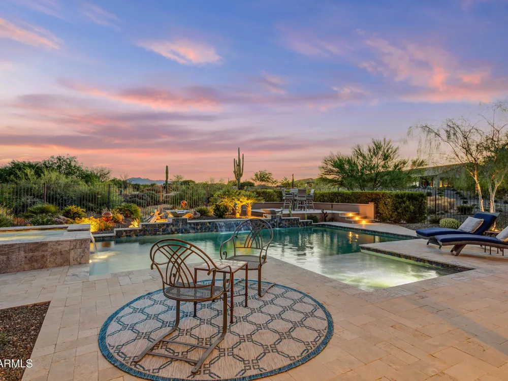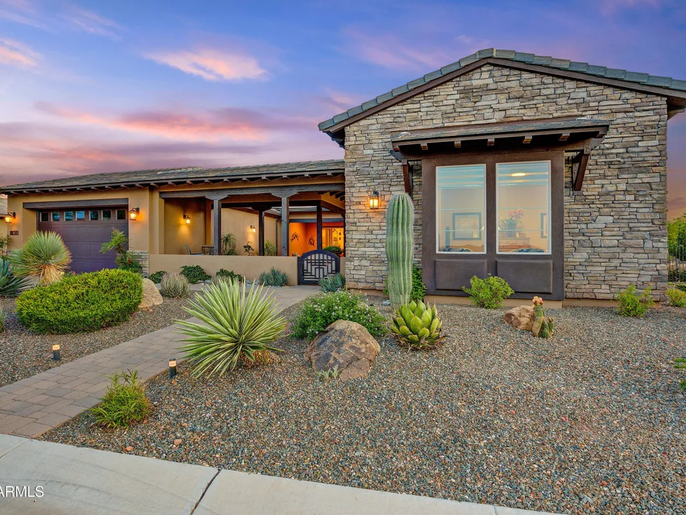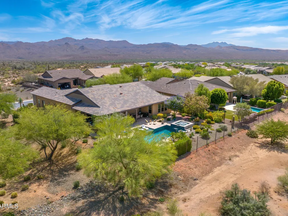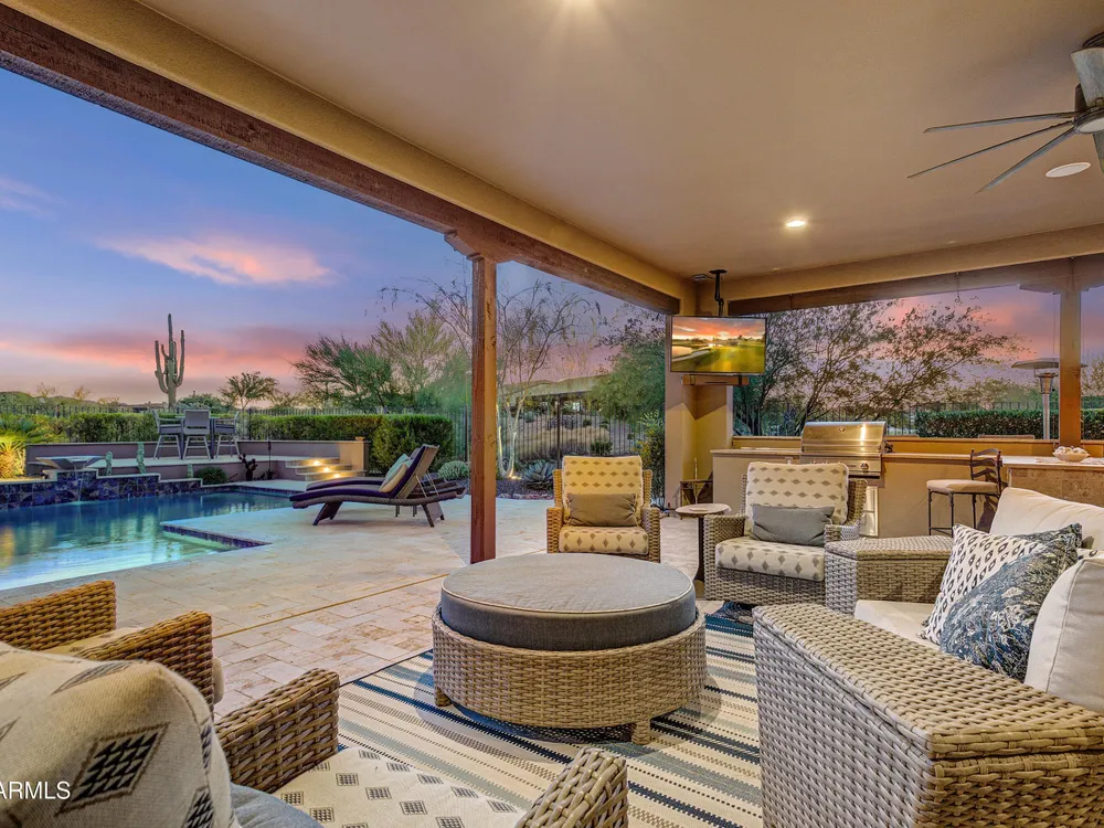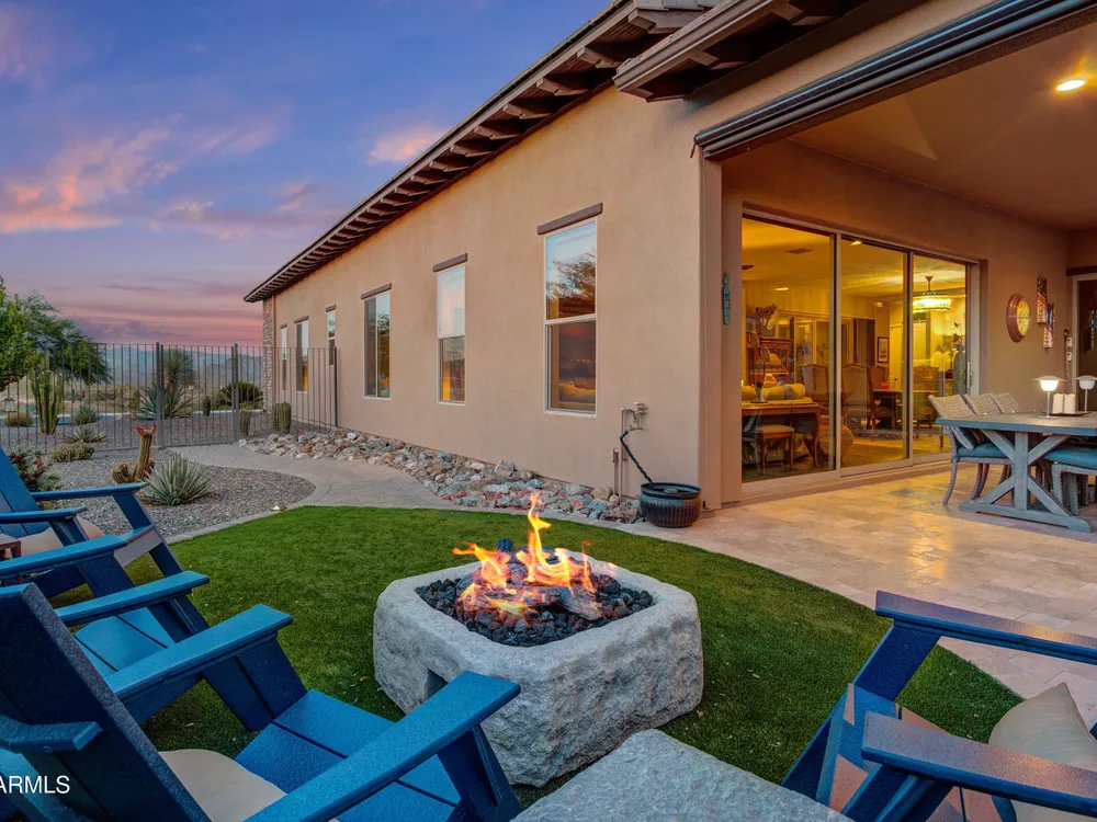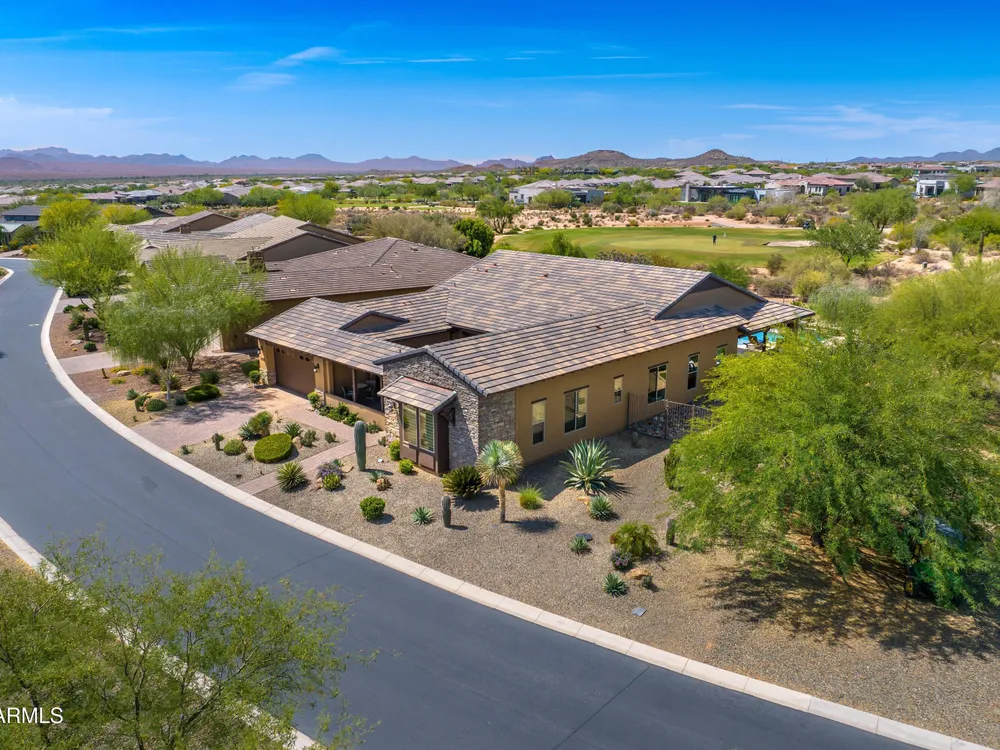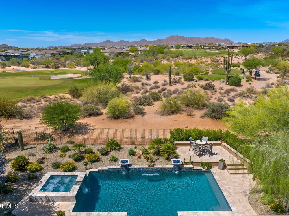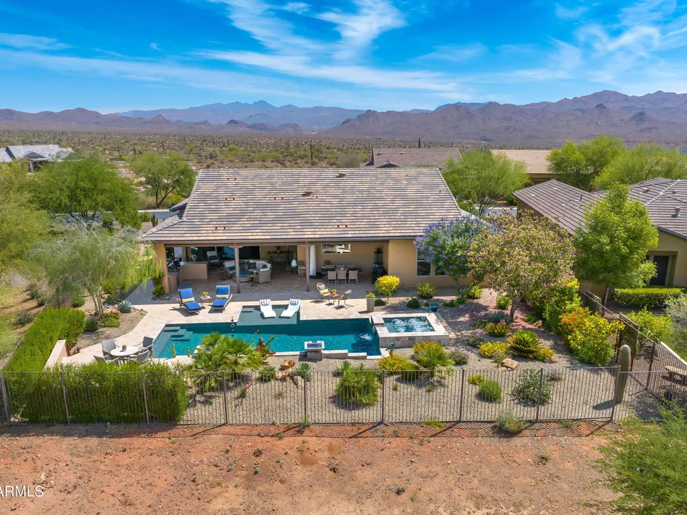 CORNER GOLF COURSE HOMESITE & BREATHTAKING MOUNTAIN & SUNSET VIEWS! Experience Luxury Living in this beautiful Residence located in the coveted Trilogy at Verde River. This unique Vela floorplan offers 3 bedrooms, 3.5 bathrooms, an office, and a 4-car garage. This stunning home is perched on the oversized 14,695 Sq. Ft. very Private Corner Homesite and is designed to capture UNPARALLELED GOLF COURSE & MOUNTAIN VIEWS and dramatic EVER-CHANGING ARIZONA SUNSETS from both the front and back patios. Front Courtyard leads you into an open floor plan with an alluring great room, striking kitchen, and open dining room. Gourmet GE Monogram Appliances, large granite center island, custom lighting and stunning cabinetry in the kitchen offer a rich and upgraded look. Exuding warmth and sophistication this home is designed to feature distinctive elements such as large Den with custom built in cabinets, upgraded flooring throughout, custom window treatments, both Water Softener and Reverse Osmosis and so much more. The expansive primary bedroom and bathroom offer a luxurious retreat, complete with a tub, shower, and dual vanity. Both guest rooms come with their own en suite bath, ensuring comfort and privacy. The entire Great Room area of the home features sliding Wall of Glass and opens for an optimal indoor/outdoor experience. Spacious outdoor living has an extended covered patio with POOL & SPA , travertine tile and a custom landscaping. The covered patio features an outdoor kitchen with built-in BBQ & TV creating the perfect outdoor retreat. Did I mention THE PRIVACY & THE VIEW? IT'S MAGNIFICENT!! Resort Lifestyle and a home to be treasured and appreciated! Trilogy at Verde River offers upscale Resort living at its finest and the very best of all possible worlds, close to the conveniences of affluent North Scottsdale yet secreted within the pristine privacy of the Sonoran Desert. The amenities are World Class with Tom Lehman inspired eighteen-hole Golf course, tennis courts, pickle ball courts, and bocce ball, heated lap pool and Resort style swimming pool, hot tub, Afterburn fitness center, Helen's demonstration Kitchen for cooking classes and a 7.5 acre dog park. The community center has casual poolside dining at Eddy's Diner and gourmet dining at award-winning Needle Rock Kitchen and Tap, Alvea Spa with full-service Salon and Spa amenities, Art Loft and events center. Trilogy at Verde River is adjacent to the Tonto National Forest and is situated in the middle of miles and miles of hiking and biking trails. Whether you're seeking a second, winter home, or will live here year-round, Trilogy at Verde River is an ideal distance from the hustle and bustle of North Scottsdale. You'll love the Resort living! What memories will you make?
