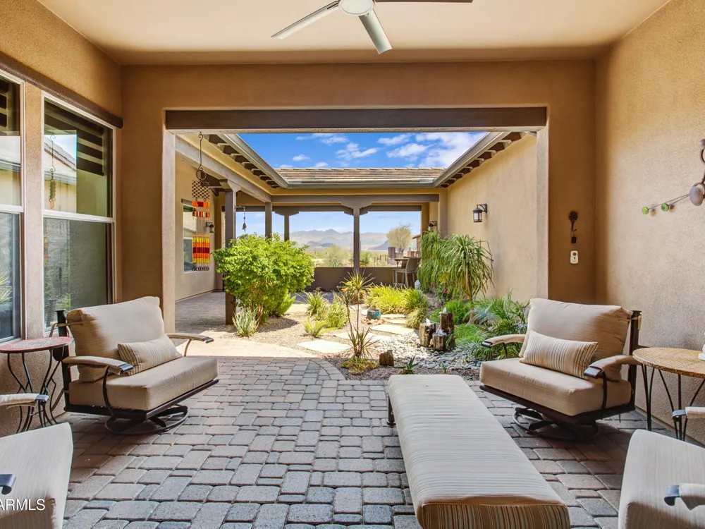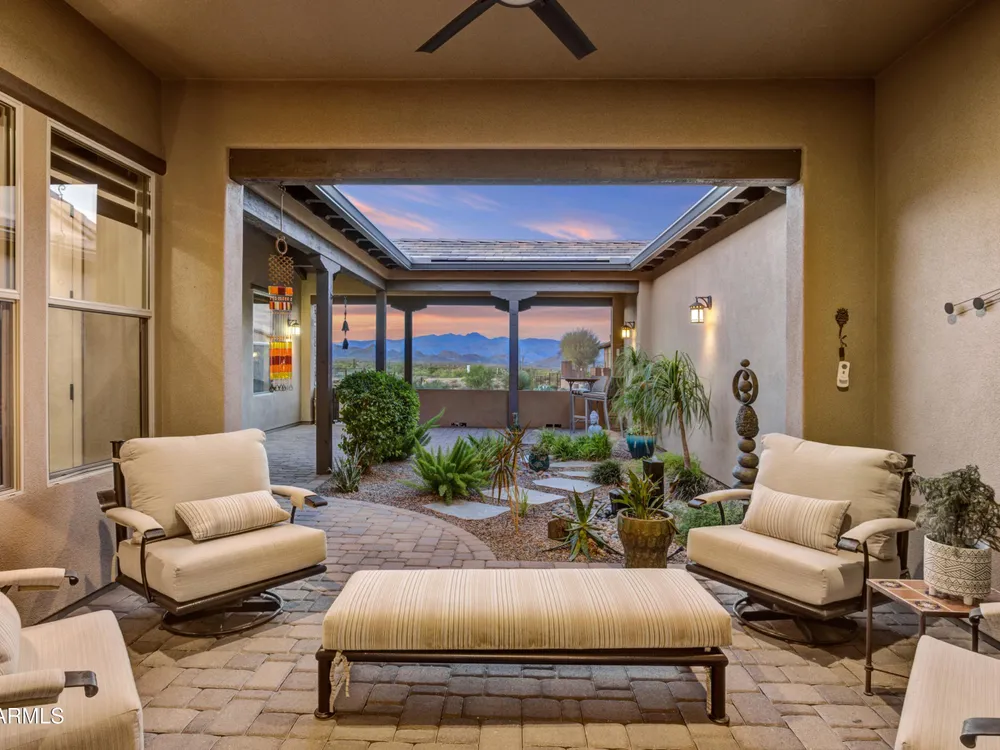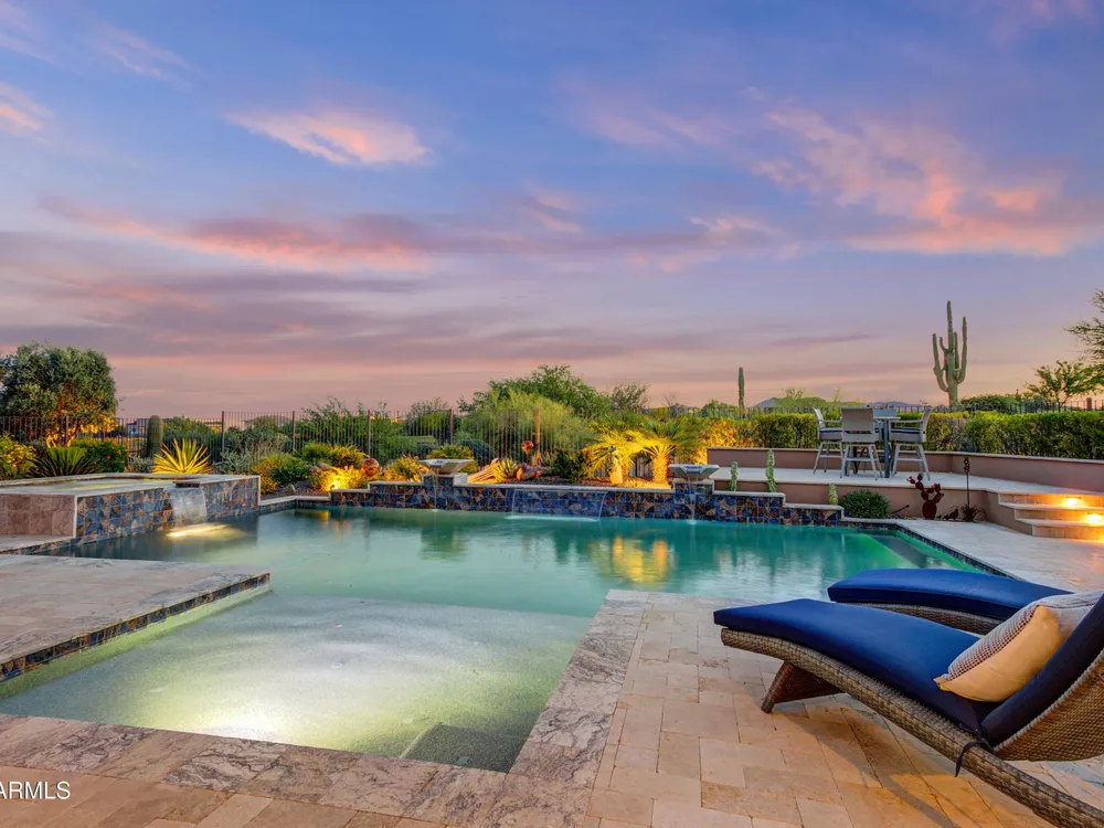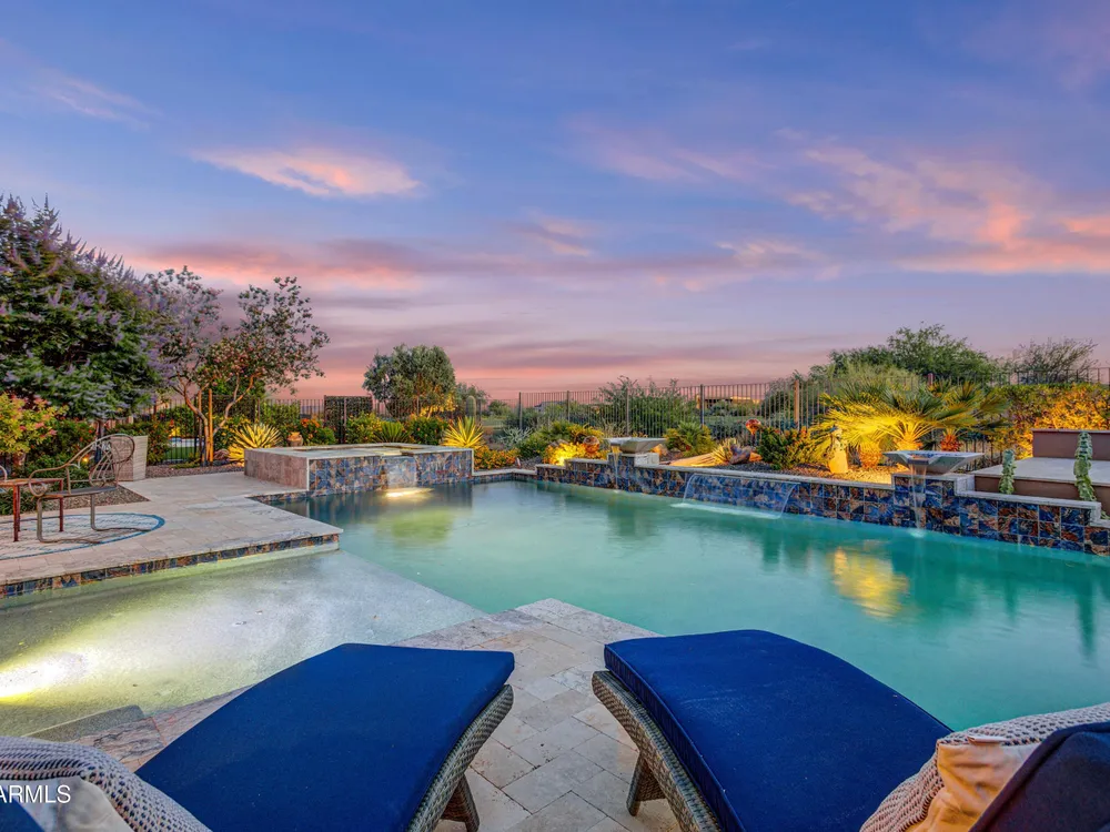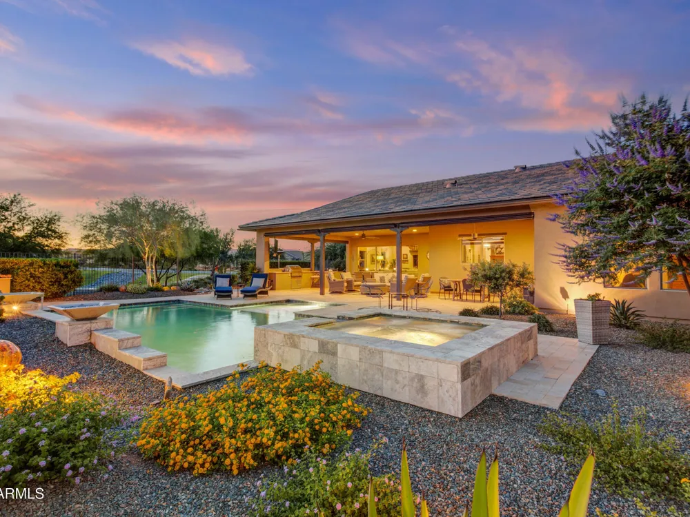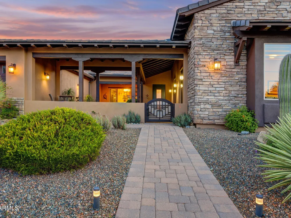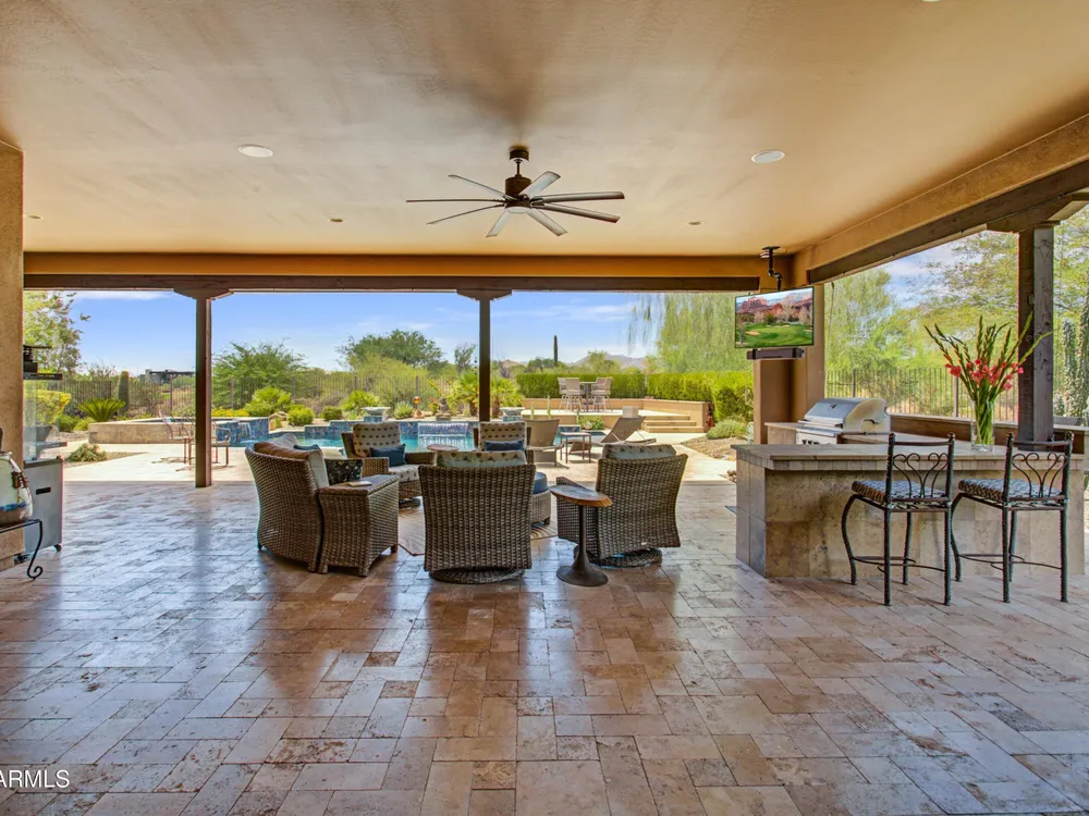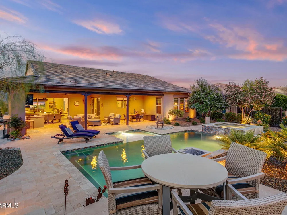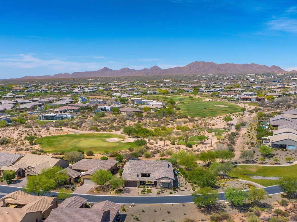 CORNER GOLF COURSE HOMESITE & BREATHTAKING MOUNTAIN & SUNSET VIEWS! Experience Luxury Living in this beautiful Residence located in the coveted Trilogy at Verde River. This unique Vela floorplan offers 3 bedrooms, 3.5 bathrooms, an office, and a 4-car garage. This stunning home is perched on the oversized 14,695 Sq. Ft. very Private Corner Homesite and is designed to capture UNPARALLELED GOLF COURSE & MOUNTAIN VIEWS and dramatic EVER-CHANGING ARIZONA SUNSETS from both the front and back patios. Front Courtyard leads you into an open floor plan with an alluring great room, striking kitchen, and open dining room. Gourmet GE Monogram Appliances, large granite center island, custom lighting and stunning cabinetry in the kitchen offer a rich and upgraded look. Exuding warmth and sophistication this home is designed to feature distinctive elements such as large Den with custom built in cabinets, upgraded flooring throughout, custom window treatments, both Water Softener and Reverse Osmosis and so much more. The expansive primary bedroom and bathroom offer a luxurious retreat, complete with a tub, shower, and dual vanity. Both guest rooms come with their own en suite bath, ensuring comfort and privacy. The entire Great Room area of the home features sliding Wall of Glass and opens for an optimal indoor/outdoor experience. Spacious outdoor living has an extended covered patio with POOL & SPA , travertine tile and a custom landscaping. The covered patio features an outdoor kitchen with built-in BBQ & TV creating the perfect outdoor retreat. Did I mention THE PRIVACY & THE VIEW? IT'S MAGNIFICENT!! Resort Lifestyle and a home to be treasured and appreciated! Trilogy at Verde River offers upscale Resort living at its finest and the very best of all possible worlds, close to the conveniences of affluent North Scottsdale yet secreted within the pristine privacy of the Sonoran Desert. The amenities are World Class with Tom Lehman inspired eighteen-hole Golf course, tennis courts, pickle ball courts, and bocce ball, heated lap pool and Resort style swimming pool, hot tub, Afterburn fitness center, Helen's demonstration Kitchen for cooking classes and a 7.5 acre dog park. The community center has casual poolside dining at Eddy's Diner and gourmet dining at award-winning Needle Rock Kitchen and Tap, Alvea Spa with full-service Salon and Spa amenities, Art Loft and events center. Trilogy at Verde River is adjacent to the Tonto National Forest and is situated in the middle of miles and miles of hiking and biking trails. Whether you're seeking a second, winter home, or will live here year-round, Trilogy at Verde River is an ideal distance from the hustle and bustle of North Scottsdale. You'll love the Resort living! What memories will you make?