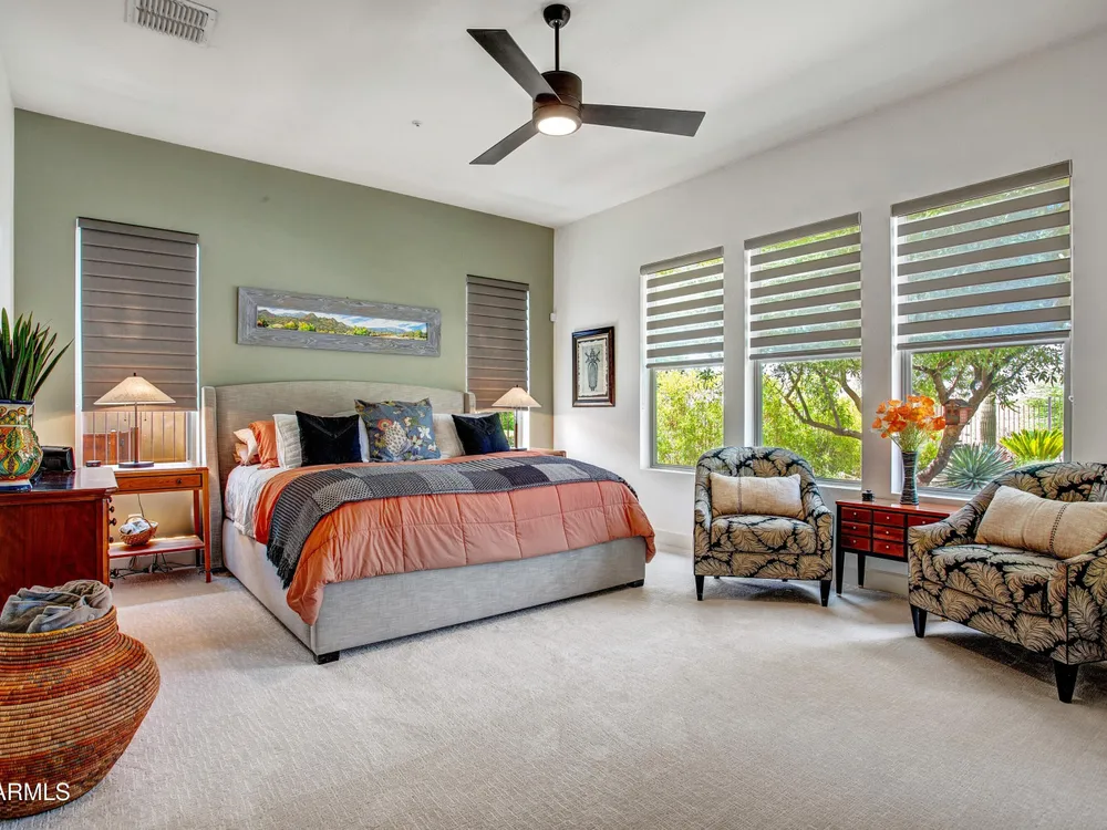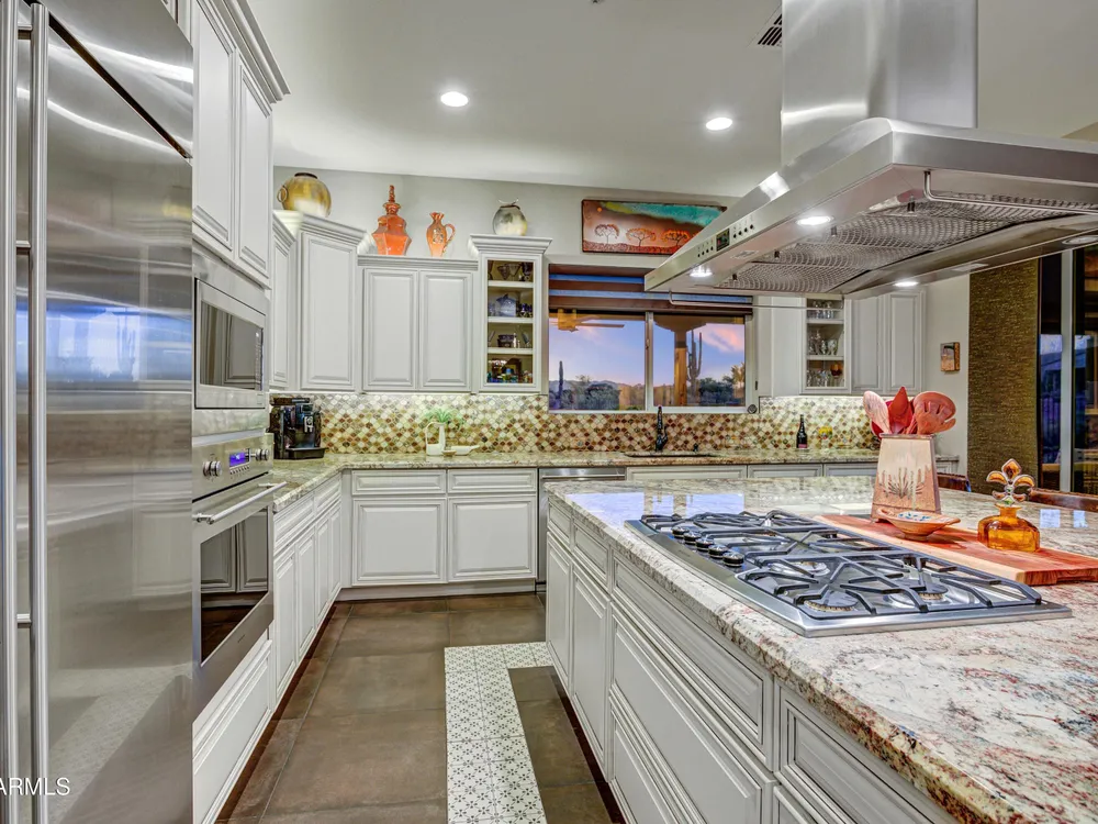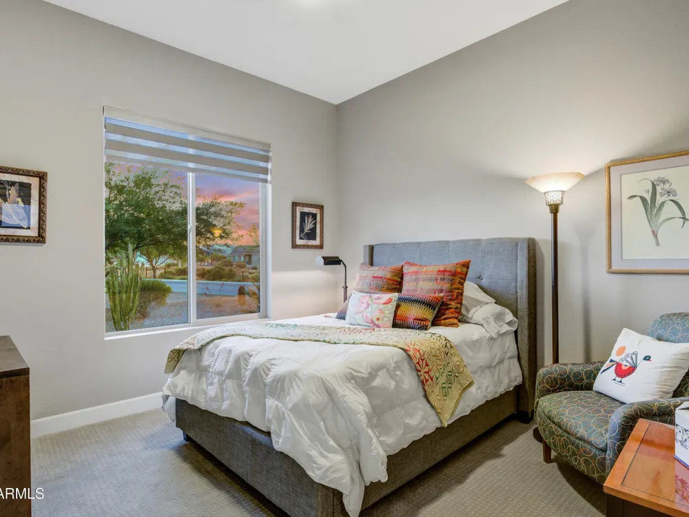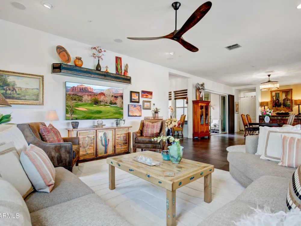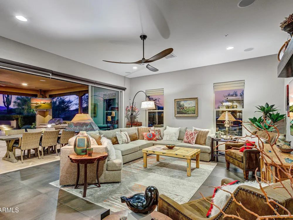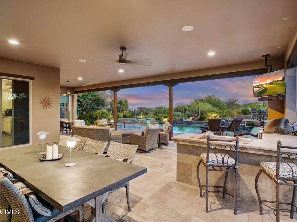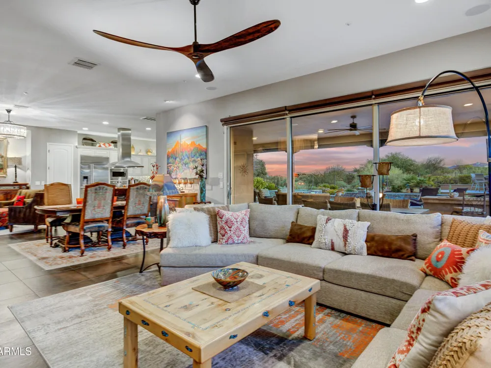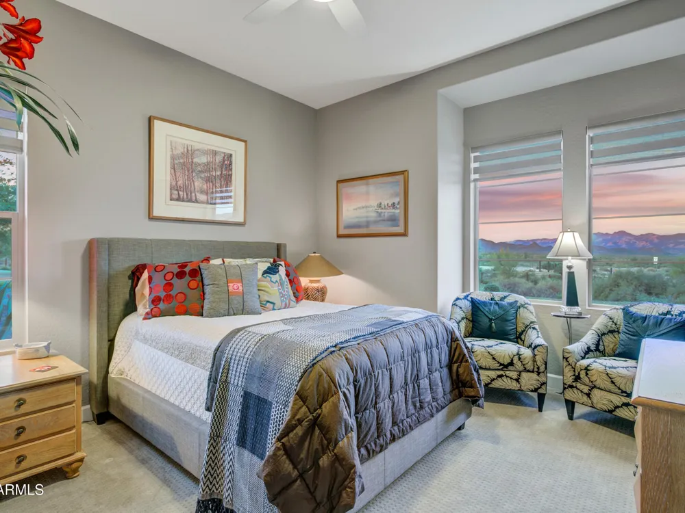 CORNER GOLF COURSE HOMESITE & BREATHTAKING MOUNTAIN & SUNSET VIEWS! Experience Luxury Living in this beautiful Residence located in the coveted Trilogy at Verde River. This unique Vela floorplan offers 3 bedrooms, 3.5 bathrooms, an office, and a 4-car garage. This stunning home is perched on the oversized 14,695 Sq. Ft. very Private Corner Homesite and is designed to capture UNPARALLELED GOLF COURSE & MOUNTAIN VIEWS and dramatic EVER-CHANGING ARIZONA SUNSETS from both the front and back patios. Front Courtyard leads you into an open floor plan with an alluring great room, striking kitchen, and open dining room. Gourmet GE Monogram Appliances, large granite center island, custom lighting and stunning cabinetry in the kitchen offer a rich and upgraded look. Exuding warmth and sophistication this home is designed to feature distinctive elements such as large Den with custom built in cabinets, upgraded flooring throughout, custom window treatments, both Water Softener and Reverse Osmosis and so much more. The expansive primary bedroom and bathroom offer a luxurious retreat, complete with a tub, shower, and dual vanity. Both guest rooms come with their own en suite bath, ensuring comfort and privacy. The entire Great Room area of the home features sliding Wall of Glass and opens for an optimal indoor/outdoor experience. Spacious outdoor living has an extended covered patio with POOL & SPA , travertine tile and a custom landscaping. The covered patio features an outdoor kitchen with built-in BBQ & TV creating the perfect outdoor retreat. Did I mention THE PRIVACY & THE VIEW? IT'S MAGNIFICENT!! Resort Lifestyle and a home to be treasured and appreciated! Trilogy at Verde River offers upscale Resort living at its finest and the very best of all possible worlds, close to the conveniences of affluent North Scottsdale yet secreted within the pristine privacy of the Sonoran Desert. The amenities are World Class with Tom Lehman inspired eighteen-hole Golf course, tennis courts, pickle ball courts, and bocce ball, heated lap pool and Resort style swimming pool, hot tub, Afterburn fitness center, Helen's demonstration Kitchen for cooking classes and a 7.5 acre dog park. The community center has casual poolside dining at Eddy's Diner and gourmet dining at award-winning Needle Rock Kitchen and Tap, Alvea Spa with full-service Salon and Spa amenities, Art Loft and events center. Trilogy at Verde River is adjacent to the Tonto National Forest and is situated in the middle of miles and miles of hiking and biking trails. Whether you're seeking a second, winter home, or will live here year-round, Trilogy at Verde River is an ideal distance from the hustle and bustle of North Scottsdale. You'll love the Resort living! What memories will you make?