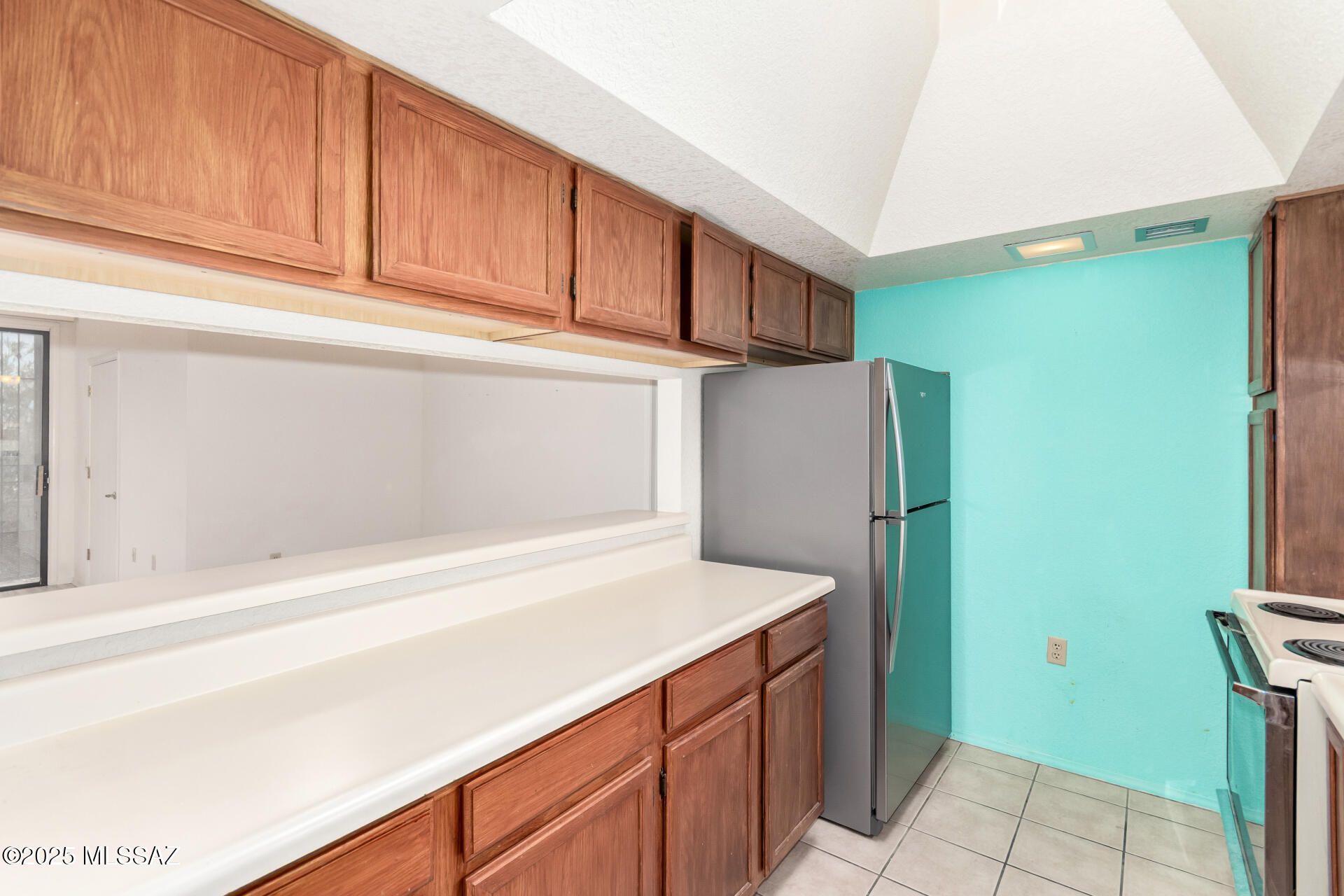 A light, bright end-unit townhome in a friendly 55+ community with amenities that make every day feel like vacation. Perched on a high lot with beautiful views of the Tucson Mountains, this home offers a wonderfully spacious Great Room with plenty of room for both living & dining. Lg sliding glass doors bring in natural light and open to a private outdoor area--perfect for enjoying Arizona sunsets. The galley kitchen features ample cabinet space & convenient pass-through to the dining area. The primary bedroom has a charming window seat, ideal for reading, or taking in peaceful morning light. As an end unit, you'll appreciate extra privacy. The community is packed w/lifestyle perks: pickleball courts, a refreshing pool & spa and a recreation center where neighbors become friends.