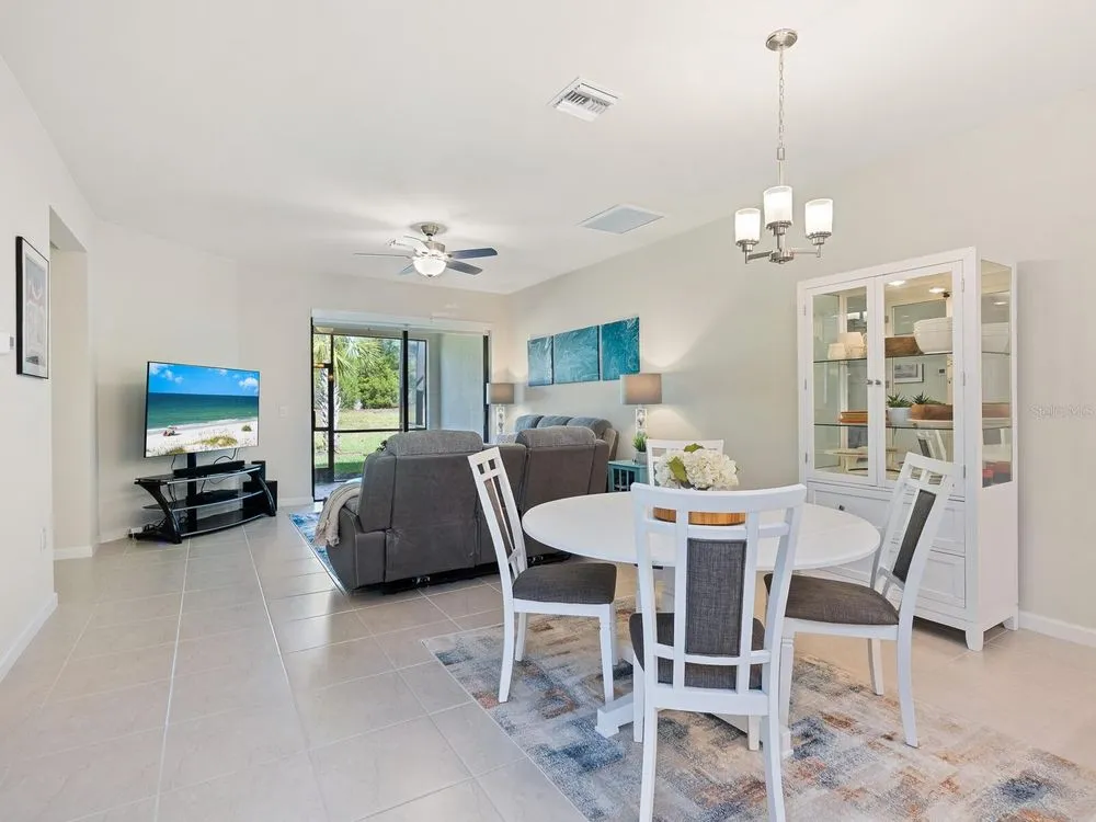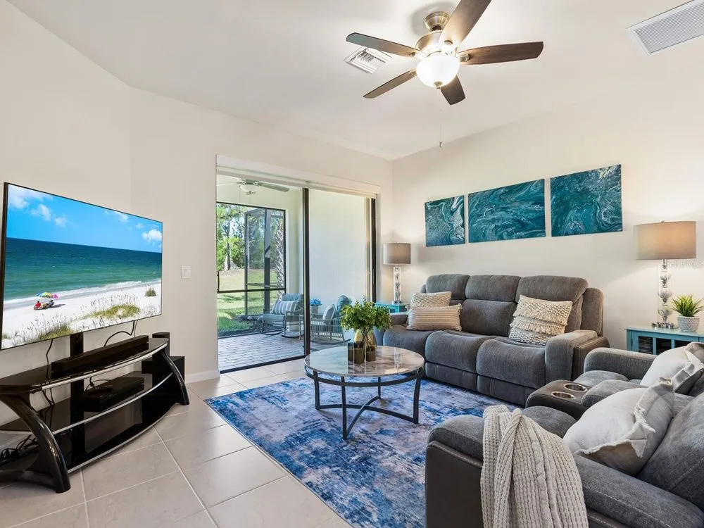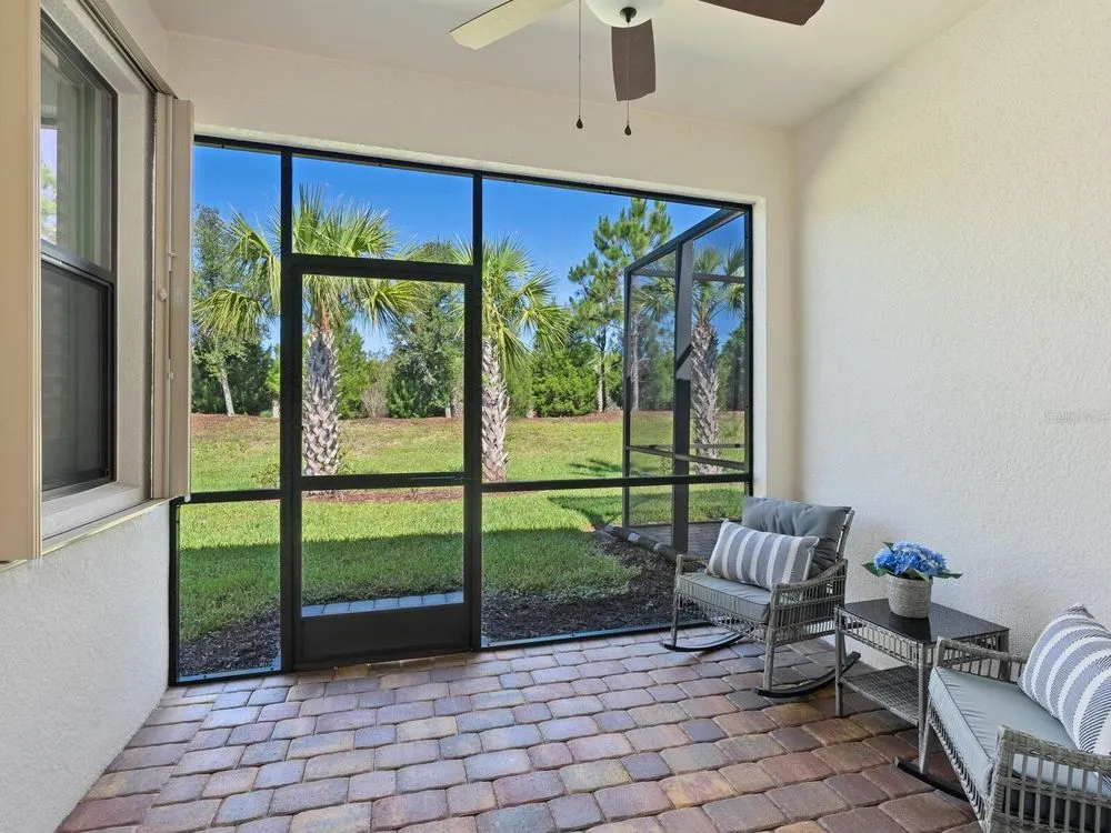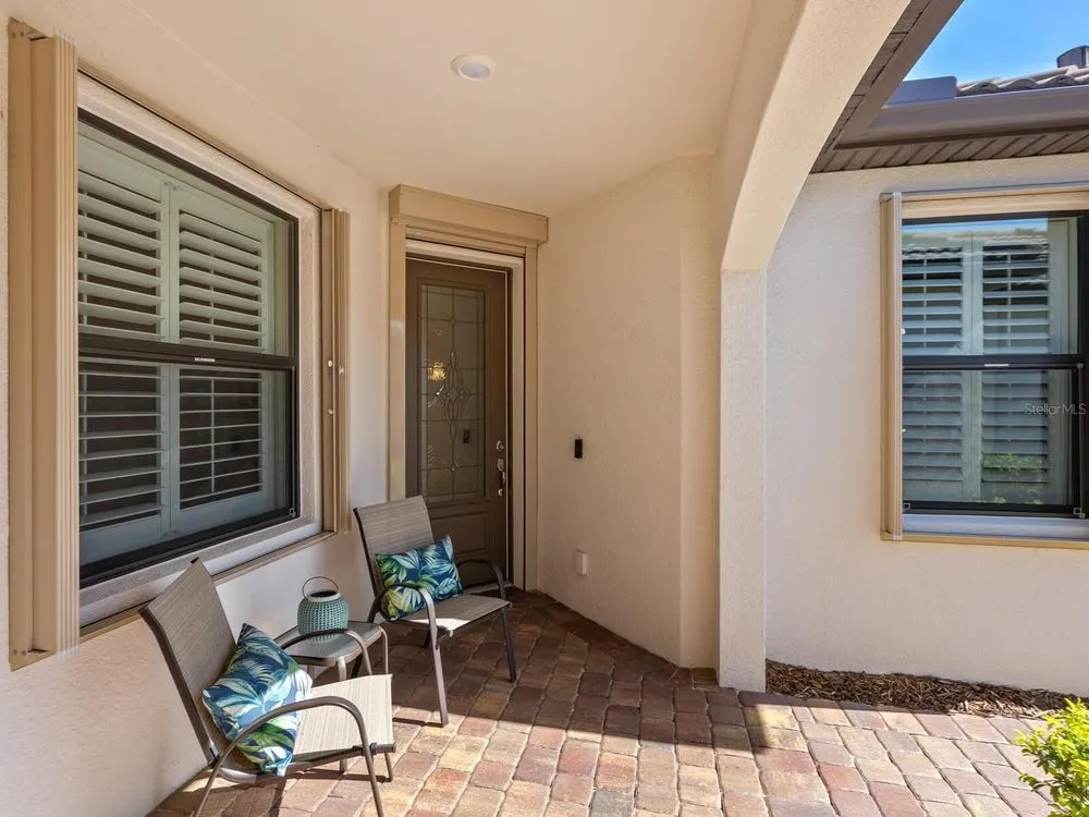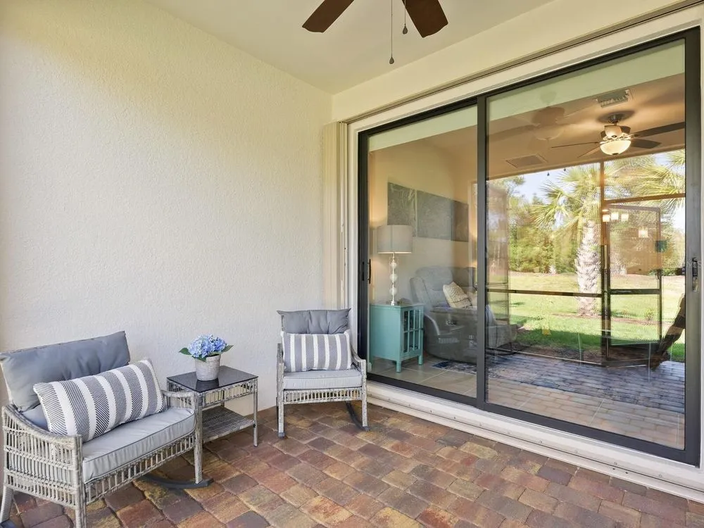 This beautifully upgraded villa was designed with the active adult in mind. The thoughtfully appointed Seagrove model villa offers a balance of comfort, convenience and luxury living in the desirable Del Webb at Lakewood Ranch community. This attached paired villa features two bedrooms, two baths, and a versatile den/flex room, providing approximately 1,458 square feet of living space. The open-concept layout features a spacious gathering room with expansive sliding glass doors that seamlessly connect to the screened-in lanai, creating an ideal indoor-outdoor living experience. The gourmet kitchen is a chef’s dream, complete with stainless steel appliances, generous counter space, white cabinets and stylish finishes, ideal for everyday living and effortless entertaining. The private primary suite, off the family room, is a retreat with a large walk-in closet and an elegant en-suite bath featuring dual sinks and an oversized walk-in shower with decorative tile. A generously sized secondary bedroom sits adjacent to the guest bathroom, which boasts a glass-enclosed walk-in shower and vanity with quartz countertop. The flex room adds valuable space, ideal as a home office, media room or hobby area—currently used as a media room with guest accommodations. The oversized two-car garage includes epoxy flooring, a utility sink and a 48 gallon - natural gas heated hot water tank. The owner has invested nearly $30,000 in thoughtful upgrades, including permanent exterior storm shutters, elegant plantation shutters, Blink doorbell and security cameras, epoxy garage floor coating, glass shower enclosures and more. Living in Del Webb at Lakewood Ranch means enjoying a vibrant, resort-style lifestyle. The community offers a 21,000-square-foot clubhouse, state-of-the-art fitness center, movement studio and dedicated activity rooms. Outdoor amenities include a heated resort-style pool and spa, tennis, pickleball and bocce ball courts, along with walking trails, a fire pit and an event lawn. A full-time lifestyle director ensures a packed calendar of social events, clubs and activities, making it easy to connect with neighbors who share your interests. Whether you're relaxing at home or taking advantage of everything this dynamic community offers, this villa is the place to live the lifestyle you’ve been dreaming of.