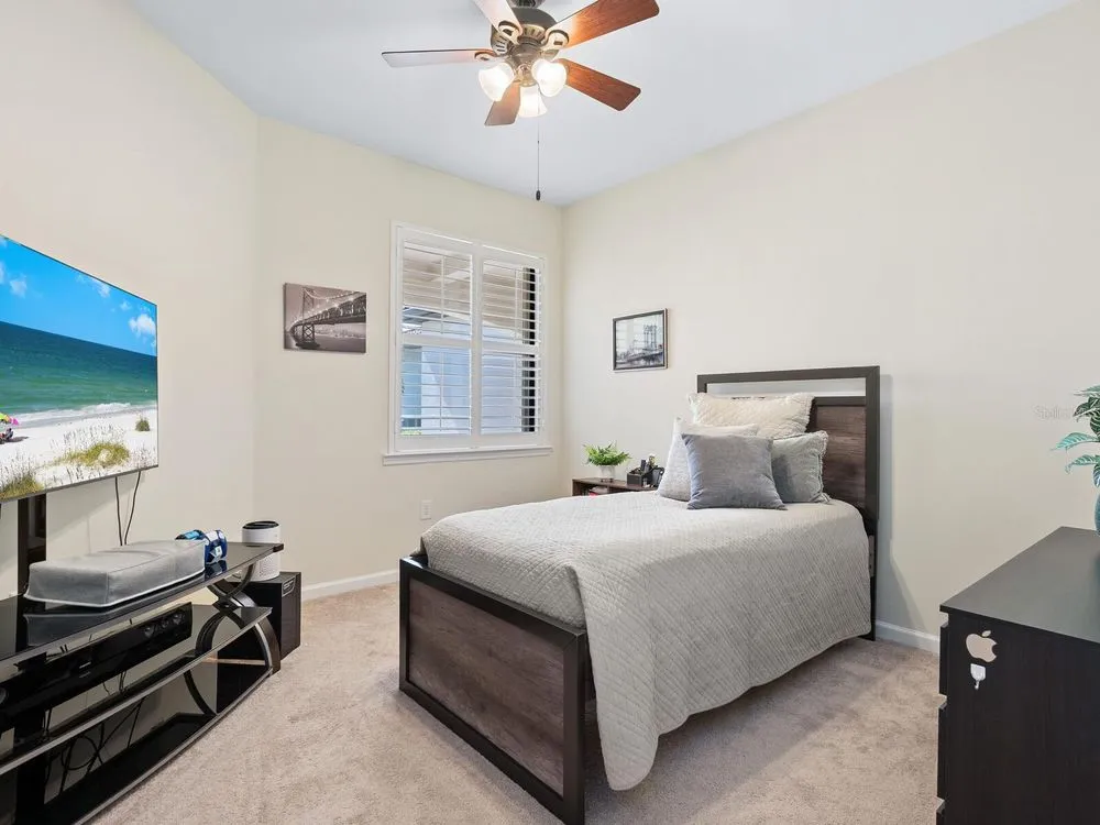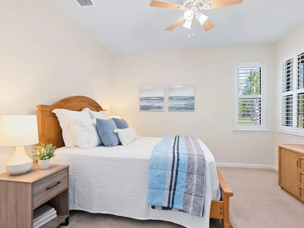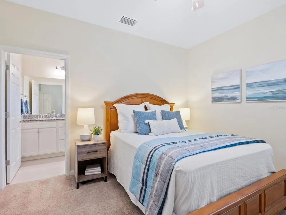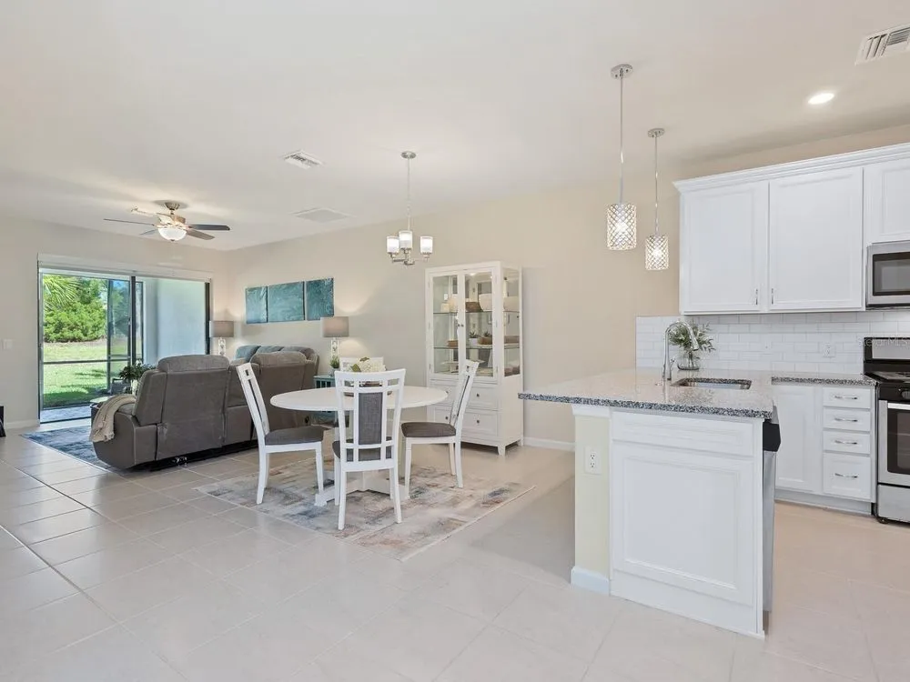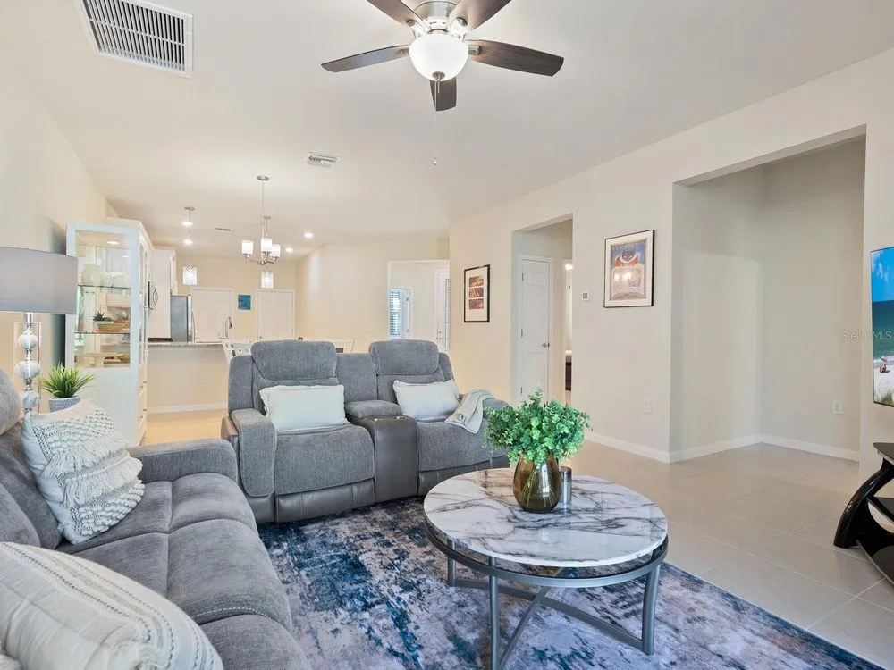 This beautifully upgraded villa was designed with the active adult in mind. The thoughtfully appointed Seagrove model villa offers a balance of comfort, convenience and luxury living in the desirable Del Webb at Lakewood Ranch community. This attached paired villa features two bedrooms, two baths, and a versatile den/flex room, providing approximately 1,458 square feet of living space. The open-concept layout features a spacious gathering room with expansive sliding glass doors that seamlessly connect to the screened-in lanai, creating an ideal indoor-outdoor living experience. The gourmet kitchen is a chef’s dream, complete with stainless steel appliances, generous counter space, white cabinets and stylish finishes, ideal for everyday living and effortless entertaining. The private primary suite, off the family room, is a retreat with a large walk-in closet and an elegant en-suite bath featuring dual sinks and an oversized walk-in shower with decorative tile. A generously sized secondary bedroom sits adjacent to the guest bathroom, which boasts a glass-enclosed walk-in shower and vanity with quartz countertop. The flex room adds valuable space, ideal as a home office, media room or hobby area—currently used as a media room with guest accommodations. The oversized two-car garage includes epoxy flooring, a utility sink and a 48 gallon - natural gas heated hot water tank. The owner has invested nearly $30,000 in thoughtful upgrades, including permanent exterior storm shutters, elegant plantation shutters, Blink doorbell and security cameras, epoxy garage floor coating, glass shower enclosures and more. Living in Del Webb at Lakewood Ranch means enjoying a vibrant, resort-style lifestyle. The community offers a 21,000-square-foot clubhouse, state-of-the-art fitness center, movement studio and dedicated activity rooms. Outdoor amenities include a heated resort-style pool and spa, tennis, pickleball and bocce ball courts, along with walking trails, a fire pit and an event lawn. A full-time lifestyle director ensures a packed calendar of social events, clubs and activities, making it easy to connect with neighbors who share your interests. Whether you're relaxing at home or taking advantage of everything this dynamic community offers, this villa is the place to live the lifestyle you’ve been dreaming of.