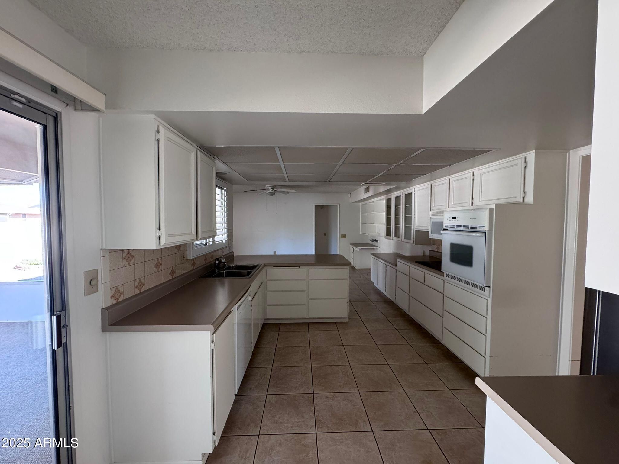 Discover the potential in this well-maintained single-story home located in Sun City West, offering a functional layout and access to an active lifestyle with the RH Johnson Recreation Center. The kitchen features a long galley-style design with ample cabinetry and generous counter space. It is brightly illuminated by ceiling-mounted fluorescent panel lighting and abundant natural light from multiple windows, creating a functional and inviting workspace ideal for both everyday living and entertaining. A spacious driveway and large front yard enhance curb appeal, while the expansive backyard offers endless possibilities, ideal for gardening, recreation, or future enhancements. With a little TLC, this property presents a great opportunity to make it your own.