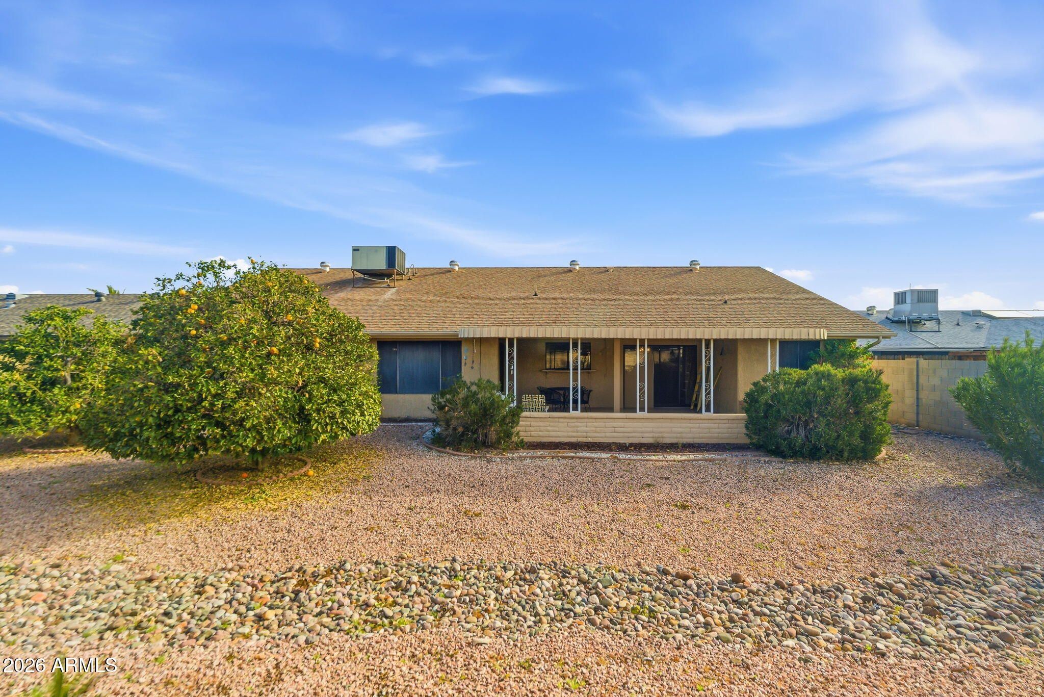 Don't miss this one! One of the largest floorplans in Sun City West. This bright and inviting 2,103 sq ft home features soaring vaulted ceilings throughout, two expansive great room spaces, and the added peace of mind of a brand new roof scheduled for March 2nd ($21,000 value) The home includes a refrigerator, washer, and dryer, making it truly move-in ready. Step outside to a large 9,000+ sq ft backyard offering endless possibilities, from outdoor entertaining to future customization. Enjoy AZ living year-round under the oversized covered patio, perfect for relaxing in any season. Located in the highly desirable Sun City West, residents enjoy golf, fitness centers, clubs, and an active, social lifestyle. This home delivers the space, comfort, and lifestyle you've been waiting for.