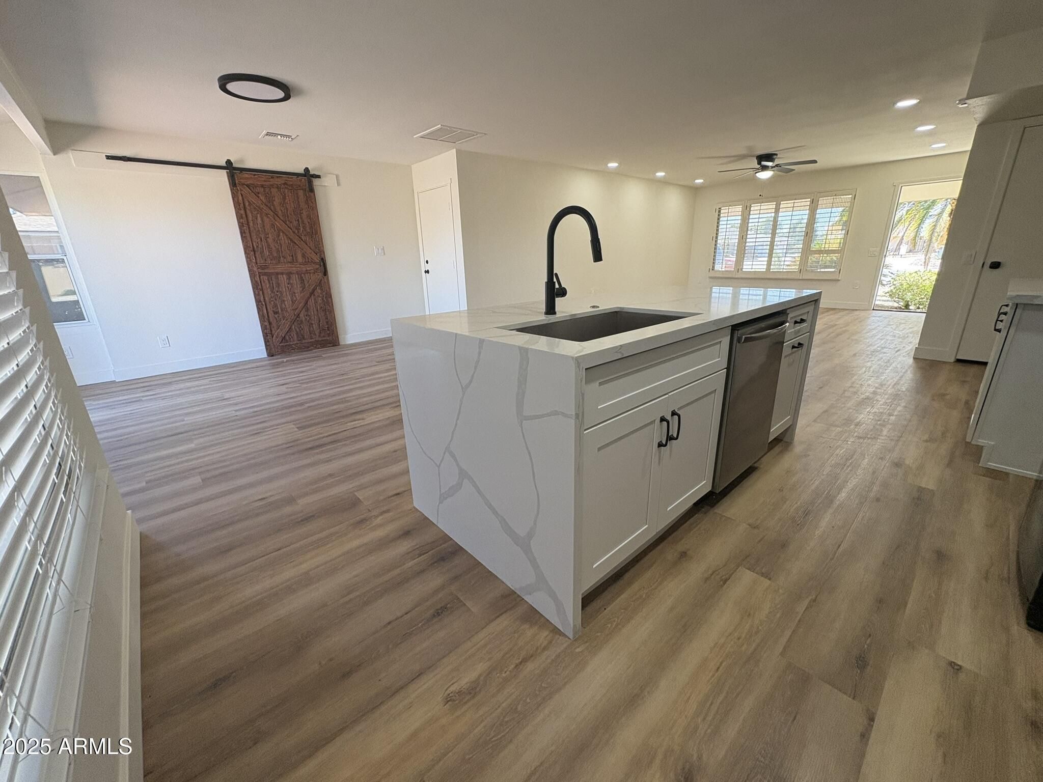 Fully remodeled 3-bed, 2-bath home with a stunning open concept living space to kitchen, featuring new white shaker cabinets, quartz countertops, a dramatic waterfall island. Finished with all-new stainless steel appliances and a large dining area with easy access to the back patio. The open layout is ideal for entertaining. The spacious primary bedroom includes a bay window with great natural light. The ensuite has a walk-in shower with a sleek new surround. The guest bath offers a tub/shower combo with new surround and safety grab bars. Two nice sized guest bedrooms offer great space. Fresh interior/exterior paint, waterproof vinyl flooring, newer A/C and roof, and a brand-new water heater. Low-maintenance yard with a beautiful palm tree, this home is move-in ready!