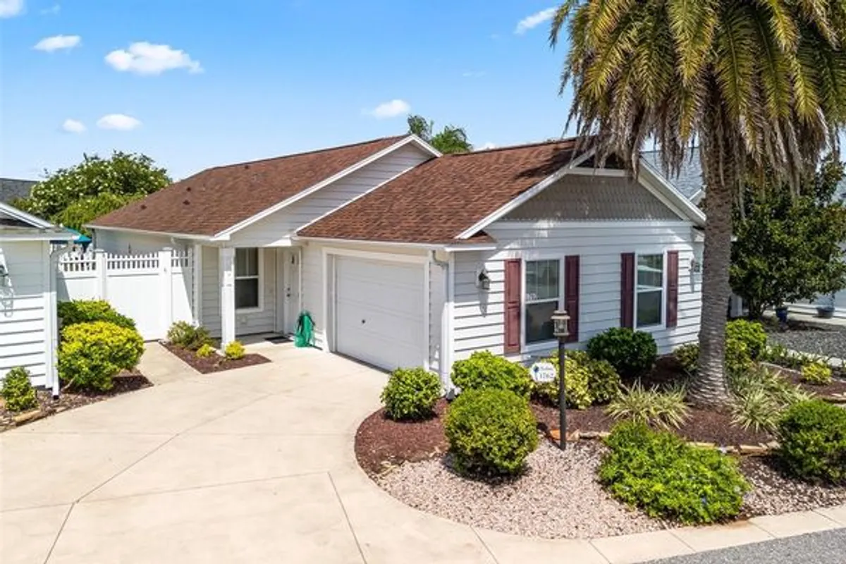 Welcome to this lovely Eagle model in Kingfisher Villas, located in the desirable Village of Pennecamp, perfectly situated between Lake Sumter Landing and Brownwood Square. This well-maintained 3-bed, 2-bath home features no carpet, a newer roof 2023, A/C 2019,and is move-in ready. Enjoy a private patio, birdcage, and fenced yard—perfect for your pups! Surrounded by golf courses, pools, and recreation, this home is ideal for snowbirds or full-time residents. All furniture and golf cart available separately. Priced to sell—don’t miss out!