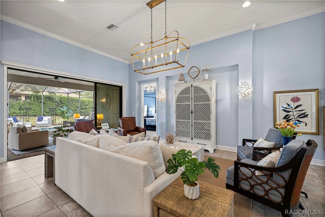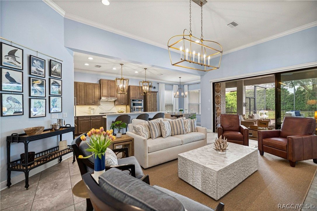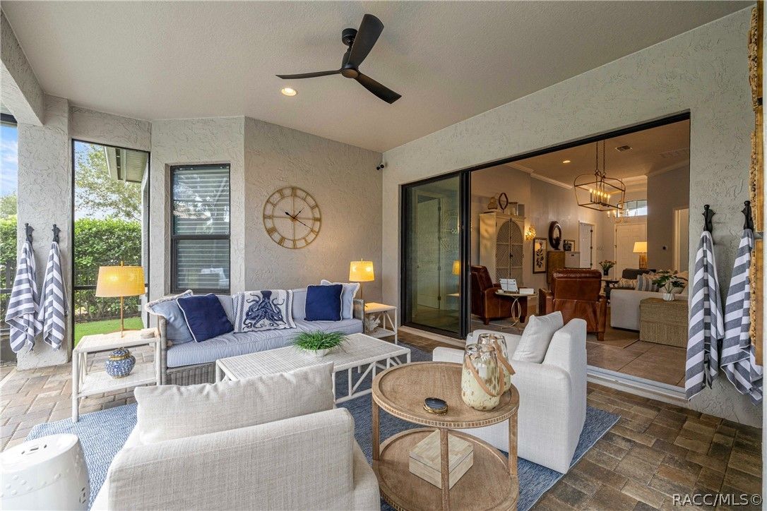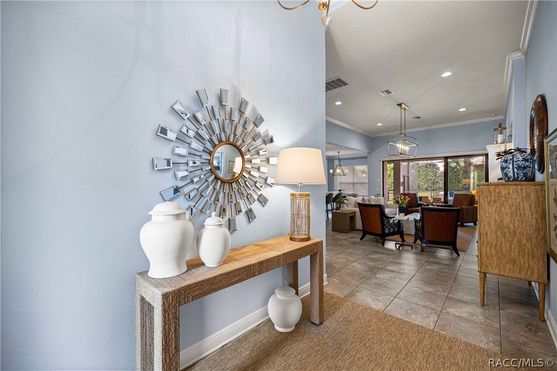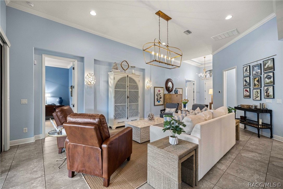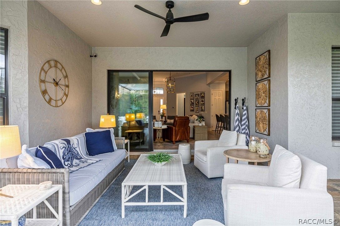Imagine effortless Florida living in this beautifully upgraded Carefree SPOOL home, perfectly positioned on a private, oversized corner homesite in the desirable Westford Villa neighborhood of Terra Vista. Sitting at 98 feet above sea level, this stunning St. James–style residence blends comfort, style, and peace of mind in one exceptional package. From the moment you step inside, you’re welcomed by elegant finishes and thoughtfully curated details—rich crown molding, tray ceilings, designer lighting, and gorgeous quartz countertops all come together to create a warm yet sophisticated atmosphere. Hunter Douglas Silhouette window treatments frame the views to your expansive lanai, where your private SPOOL (spa + pool) invites you to relax, unwind, or entertain in style. The screened enclosure is uniquely designed with two separate fenced areas—ideal for pets or creating a safe, turf-lined space for grilling and outdoor enjoyment. Whether hosting friends or enjoying a quiet evening poolside, this home delivers the perfect setting. The spacious primary suite offers two large closets and a well-appointed bath, while the home’s functional layout includes a generous laundry room and a two-car garage with extra storage space. Beyond your doorstep, Terra Vista offers a vibrant, resort-style lifestyle. Spend your days at the tiki bar, on the pickleball or tennis courts, or out on the golf course. Enjoy a state-of-the-art fitness center, luxurious spa, multiple swimming pools—with a new resort-style pool coming soon—and a full calendar of social events and classes. This is more than a home—it’s a lifestyle. Come experience it for yourself.