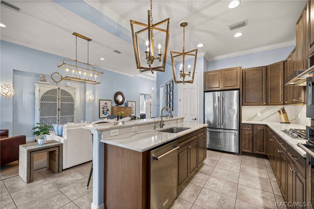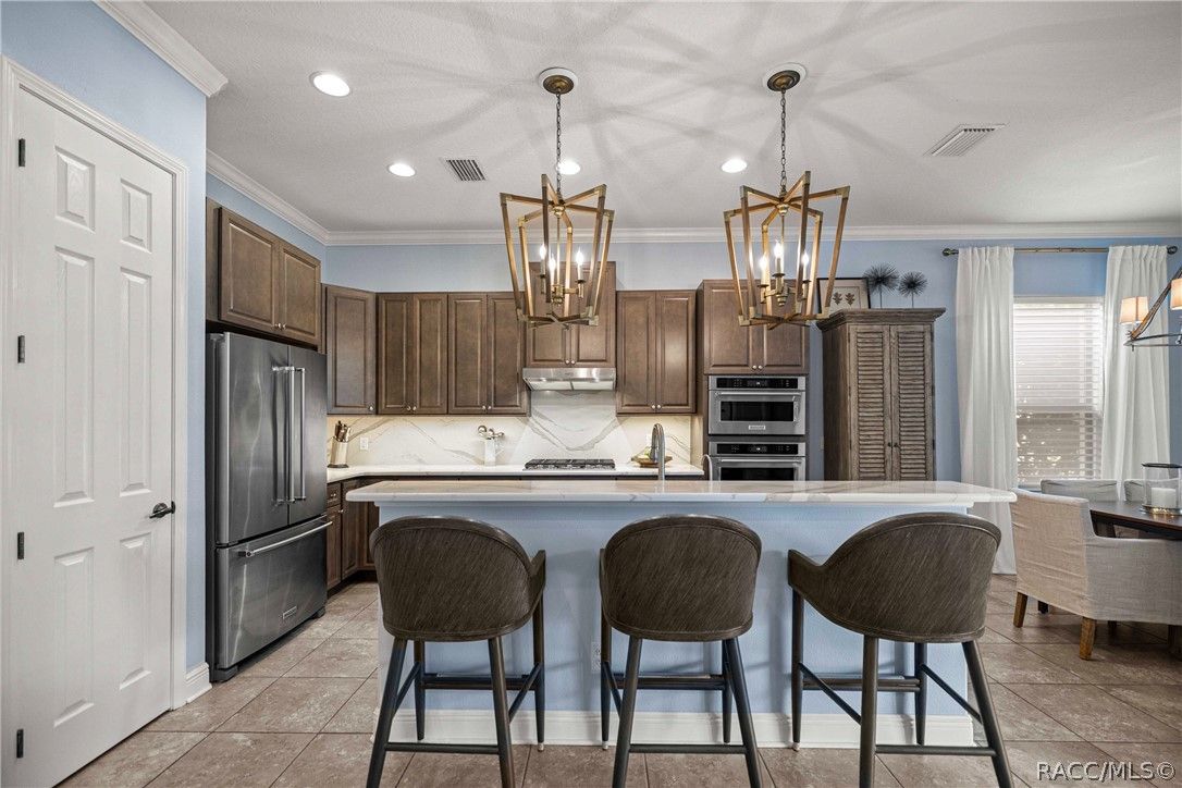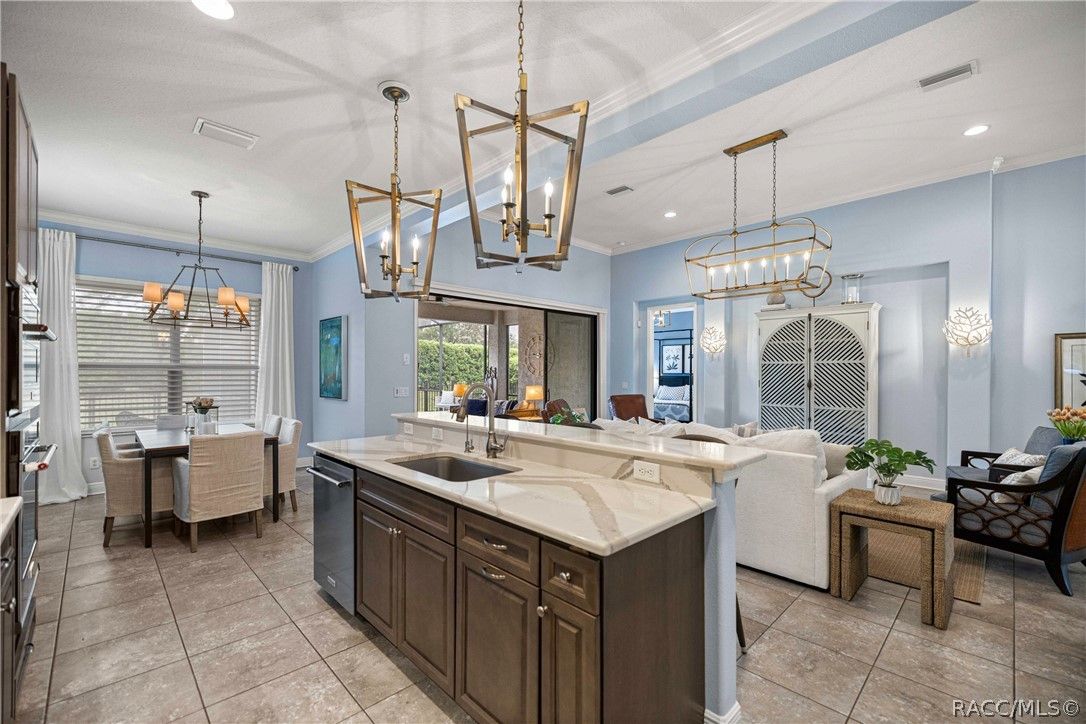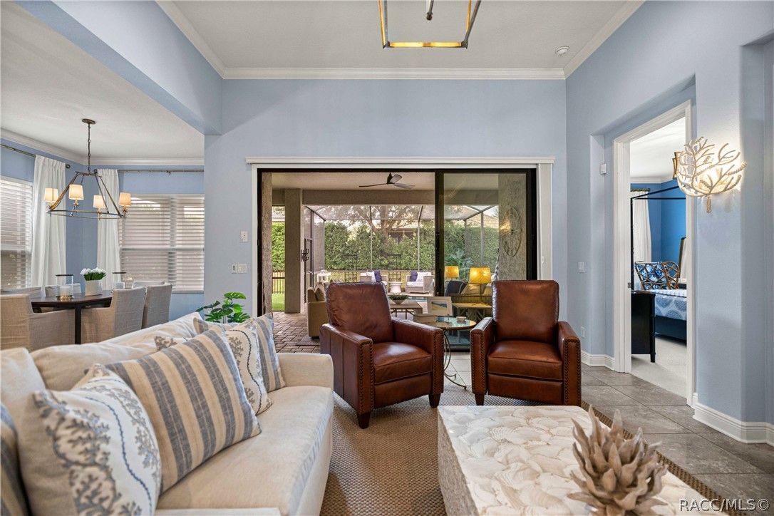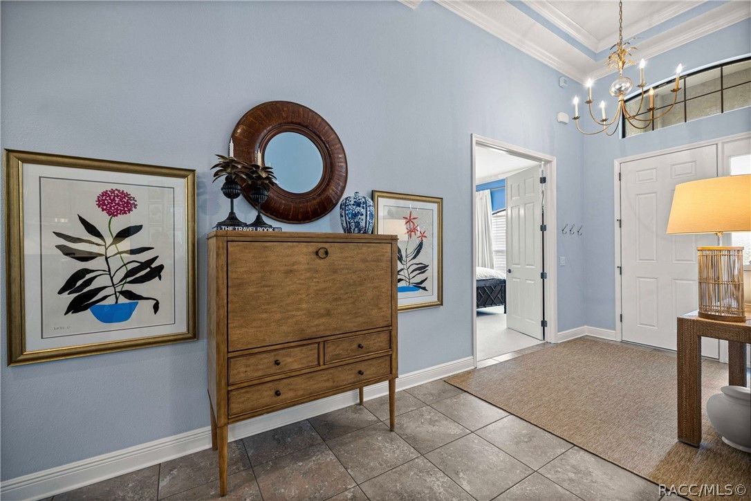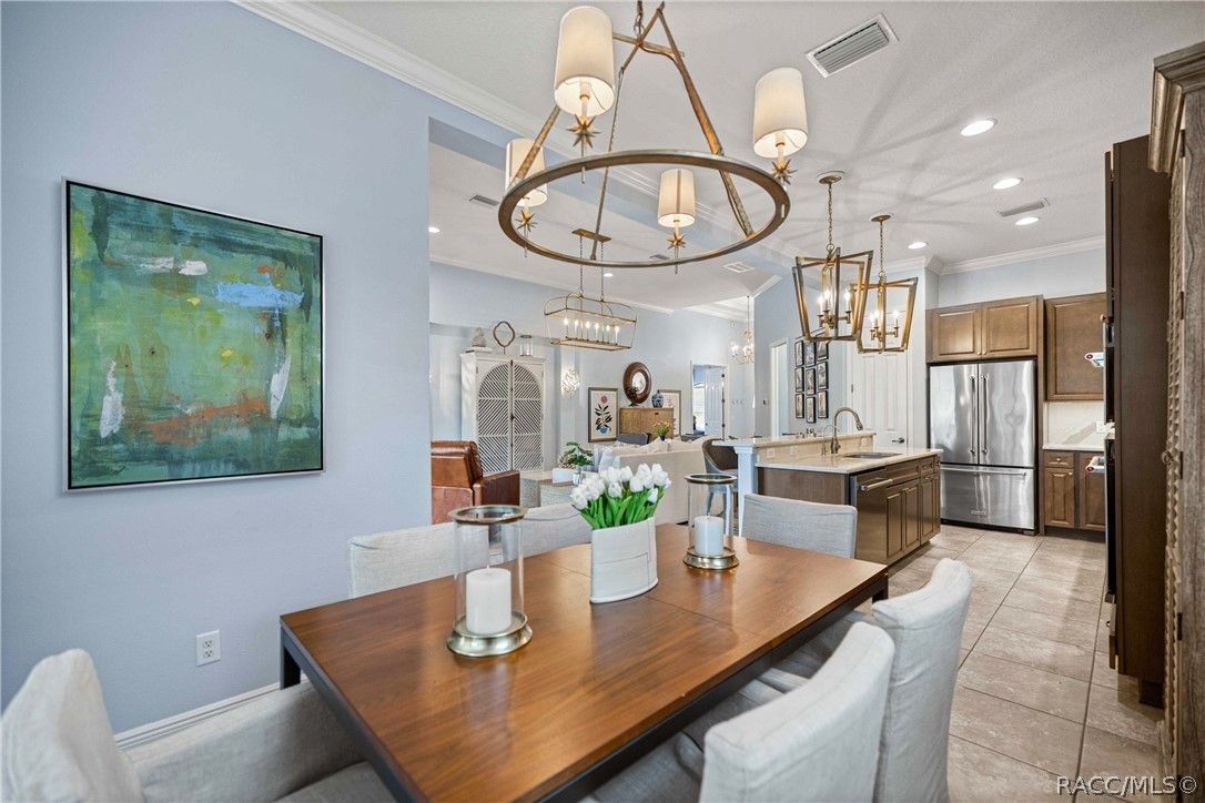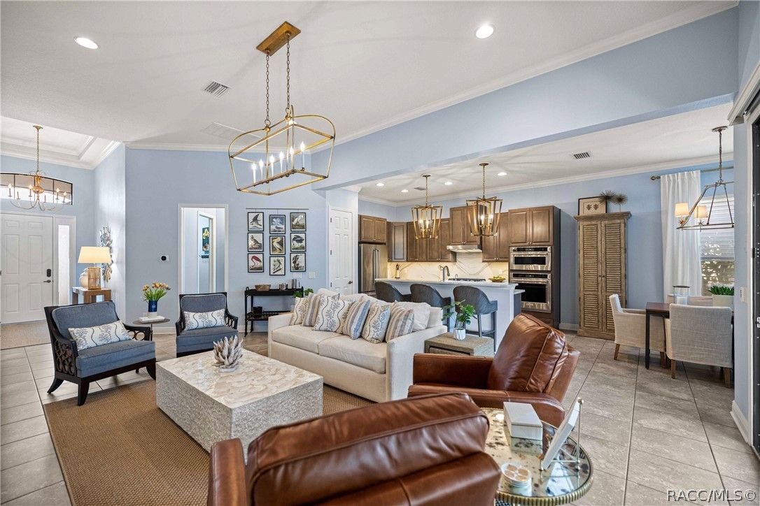 Imagine effortless Florida living in this beautifully upgraded Carefree SPOOL home, perfectly positioned on a private, oversized corner homesite in the desirable Westford Villa neighborhood of Terra Vista. Sitting at 98 feet above sea level, this stunning St. James–style residence blends comfort, style, and peace of mind in one exceptional package. From the moment you step inside, you’re welcomed by elegant finishes and thoughtfully curated details—rich crown molding, tray ceilings, designer lighting, and gorgeous quartz countertops all come together to create a warm yet sophisticated atmosphere. Hunter Douglas Silhouette window treatments frame the views to your expansive lanai, where your private SPOOL (spa + pool) invites you to relax, unwind, or entertain in style. The screened enclosure is uniquely designed with two separate fenced areas—ideal for pets or creating a safe, turf-lined space for grilling and outdoor enjoyment. Whether hosting friends or enjoying a quiet evening poolside, this home delivers the perfect setting. The spacious primary suite offers two large closets and a well-appointed bath, while the home’s functional layout includes a generous laundry room and a two-car garage with extra storage space. Beyond your doorstep, Terra Vista offers a vibrant, resort-style lifestyle. Spend your days at the tiki bar, on the pickleball or tennis courts, or out on the golf course. Enjoy a state-of-the-art fitness center, luxurious spa, multiple swimming pools—with a new resort-style pool coming soon—and a full calendar of social events and classes. This is more than a home—it’s a lifestyle. Come experience it for yourself.