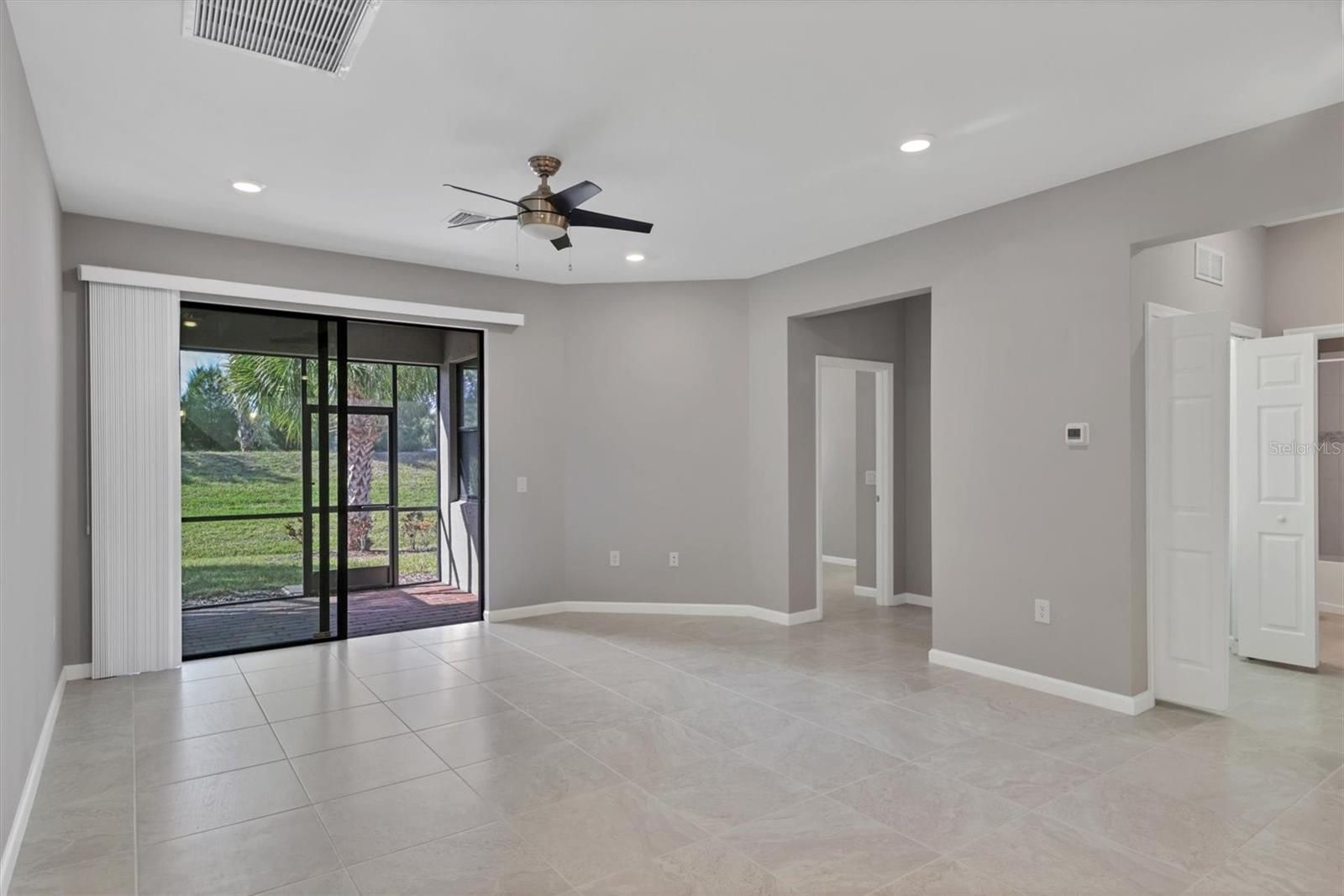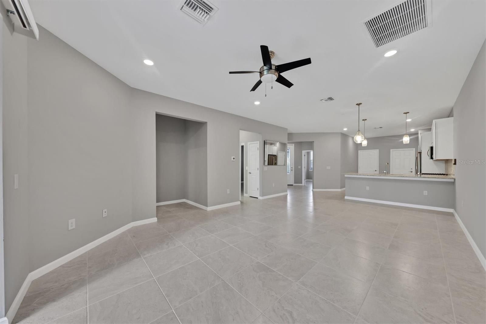 - Ceiling Fan(s), Kitchen/Family Room Combo, Living/Dining Room, Open Floorplan, Main Level Primary, Solid-Wood Cabinets, Stone Counters, Thermostat, Walk-In Closet(s)