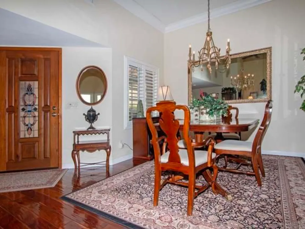 Perched high on a hill in the gated community of Chapala, this highly upgraded 2-bedroom home with a den, has panoramic views of the hills and evening lights with peek-a-boo view of the Oaks North Golf Course! Every detail in the home is carefully planned, from the Golden Topaz hardwood floors that flow throughout the living room, dining area, and hallway to the towel warmer in the main bathroom. The vaulted ceiling with skylight in the living room makes this home light and bright and you will love the custom mantle and marble fireplace surround. You will be cooking with gas in the spacious eat-in kitchen with bay window overlooking the gorgeous view, crisp white cabinets, stainless steel appliances and quartz countertops. This property includes a spacious wrap-around patio with aluminum patio covering that offers expansive views, and built-in barbecue, making it perfect for hosting gatherings of friends and family. Oversized garage with extra parking for a golf cart. Extra storage in the attic with a pull-down ladder. Dual-pane windows and doors throughout. Furnace, air conditioner, and roof recently replaced. Meet your friends at the Oaks North Community Center for a swim, pickle ball, tennis, lawn bowling, or one of the other many activities and classes offered.