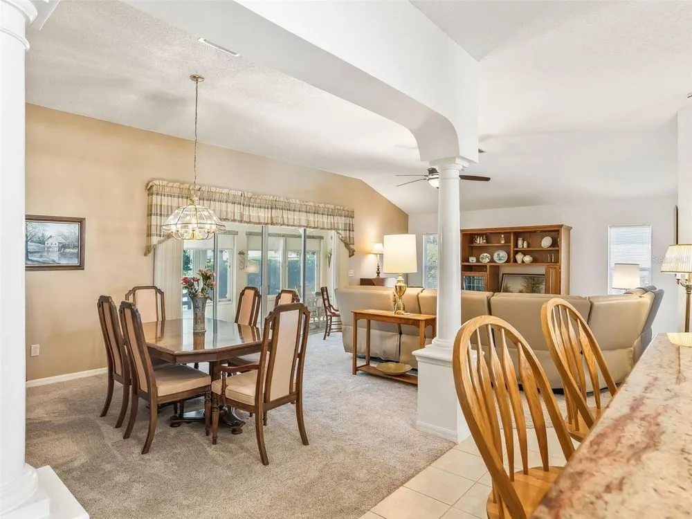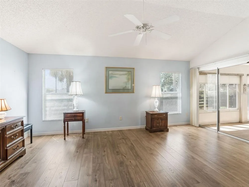 - Ceiling Fan(s), Eat-in Kitchen, High Ceilings, Living/Dining Room, Split Bedrooms, Stone Counters, Vaulted Ceiling(s), Walk-In Closet(s), Window Treatments