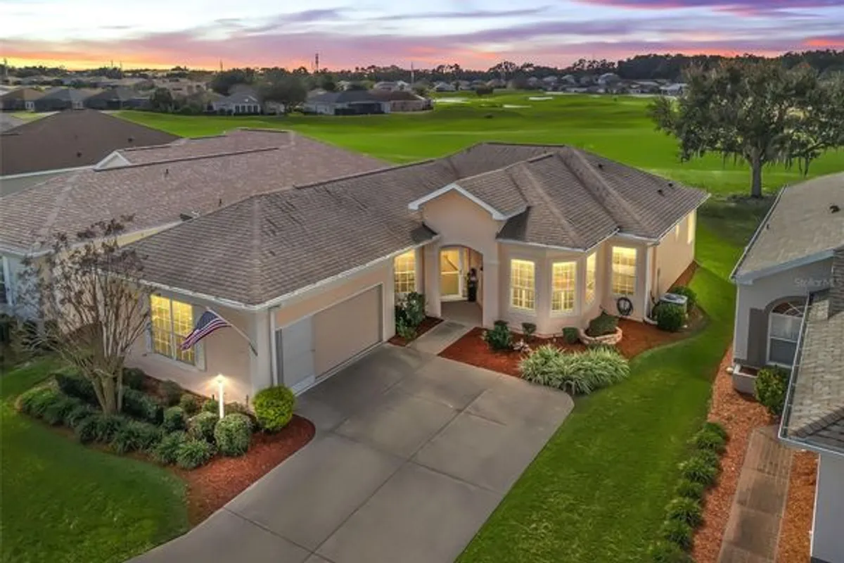 VILLA PEOPERTY-NO YARD WORK! Dreams do come true—if you act fast! This exceptional golf-course-front villa-style single-family home checks every box from the start. ON THE 9TH FAIRWAY...WALK TO CLUBHOUSE! Views of the golf course from all the common areas in the home!!! Enjoy low-maintenance living with a limited landscape package included in the HOA fee of $288 per month. Major updates provide peace of mind, including all-new stainless steel electric kitchen appliances (2026), Hot water heater 2024, new HVAC (2022), and a new roof (2020). A 2017 Yamaha 4-seat gas golf cart with a quiet ride was fully reconditioned in 2023 and is included. The 2-car garage features: 2024 shark coating floor application, wall-mounted storage cabinets, sliding screen doors, and attic storage. The home has been meticulously prepared for its next owner with fresh landscaping, professionally cleaned tile throughout, and sparkling clean windows. Inside, TALL CEILINGS THROUGHOUT, NEW CARPET in both bedrooms (2023), the spacious primary suite offers a walk-in shower, split vanities, and a relaxing Jacuzzi soaking tub. The thoughtfully designed floor plan includes two bedrooms, a den/office, formal dining room, breakfast nook, and breakfast bar. The kitchen boasts tall cabinets and Corian countertops. And the showstopper—a 16'x16' Glass Enclosed Florida room, LISTED AS PART OF THE SF, BUT NOT UNDER HEAT AND AIR,overlooking the golf course, perfect for morning coffee, evening relaxation, or entertaining while enjoying serene views. A must-see property that truly delivers comfort, convenience, and lifestyle. Today could be the BEST DAY OF THE REST OF YOUR LIFE! If you're searching for a home in a private, gated, golf community, look no further—you've found your dream lifestyle at Stonecrest. Nestled in the heart of Central Florida, Stonecrest is a deed-restricted, active 55+ golf community that offers the perfect blend of luxury, convenience, and recreation. Imagine waking up every morning in a community designed for those who cherish an active lifestyle, where golf cart access takes you to nearby shopping and more. At Stonecrest, you'll have access to an array of amenities, including 26 clubs,67 activities, four community pools, one of which is a serene indoor pool—along with a spa and a fully equipped fitness center. Whether you're looking to stay fit, relax, or meet new friends, you'll find it all here. With clubs to join, you'll never run out of opportunities to explore your passions and hobbies. The clubhouse is a hub of social activity, featuring a popular, casual dining restaurant where you can enjoy great food and even better company. For the golf enthusiast, Stonecrest boasts 18 holes of championship golf, providing a challenging and scenic experience. The fun doesn’t stop there—enjoy lighted pickleball courts, softball, and so much more. Welcome to Stonecrest.