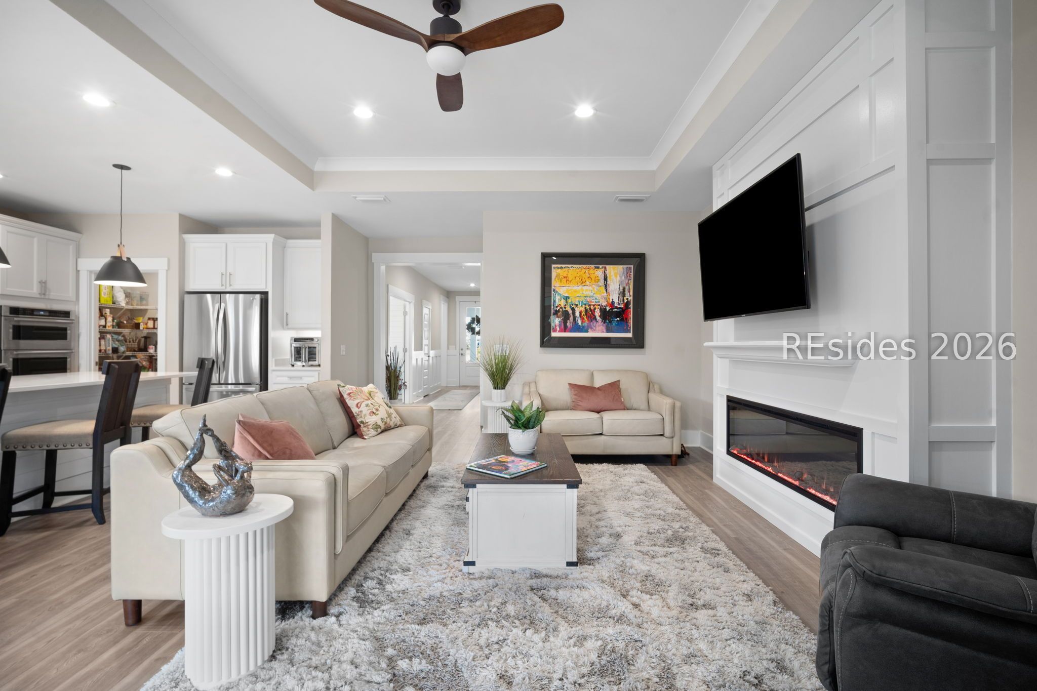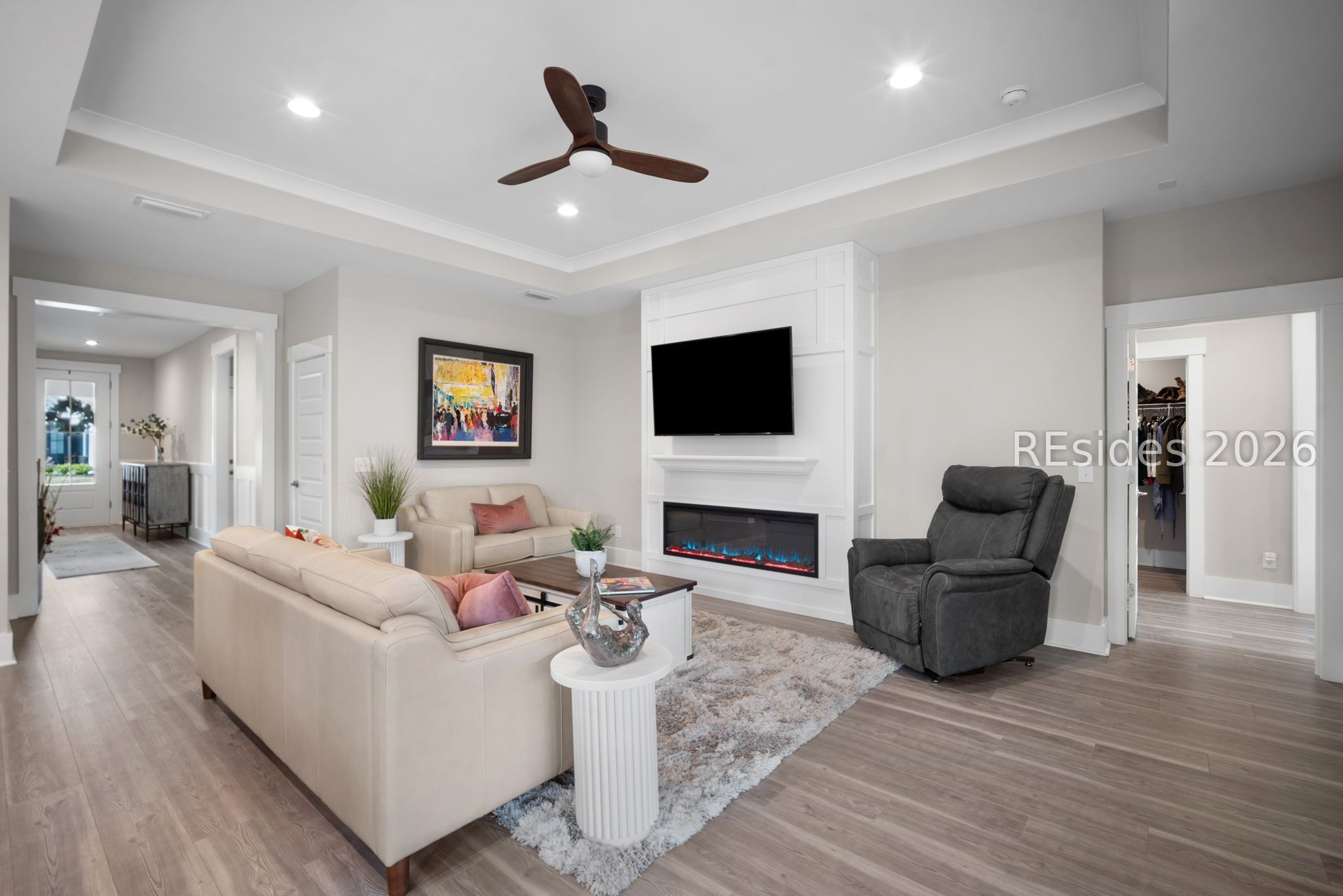 - Tray Ceiling(s), Ceiling Fan(s), Fireplace, Main Level Primary, Multiple Primary Bathrooms, Smooth Ceilings, Separate Shower, Cable TV, Window Treatments, Entrance Foyer, Pantry