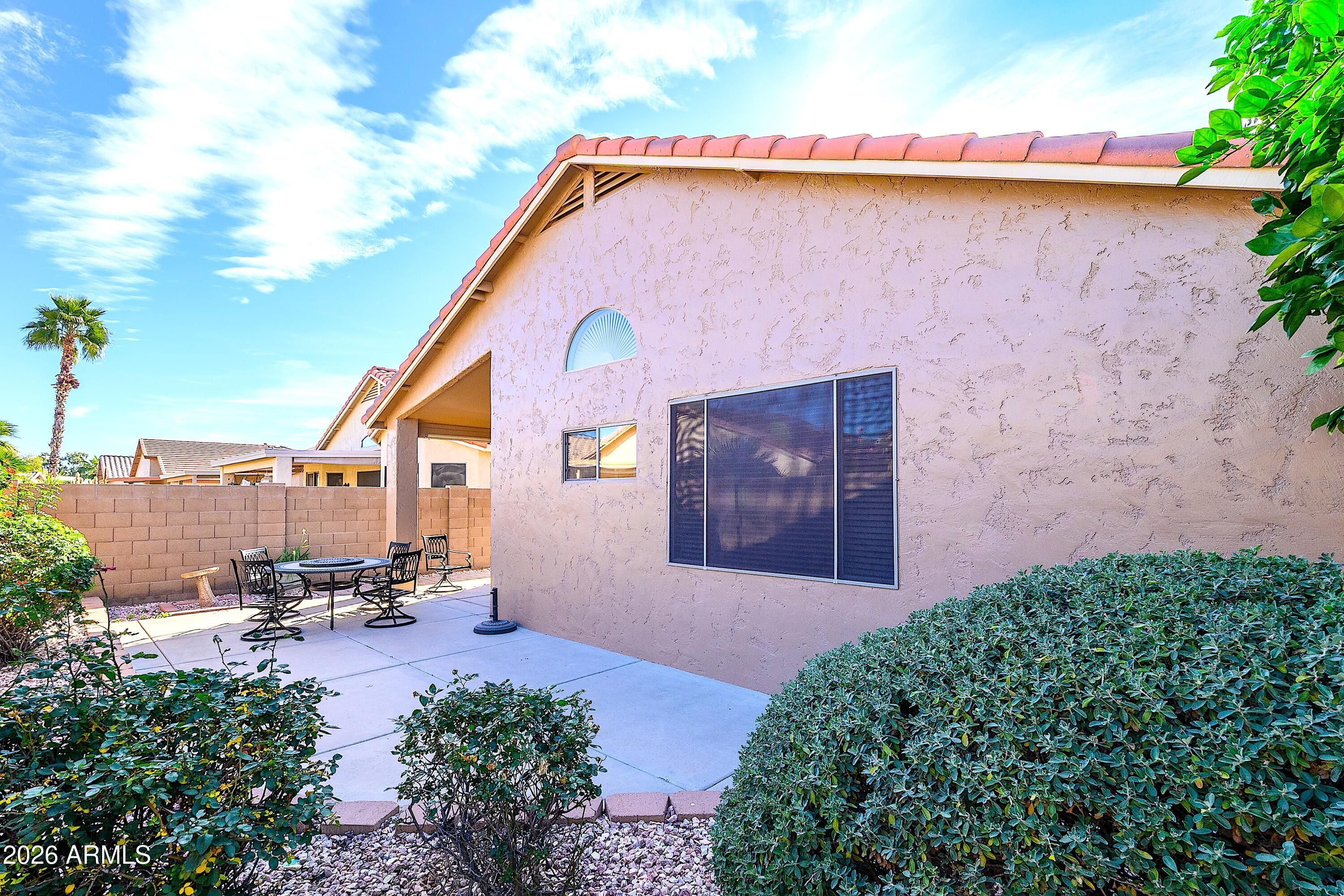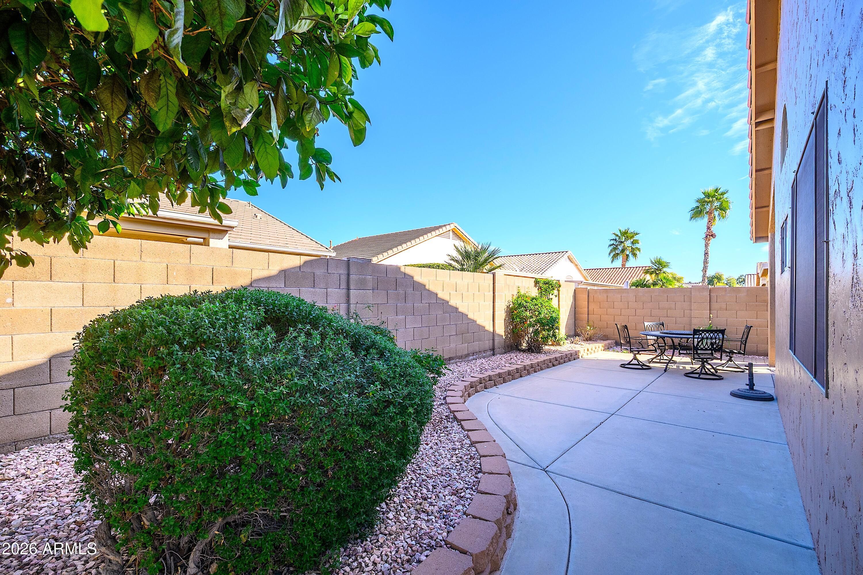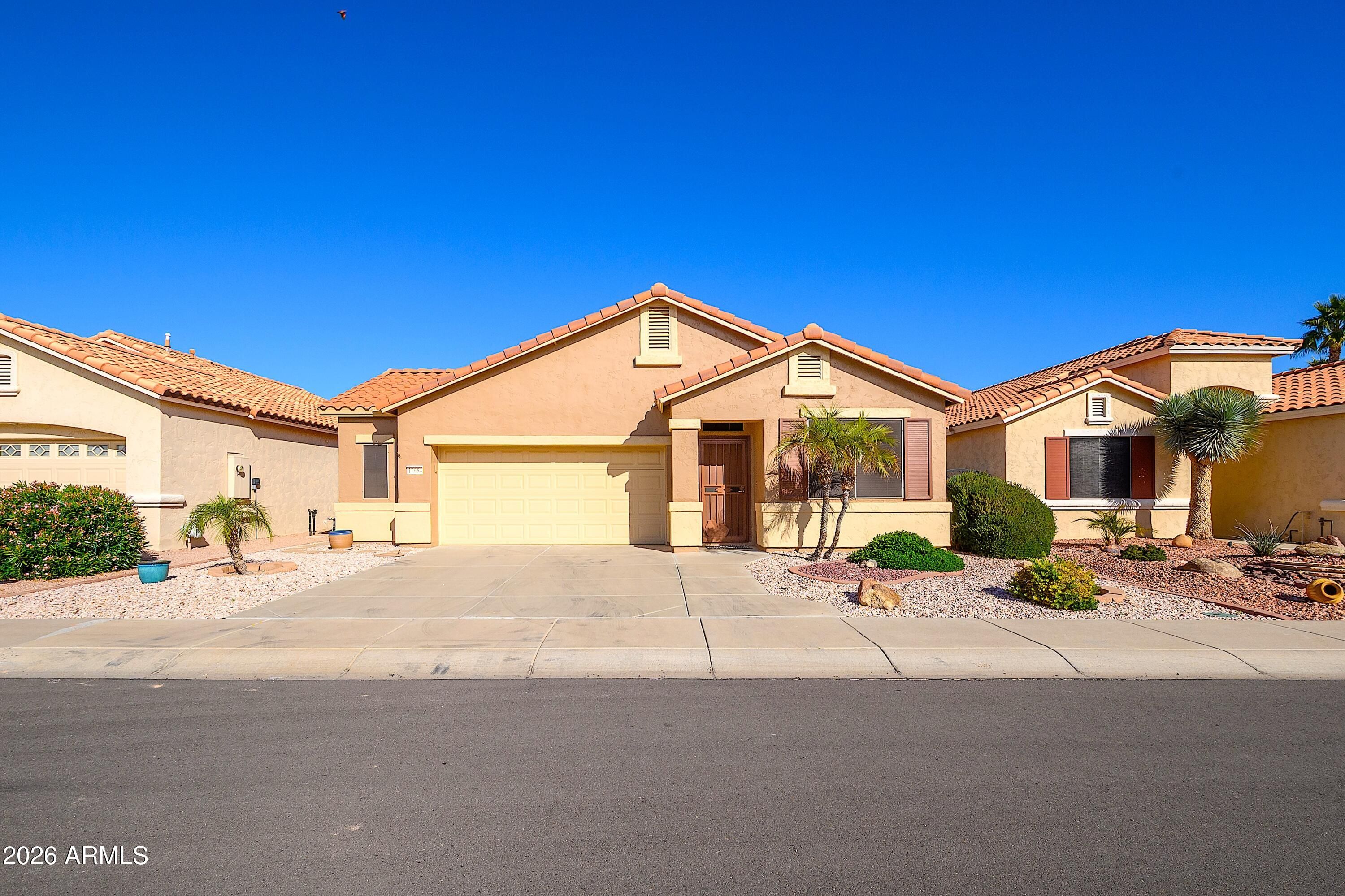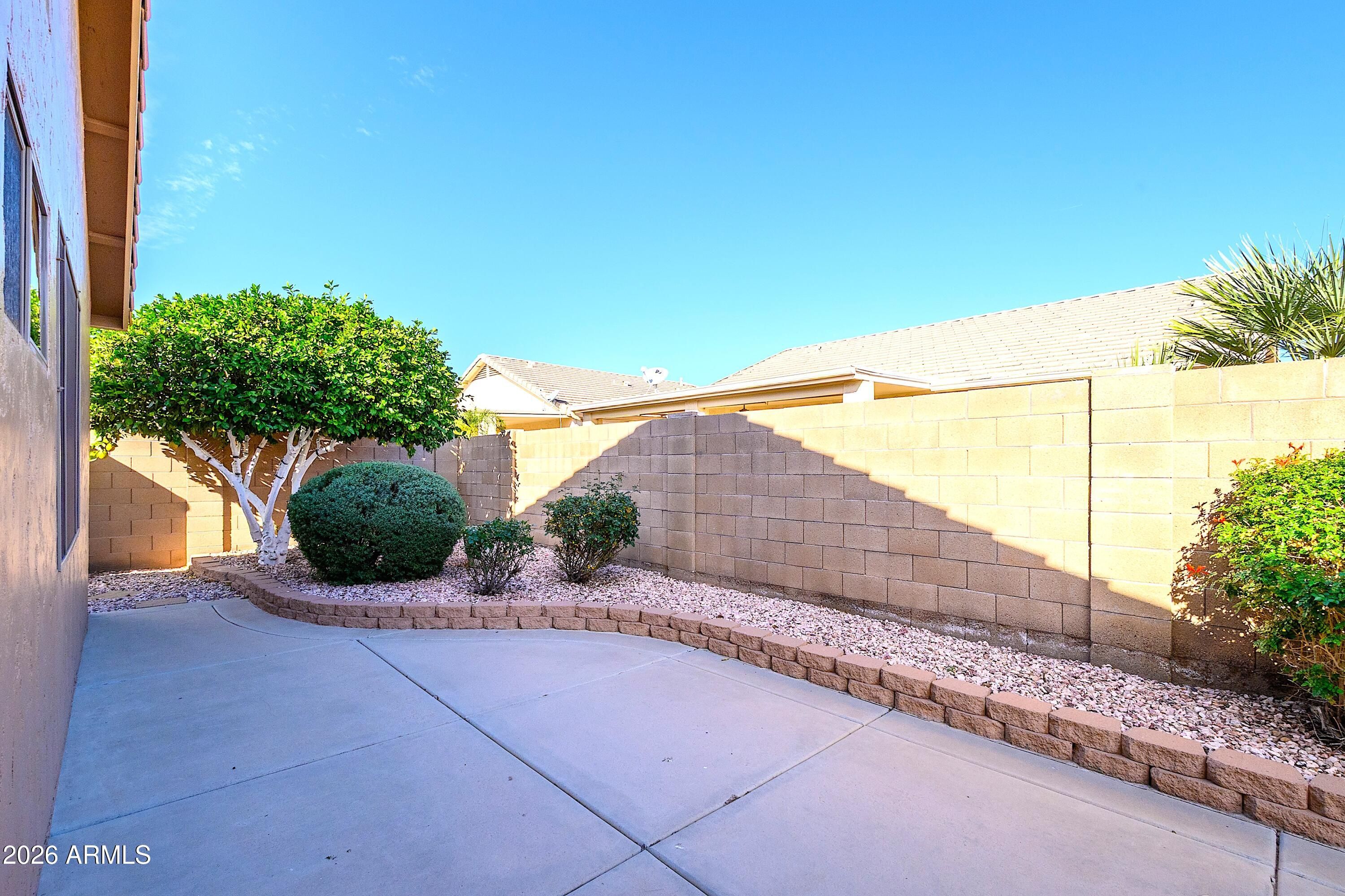 Welcome Home to this immaculate 1660 sq/ft home in the Active Adult 55+ Community of AZ Traditions. Home has been meticulously cared for & is move-in ready. Front room is light & bright & can be styled for a dining room, extra living room or both. Kitchen has S/S appliances, granite countertop, large pantry, island w/bar seating, & eat-in kitchen. Great room has vaulted ceilings & slider to patio. In-house laundry w/exit to garage. Office/Den w/double doors; guest room w/full bath across hallway, & large Primary Suite w/walk-in closet, double sinks, storage, & walk-in shower. Yard has extended patio w/pavers, completely enclosed, & drip system replaced in 2020. Home had roof replaced in 2022 & exterior paint in 2023. Home is vacant & easy to show. See docs tab for list of upgrades!
