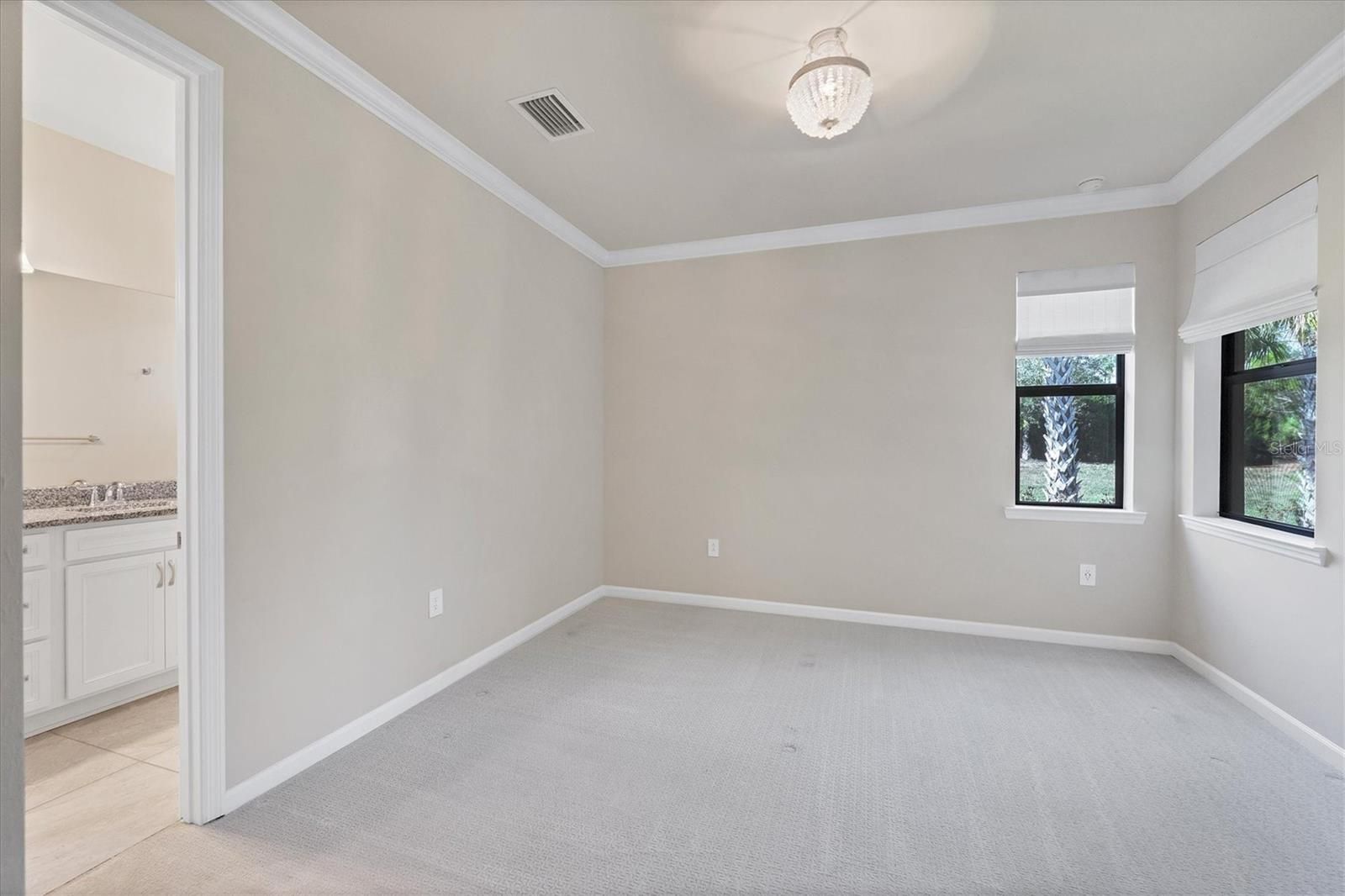 This stunning Seagrove Model villa thoughtfully crafted for the active adult, ideally blends comfort, elegance and relaxed charm of Florida living within the sought-after Del Webb at Lakewood Ranch community. Offering approximately 1,458 square feet of beautifully designed living space, this attached paired villa features two bedrooms, two baths, and a versatile den/flex room, all centered around an inviting open-concept layout. Expansive sliding glass doors connect the spacious gathering room to a screened lanai, creating a seamless indoor-outdoor living experience ideal for entertaining and everyday relaxation. From the moment you enter through the stylish leaded glass front door, you’re welcomed into a bright, airy interior enhanced by tall ceilings with crown molding and elegant 8-foot doors. The gourmet kitchen is a chef’s delight, showcasing crisp white cabinetry with crown molding, newly installed (October 2025) quartz countertops and backsplash, stainless steel appliances and generous counter space designed for effortless entertaining. The primary suite is a serene retreat featuring a large walk-in closet and an elegant en-suite bath with dual sinks, granite counters and a walk-in shower adorned with decorative tile. The comfortable secondary bedroom and full guest bath, with a glass-enclosed shower and granite vanity, offers privacy and style for visitors, while the den with 8-foot French doors provides flexible space for a home office, reading nook or third bedroom. Additional highlights include a tile roof, windows and sliders, a two-car garage, and a 50-gallon natural gas hot water tank. Thoughtful upgrades such as pull-up-down Roman shades, exterior storm shutters, and glass shower enclosures add to the home’s appeal. Go outside to the peaceful screened lanai and enjoy your own private oasis. Beyond the home, Del Webb at Lakewood Ranch delivers an unparalleled resort-style lifestyle. Enjoy a 21,000-square-foot clubhouse, state-of-the-art fitness center, movement studio, heated resort pool and spa, tennis, pickleball, and bocce courts, scenic walking trails and waterfront dining at The Lake House. A full-time lifestyle director curates an exciting calendar of events, clubs and activities, ensuring there’s always something to enjoy. Just minutes from world-class beaches, fine dining, Lakewood Ranch Main Street, The Waterside Shops and downtown Sarasota, this villa is more than a home, it’s a lifestyle. Experience it for yourself and schedule your private showing today!