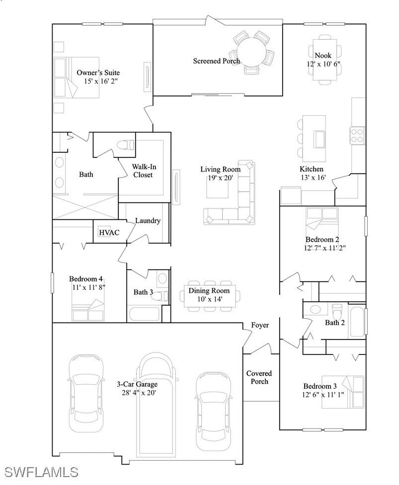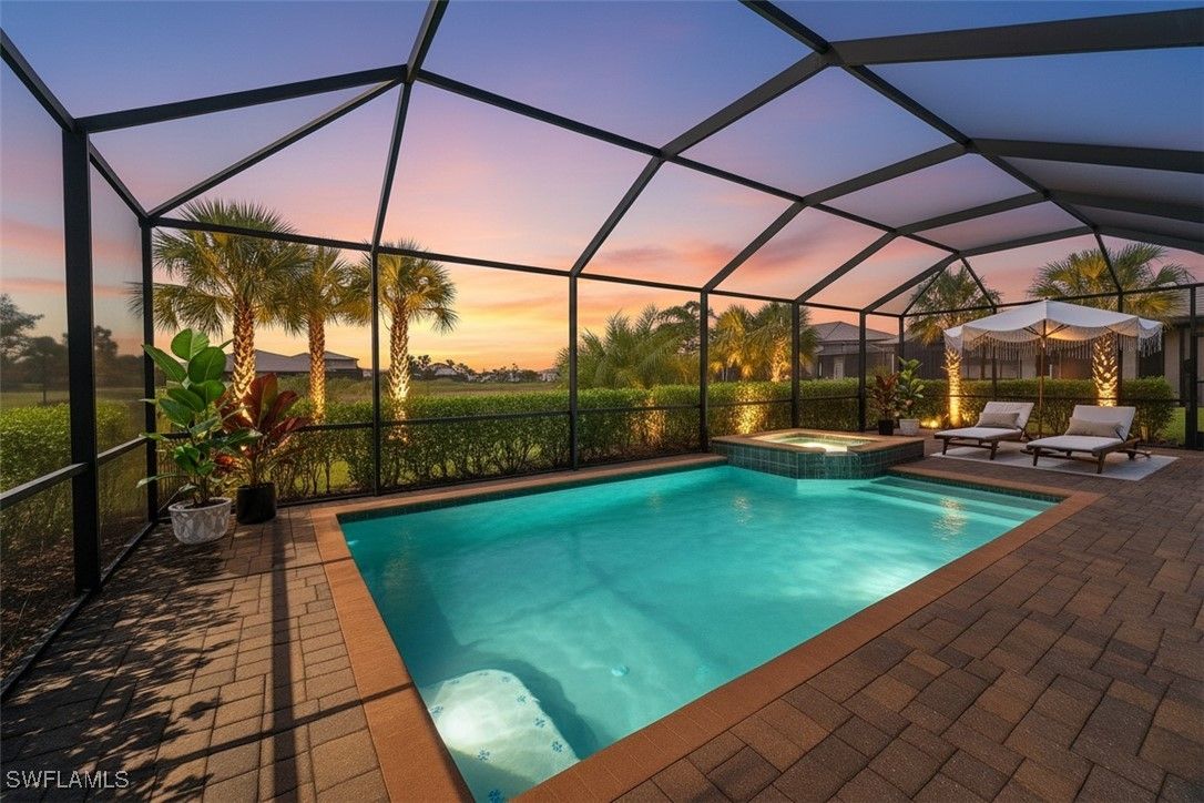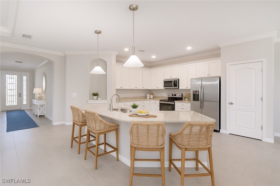 This beautifully upgraded PRINCETON MODEL by Lennar offers over 2,200 square feet of SINGLE-STORY LIVING with 4 BEDROOMS, 2 FULL BATHROOMS, and a 3-CAR GARAGE. Set on an OVERSIZED PIE-SHAPED LOT, this home combines modern convenience with timeless Florida style. The exterior features a STONE ELEVATION, GLASS FRONT DOOR, and KEYLESS ENTRY. Inside, TILE FLOORING runs throughout, and the MAIN LIVING AREA includes CROWN MOLDING and a TRAY CEILING, creating an elevated yet inviting atmosphere. The open-concept KITCHEN features GRANITE COUNTERTOPS, STAINLESS-STEEL APPLIANCES, a STYLISH NICHE ACCENT, and abundant CABINET SPACE. The BREAKFAST NOOK is perfect for casual meals, while the GREAT ROOM opens through SLIDING GLASS DOORS to the LANAI for seamless indoor-outdoor living. A FORMAL DINING AREA provides space for entertaining or holiday gatherings. The PRIMARY SUITE offers a TRAY CEILING, AMPLE NATURAL LIGHT, PRIVATE LANAI ACCESS, and a LARGE WALK-IN CLOSET. The ENSUITE BATH includes DUAL VANITIES and an OVERSIZED SHOWER. Two GUEST BEDROOMS are conveniently located near a full bathroom, while the FOURTH BEDROOM is tucked away for privacy, ideal as a HOME OFFICE, DEN, PLAYROOM, or PRIVATE GUEST SUITE. Outdoor living is a true highlight with a SPARKLING SALTWATER POOL and ELEVATED SPA WITH WATERFALL SPILL OVER FEATURE, LUSH PRIVACY HEDGES, and a FULLY FENCED BACKYARD. The oversized 3-CAR GARAGE includes EPOXY-FINISHED FLOORS, BUILT-IN SHELVING, KEYLESS GARAGE ACCESS, and an ELECTRIC VEHICLE HOOKUP, offering space for VEHICLES, STORAGE, or HOBBIES. Every detail in this home is designed for COMFORT, CONVENIENCE, and Florida lifestyle living. Living in The Place at Corkscrew means every day feels like a vacation. Enjoy world-class amenities including a lagoon-style pool with waterfalls, 100-foot waterslide, splash pad, state-of-the-art fitness center, café, and a full-service restaurant and bar with indoor and outdoor seating. The community also features tennis, pickleball, bocce, basketball, and sand volleyball courts, plus a playground, dog park, and plenty of green space for outdoor enjoyment. Adjacent Old Corkscrew Golf Club is undergoing a major redesign by renowned architect Kyle Phillips, with a new 7,200-yard, par-71 course and a brand-new clubhouse coming soon, elevating it into one of the region’s premier private golf destinations. Everyday conveniences are moments away with a new Publix Plaza just outside the gate, offering dining, shops, and services. Miromar Outlets, Gulf Coast Town Center, and Hertz Arena are only 10 minutes away. Southwest Florida International Airport is a quick 15-minute drive, and the beautiful Gulf Coast beaches are within 30–40 minutes. Experience the best of Southwest Florida living at The Place at Corkscrew — where luxury, community, and convenience come together beautifully.