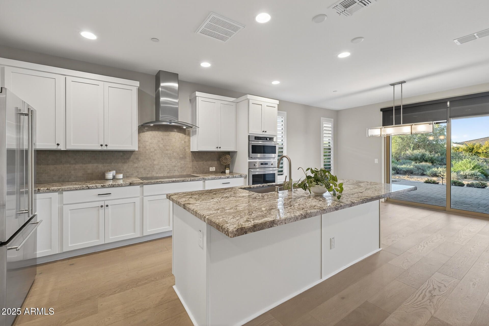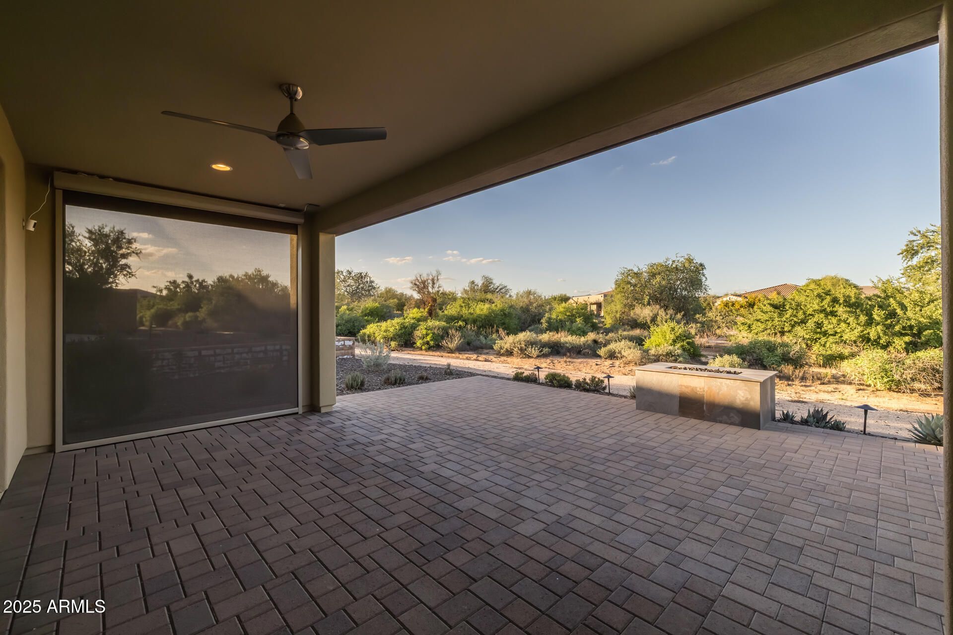 Discover the perfect blend of luxury and comfort in this Valletta floorplan home, nestled in the highly desirable Trilogy at Verde River community. This 3-bedroom, 2.5-bath home offers stunning mountain views from the spacious covered patio. The gourmet kitchen shines with Monogram stainless steel appliances, granite countertops, and a huge island with breakfast bar. Enjoy elegant touches like window shutters and an extended length sliding door complete with a shade. The spa-inspired primary suite offers dual sinks, a tiled shower, and a walk-in closet for a true retreat. Relax outdoors by the fire table and soothing water feature, surrounded by natural Sonoran beauty and breathtaking sunsets. Do not miss out! The amenities at Verde River are World Class with Tom Lehman inspired eighteen-hole Golf course, tennis courts, pickleball courts, and bocce ball, heated lap pool and Resort style swimming pool, hot tub, Afterburn fitness center, Helen's demonstration Kitchen for cooking classes and a 7.5 acre dog park. The community center has casual poolside dining at Eddy's Diner and gourmet dining at award-winning Needle Rock Kitchen and Tap, Alvea Spa with full-service Salon and Spa amenities, Art Loft and events center. Trilogy at Verde River is adjacent to the Tonto National Forest and is situated in the middle of miles and miles of hiking and biking trails.