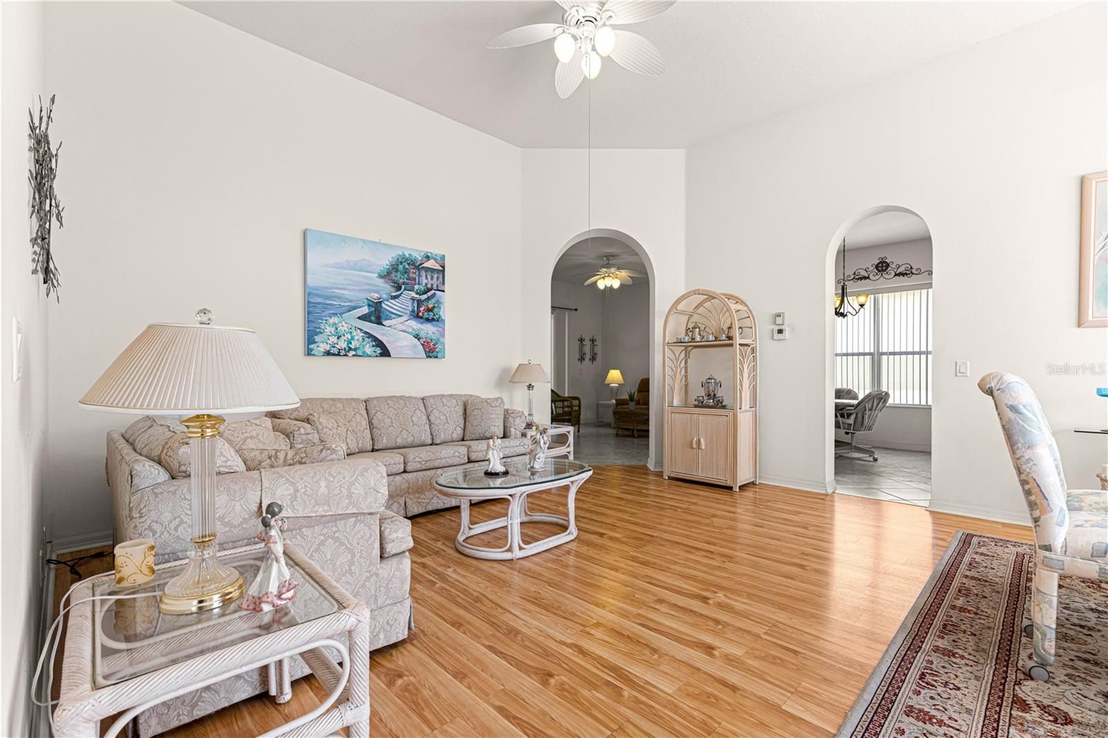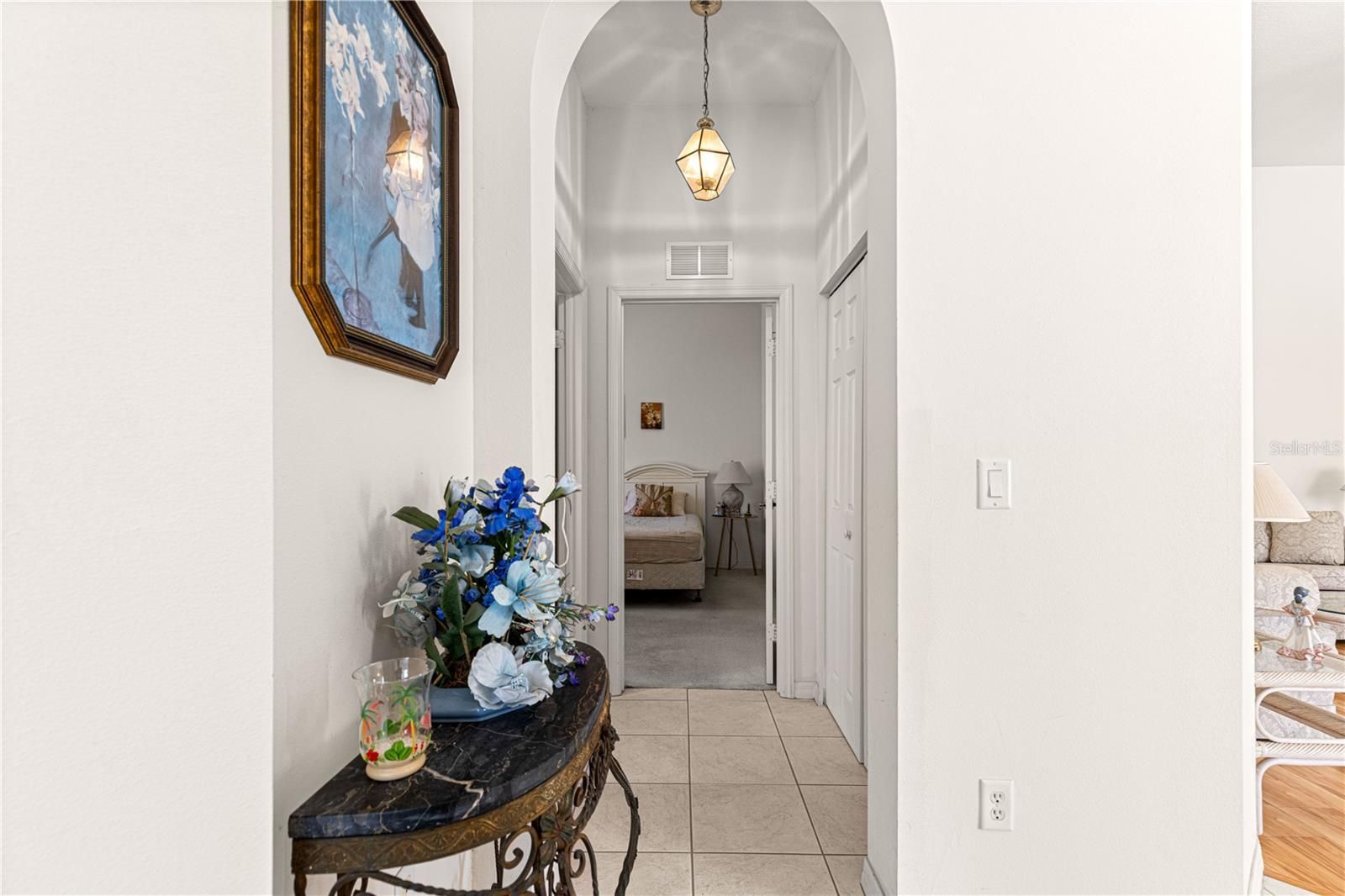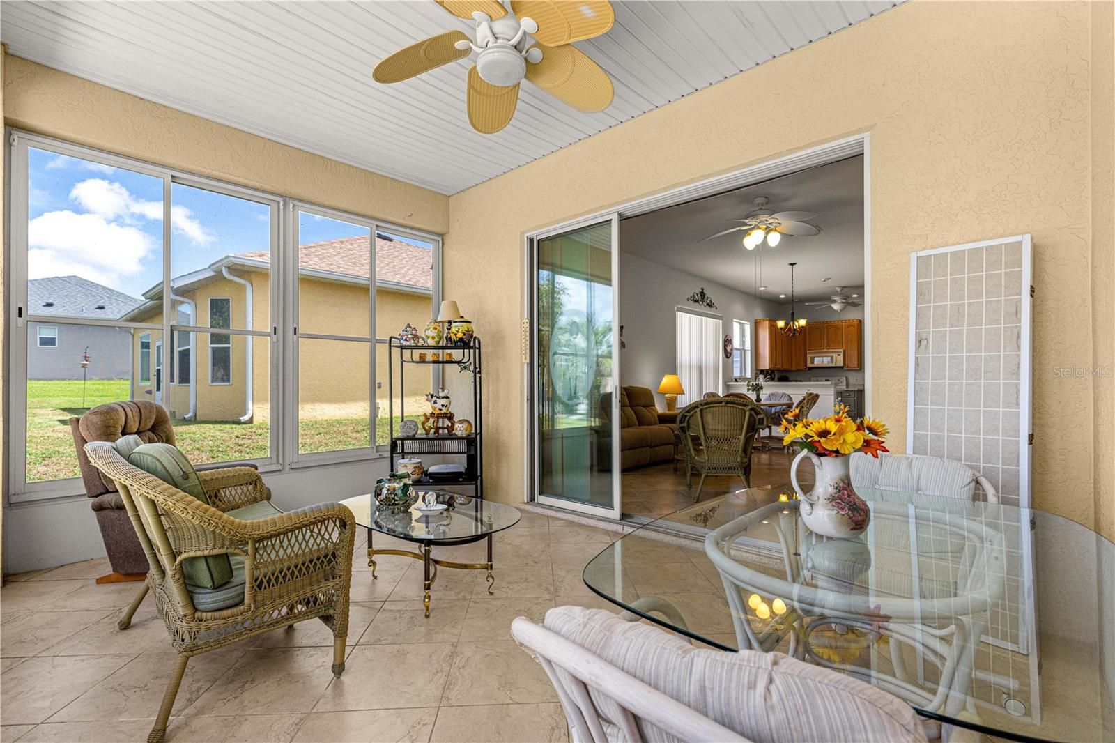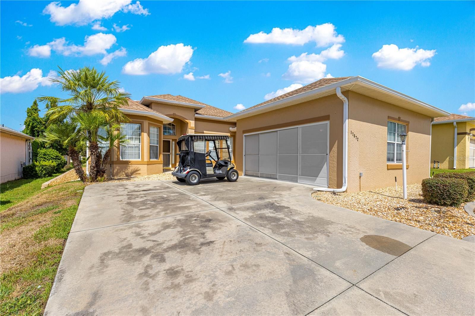 PRICE REDUCTION, well under current market value!! This is the first time this one owner home has ever been on the market! This St George model offers undeniable curb appeal with its oversized driveway leading into the side facing oversized garage and beautiful entrance with mature landscaping. Over 1900 sq ft of living space with 10' ceilings! This home offers plenty of space to host your guests with a foyer as you walk in and a spacious living room that leads out to a large, enclosed lanai to enjoy those gatherings with friends and soak in those beautiful Florida sunsets. The master bedroom offers a large walk-in closet, generous en-suite with soaking tub, double vanities and walk in shower. The second bedroom has a large built-in closet, and the third bedroom/den is perfect for guests, an office, craft room or work-out room. The kitchen has lots of counter space, cabinets and a storage pantry to store all of the tools needed by those home chefs. Separate inside laundry and an oversized 2-car garage with plenty of room for that golf cart that is INCLUDED with this home. Located in the beautiful, active community of STONECREST just outside of The Villages. Stonecrest offers over 100 Clubs, Pickleball, Softball, a Workout Center, 4 Pools, Security and much more! You will also have golf cart access to Walmart, shopping, restaurants and more. Stonecrest's fabulous location allows easy access to restaurants, shopping, the hospital and medical facilities. Your piece of paradise awaits you!! Don't miss out on this one! New roof in 2020 and a new HVAC was installed in 2016. GOLF CART INCLUDED!