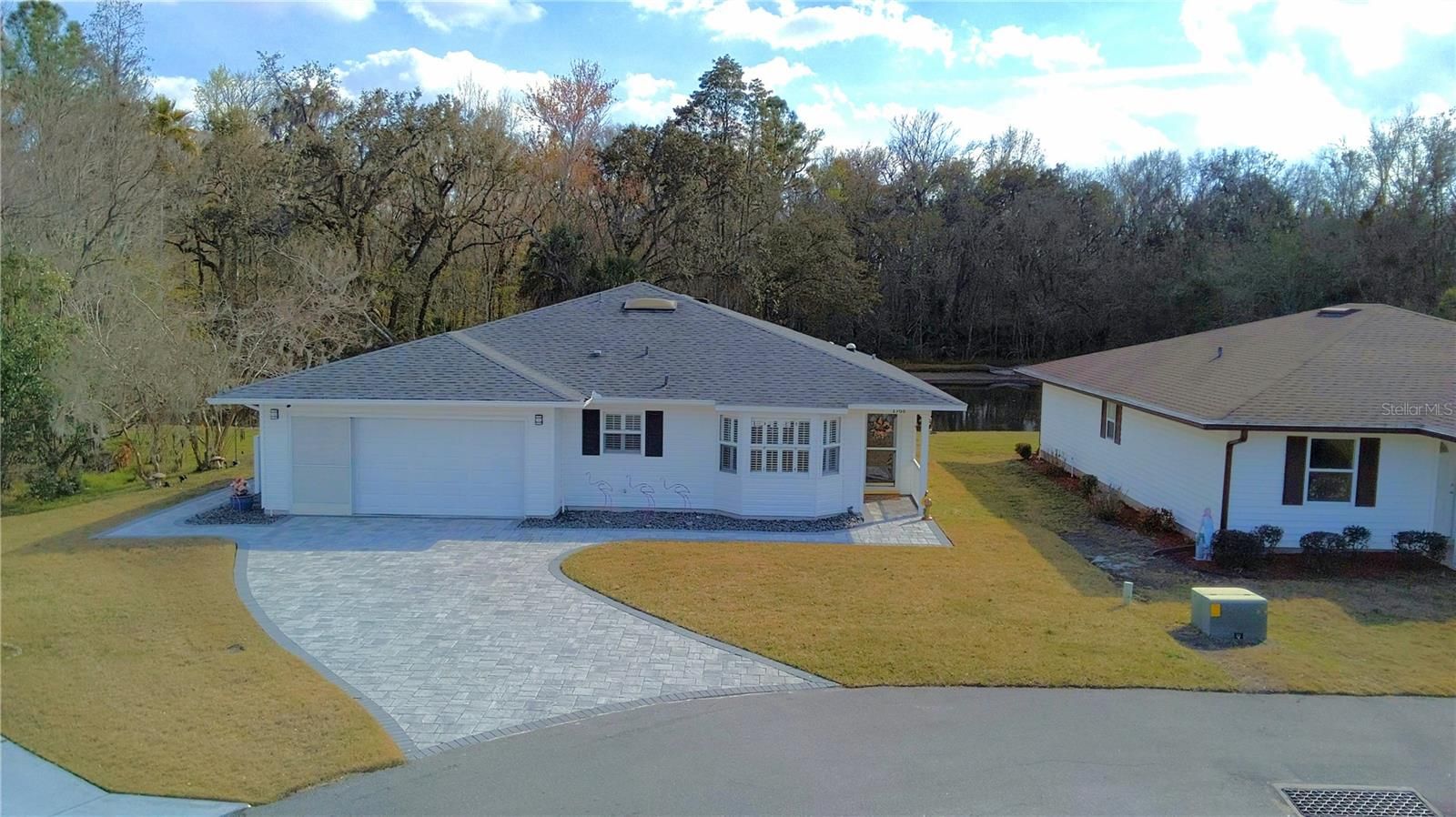 Step inside this beautifully appointed 2 bedroom, 2 bath home spanning over 1,800 square feet of living space on a corner lot, tucked within a gated 55+ community where peaceful pond views and surrounding nature create a daily retreat. As you enter, the home opens effortlessly, drawing you through the living space where a built-in electric fireplace anchors the room, beautiful hardwood floors, and a room flowing seamlessly into the dining area and kitchen. Granite countertops catch the light, while the pantry and laundry closet keep everything close at hand. The primary suite invites you forward, where sliders lead directly to the expansive, fully enclosed lanai—perfect for morning coffee or evening relaxation. Inside the suite, you’ll pass a walk-in closet and linen storage, arriving at an en-suite bath featuring dual vanities, a new toilet and new walk-in shower! Situated on the opposite side of the home from the primary suite, the second bedroom offers privacy and comfort and is accented with classic plantation shutters and Jack and Jill bathroom. Continue on to the versatile bonus room, large glass sliders open the doors and move you into the heart of indoor-outdoor living! This extends your living space outward and surround you by windows offering an abundance of natural light. Step into your own peaceful retreat with private backyard views of nature and watch the bird playing in the pond and sometimes you just may catch a glimpse of an otter or two. Moving outward, your backyard is highlighted by a pergola-covered patio ideal for morning coffee or sunset evenings. Outside, the experience continues. A brand-new screened lanai connects the garage to the enclosed sunroom, creating a smooth transition between spaces. The brand new attractive pavered driveway features LED accented lighting along both sides and the walkways that surround, guides you home each evening. Offered fully furnished, with the option to include the golf cart, this home is ready for you to arrive, unwind, and stay awhile—surrounded by privacy, comfort, and nature. Carefree living at its finest! The HOA covers lawn care, cable TV, internet, common ground maintenance, and access to an impressive array of amenities. The expansive clubhouse features a billiards room, library, card room, and a full kitchen. Residents enjoy frequent social events, dinners, and activities. As owners in the Colonnades you can truly unwind and enjoy your Olympic-size swimming pool and spa, along with separate restrooms and changing rooms complete with saunas. A dedicated fitness building provides additional space to stay active and healthy. So what are you waiting for, this beauty is waiting for you to call HOME!
