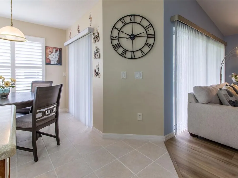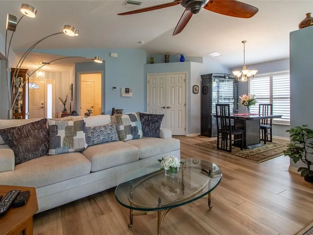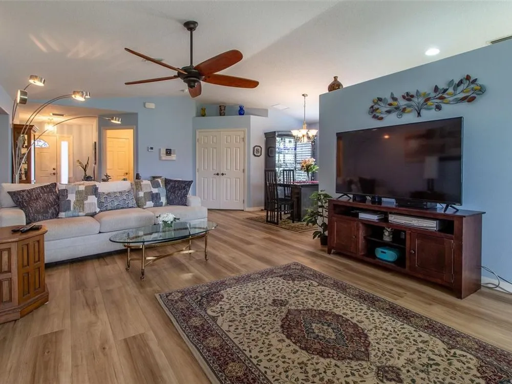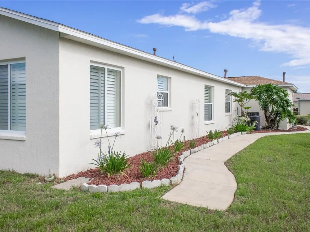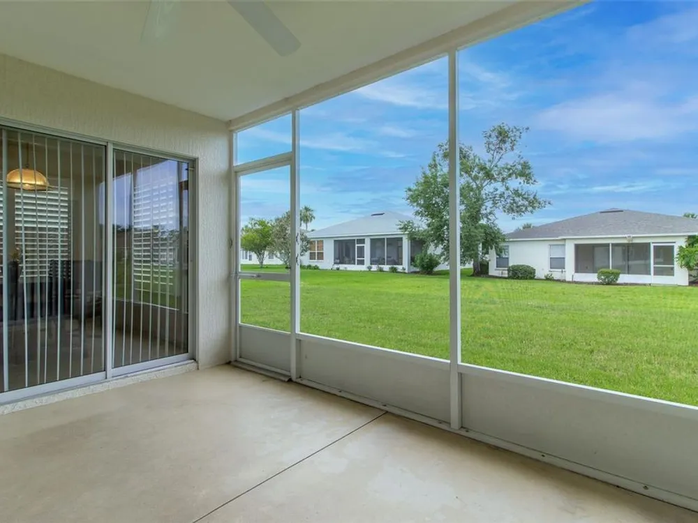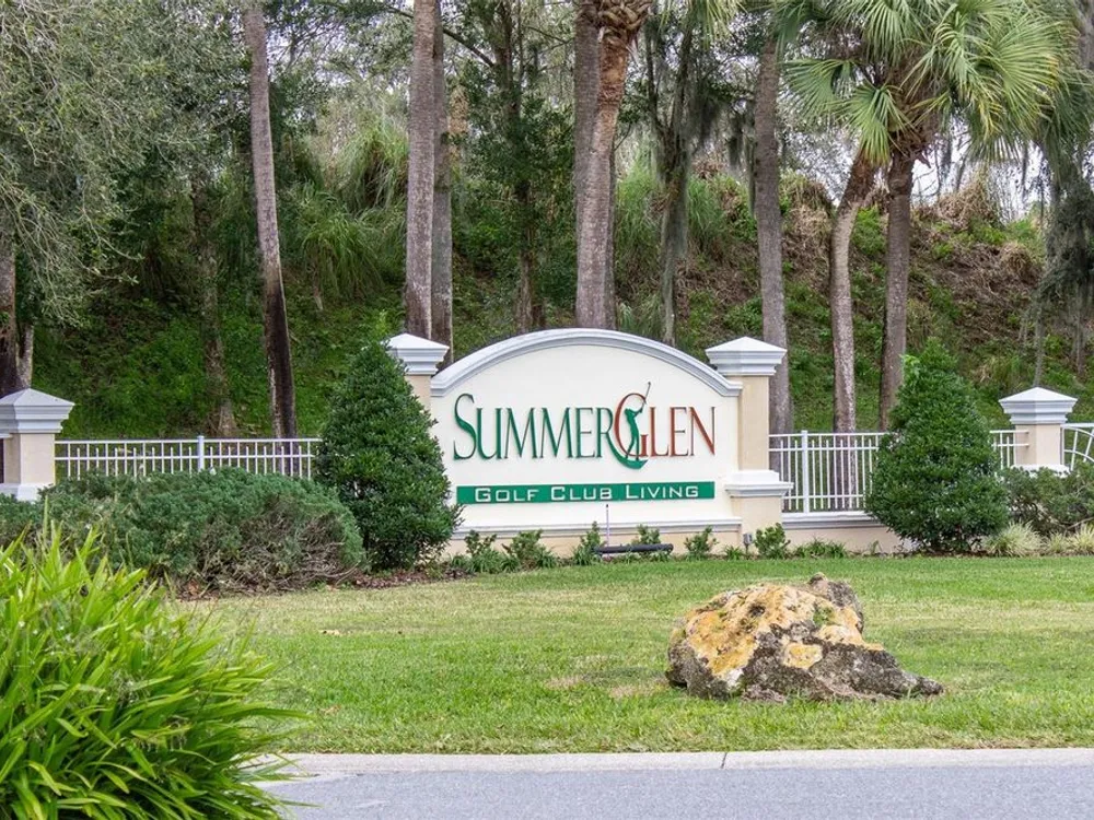 Meticulously Updated Daytona Model in SummerGlen – A Rare Blend of Style, Comfort & Convenience. Welcome to this beautifully updated Daytona model located in the sought-after 55+ gated community of SummerGlen. Offering 1,574 square feet of thoughtfully designed living space, this 2-bedroom, 2-bath home includes a versatile flex room that can be easily converted to 3rd bedroom or may be ideal for a home office, sitting area, or craft space. This home has undergone tasteful and meticulous updates that reflect pride of ownership and a keen eye for design. From the moment you enter the tiled foyer, you’ll notice the open great room with high ceilings, providing a light and airy ambiance. The interior showcases a harmonious color palette, luxury vinyl plank flooring (2024), Plantation Shutters (2022), fresh paint (2021), updated ceiling fans, and high-end finishes that create a cohesive, modern living experience. The kitchen is both functional and elegant, featuring Corian countertops, stainless steel appliances including a new range, dishwasher, and microwave (2024), ample cabinet space, and a cozy breakfast nook that overlooks the rear yard. A separate formal dining area provides room to host friends and family. Sliders off the great room, breakfast nook and primary suite lead to a serene screened lanai, perfect for morning coffee or evening relaxation. The carpeted spacious primary suite includes lanai access and an en-suite bath with new Quartz counters (both bathrooms 2024). This layout is designed for comfort and convenience with a generous dual sided walk-in closet. The floor plan offers privacy for guests, and the flex room provides that extra bit of space everyone needs. Additional highlights include a new roof (2022), new AC (2025), and a full two-car garage with an additional golf cart bay with lots of built-in storage shelving, offering practical functionality along with secure parking. This home delivers a rare combination of elegance, low-maintenance living, and peace of mind all within a vibrant, amenity-rich community. Just a short walk away, residents enjoy access to a championship golf course, resort-style heated lap pool, fitness center, clubhouse, on-site restaurant, and year-round social events. The HOA fee includes Spectrum Bronze Tier 1 TV, 100 Mbps high-speed internet, cable, lawn mowing and edging, trash service, and 24/7 gated security. RV and boat storage is available with a one-time fee and deposit. As an added bonus, residents receive a $30 monthly credit at the on-site restaurant—just one more way to enjoy the exceptional lifestyle SummerGlen offers. Don’t miss the opportunity to make this move-in-ready home your own. Schedule your private showing today and start living the lifestyle you deserve.